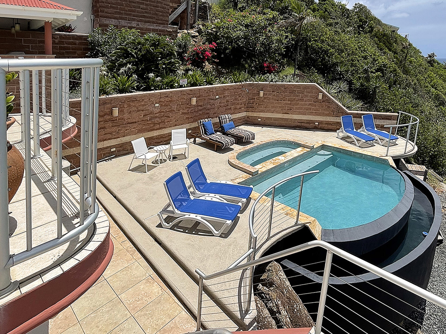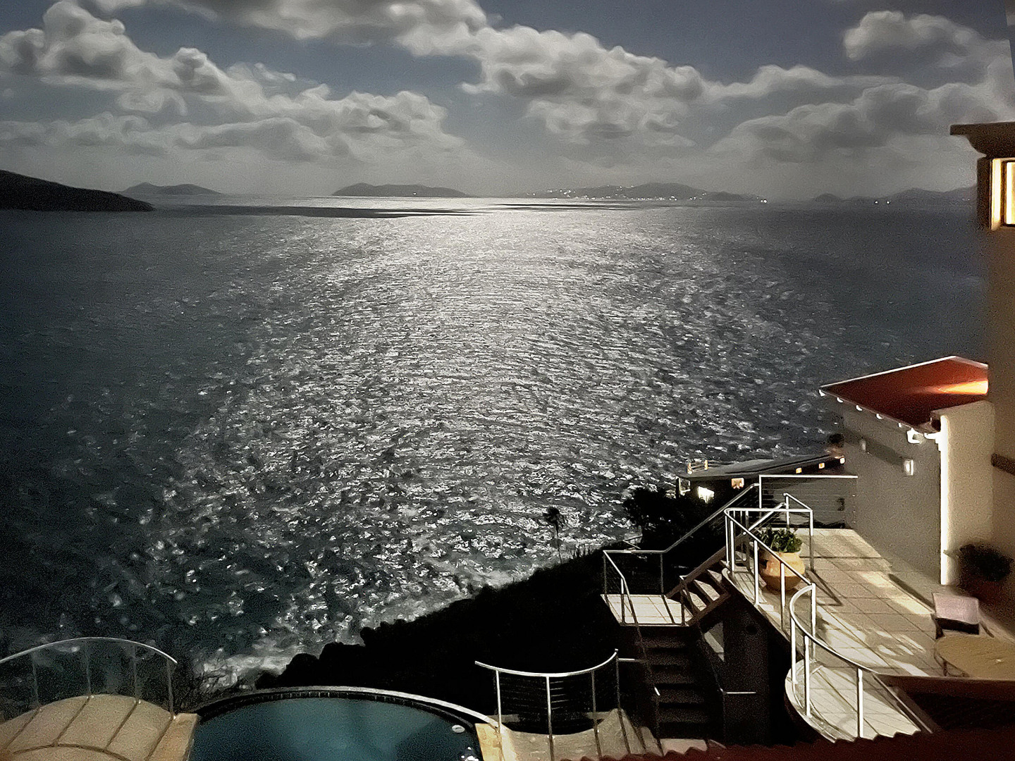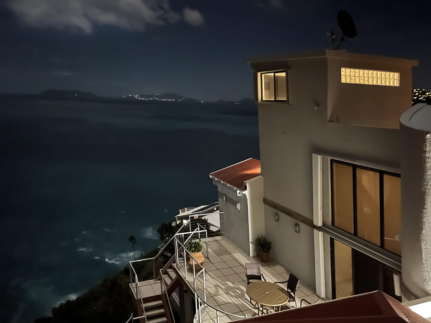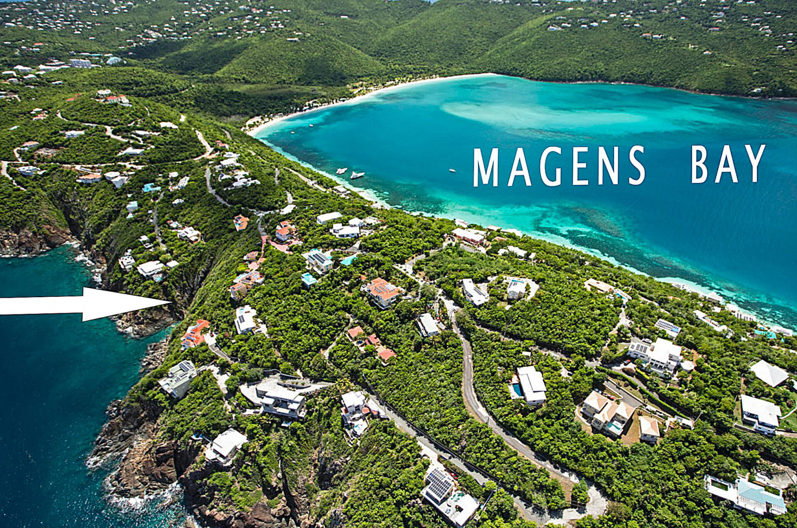 WATERFRONT home, gated REDROCK community-Mediterranean-style Villa; Spectacular views Hans Lollik, St John & BVI. Solar, Bright oversize Windows & Sliding Glass Doors. Open multi-level Layout 4 large decks wth views for entertaining. Major reno 2005-2006- Chef's Kitchen: Quartz Counters, Sub Zero frge + wine frge, Viking Cooktop, 2 ovens, Miele Dishwasher, microwave & double ovens +6k Miele Coffee machine. Din Room opens to outdoor Kitchen, Grill, fridge, Bar Sink. Relax in Infinity Edge .Pool with Down Island Forever Views.Spacious Primary Suite wth barn doors + ensuite & entire-room closet. 2 Guest Suites each wth baths + decks. Top level office perch wth ocean views. Automatic Diesel Generator, solar, Full House UV Water Filter. Lux Waterfront Villa. Home is Realtor owned