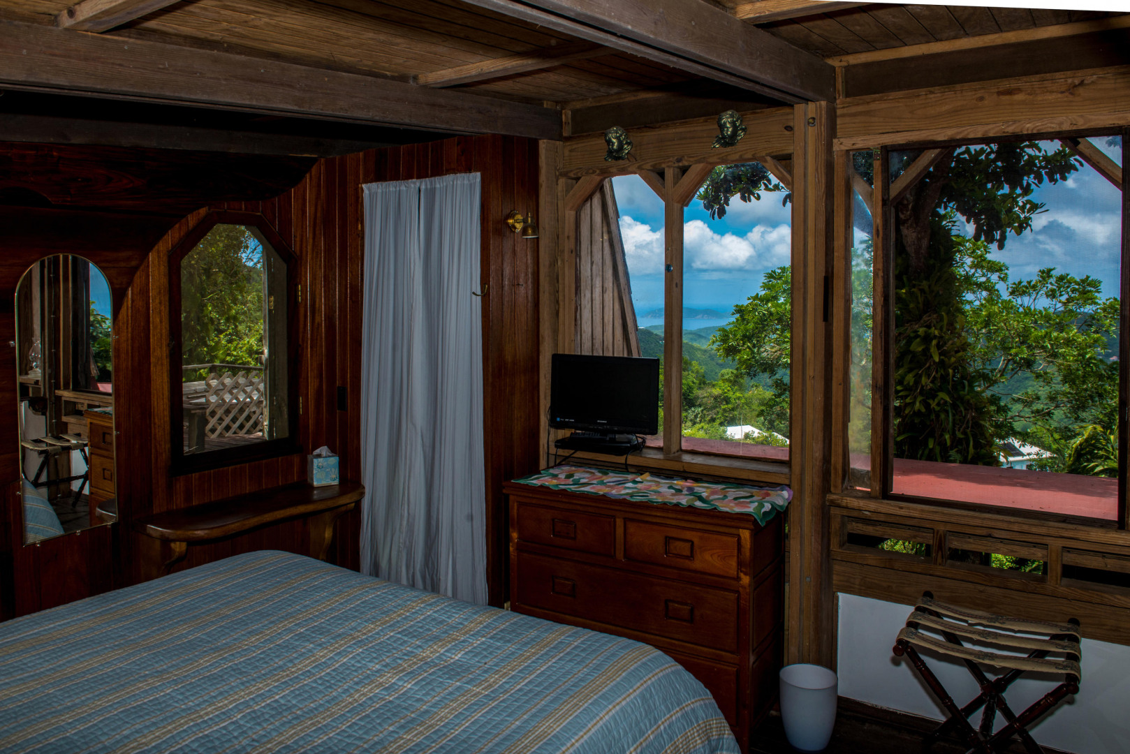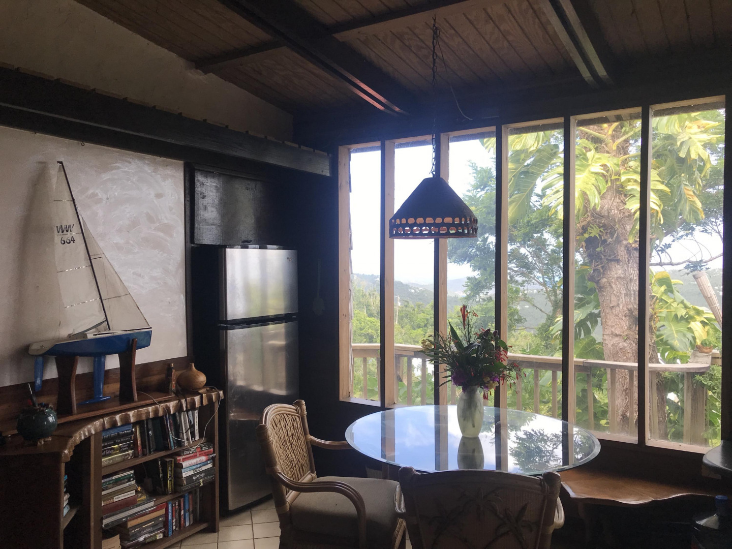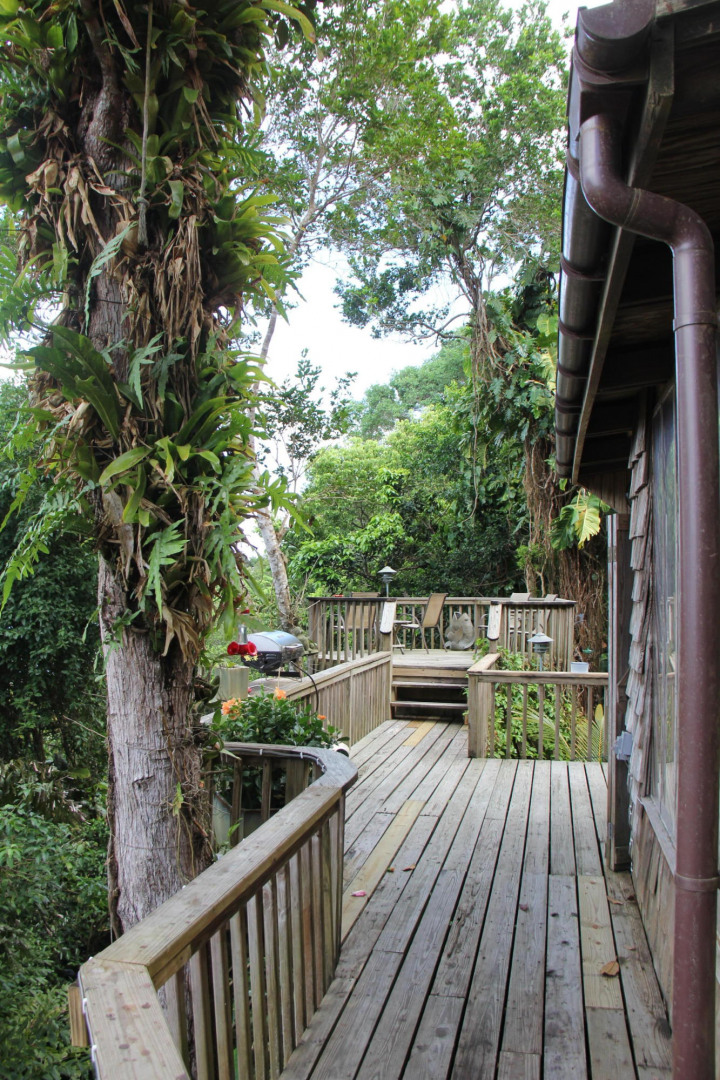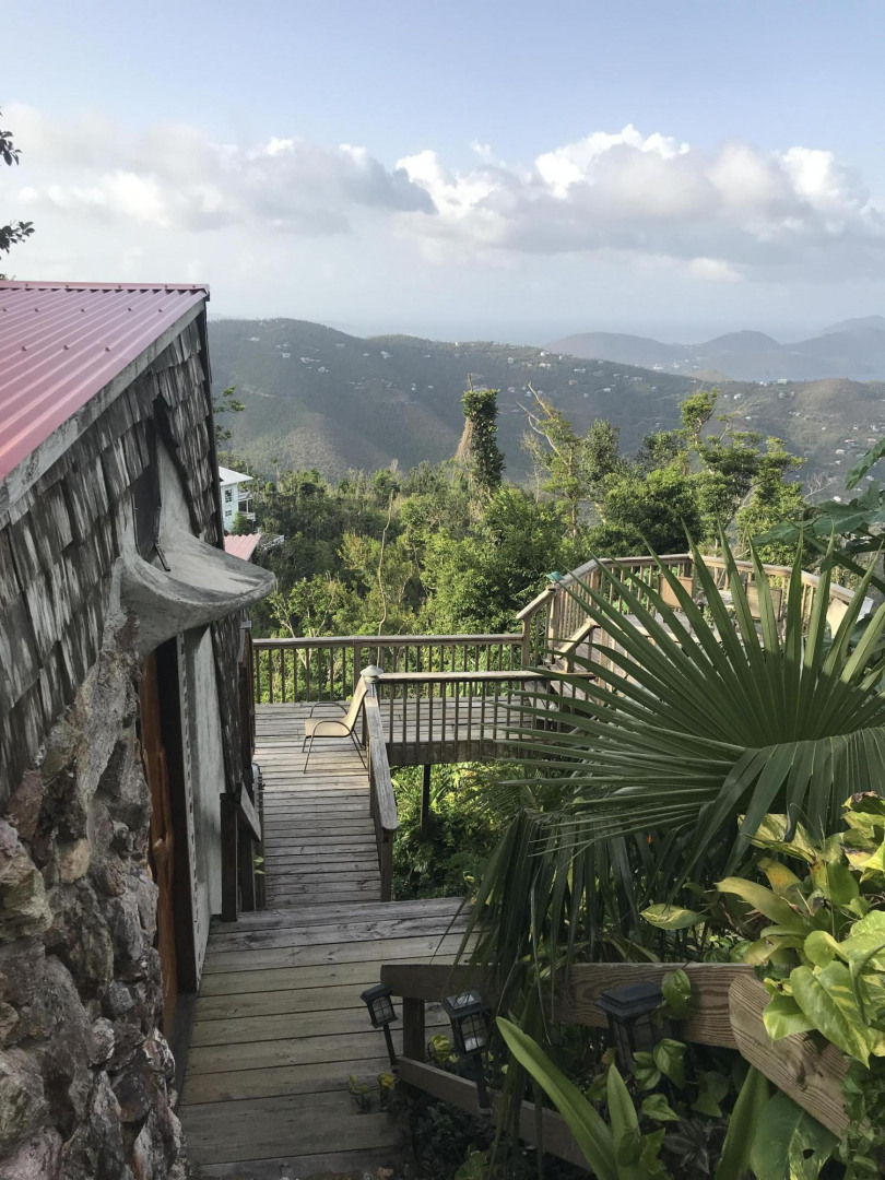 Hummingbird Cottage, an artistic multi-unit residence nestled on Bordeaux Mt with breathtaking views of the surrounding hillsides and the British Virgin Islands. Built with many rare hardwoods, creatively incorporating boulders from the hillside, with a galley style kitchen and spacious living room. The lower level apt provides lots of privacy and configuration options; upper level with excellent short-term rental history. The grounds around the house are abundant with mature plants, orchids, flowers and fruit trees--mango, papaya, , avocado, and passion fruit.A magnificent passion fruit vine allures the hummingbirds. Centrally located on Bordeaux Mountain; only minutes away from the National Park, Bordeaux Mountain Trail, ten minutes to the North Shore beaches and only fifteen minutes to Cruz Bay or Coral Bay.