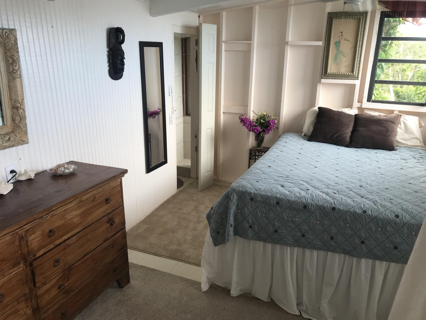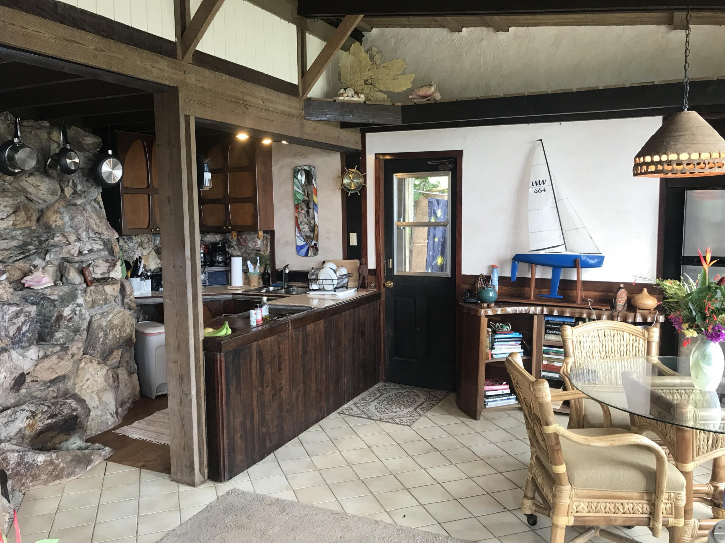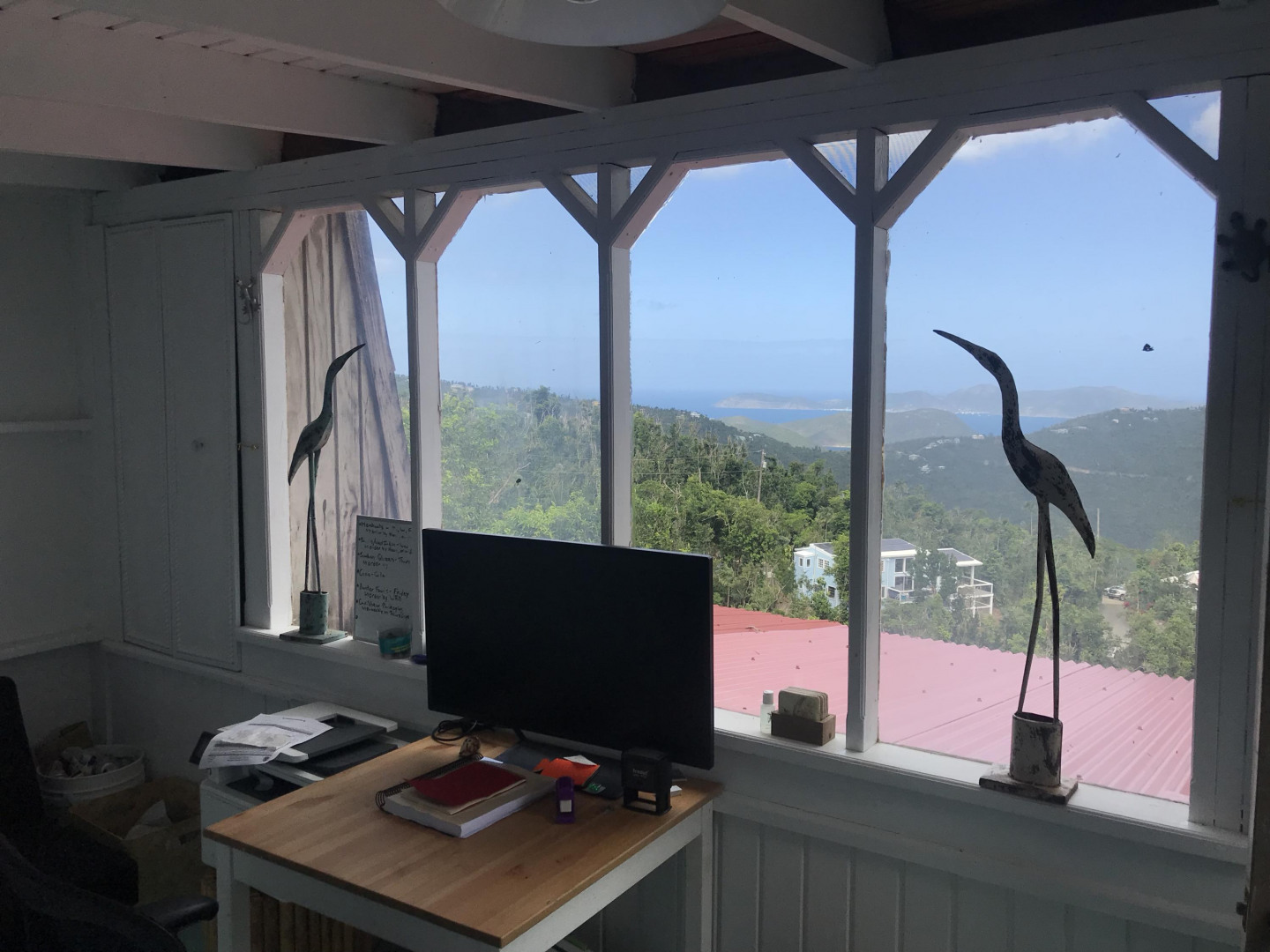 Hummingbird Cottage, an artistic multi-unit residence nestled on Bordeaux Mt with breathtaking views of the surrounding hillsides and the British Virgin Islands. Built with many rare hardwoods, creatively incorporating boulders from the hillside, with a galley style kitchen and spacious living room. The lower level apt provides lots of privacy and configuration options; upper level with excellent short-term rental history. The grounds around the house are abundant with mature plants, orchids, flowers and fruit trees--mango, papaya, , avocado, and passion fruit.A magnificent passion fruit vine allures the hummingbirds. Centrally located on Bordeaux Mountain; only minutes away from the National Park, Bordeaux Mountain Trail, ten minutes to the North Shore beaches and only fifteen minutes to Cruz Bay or Coral Bay.