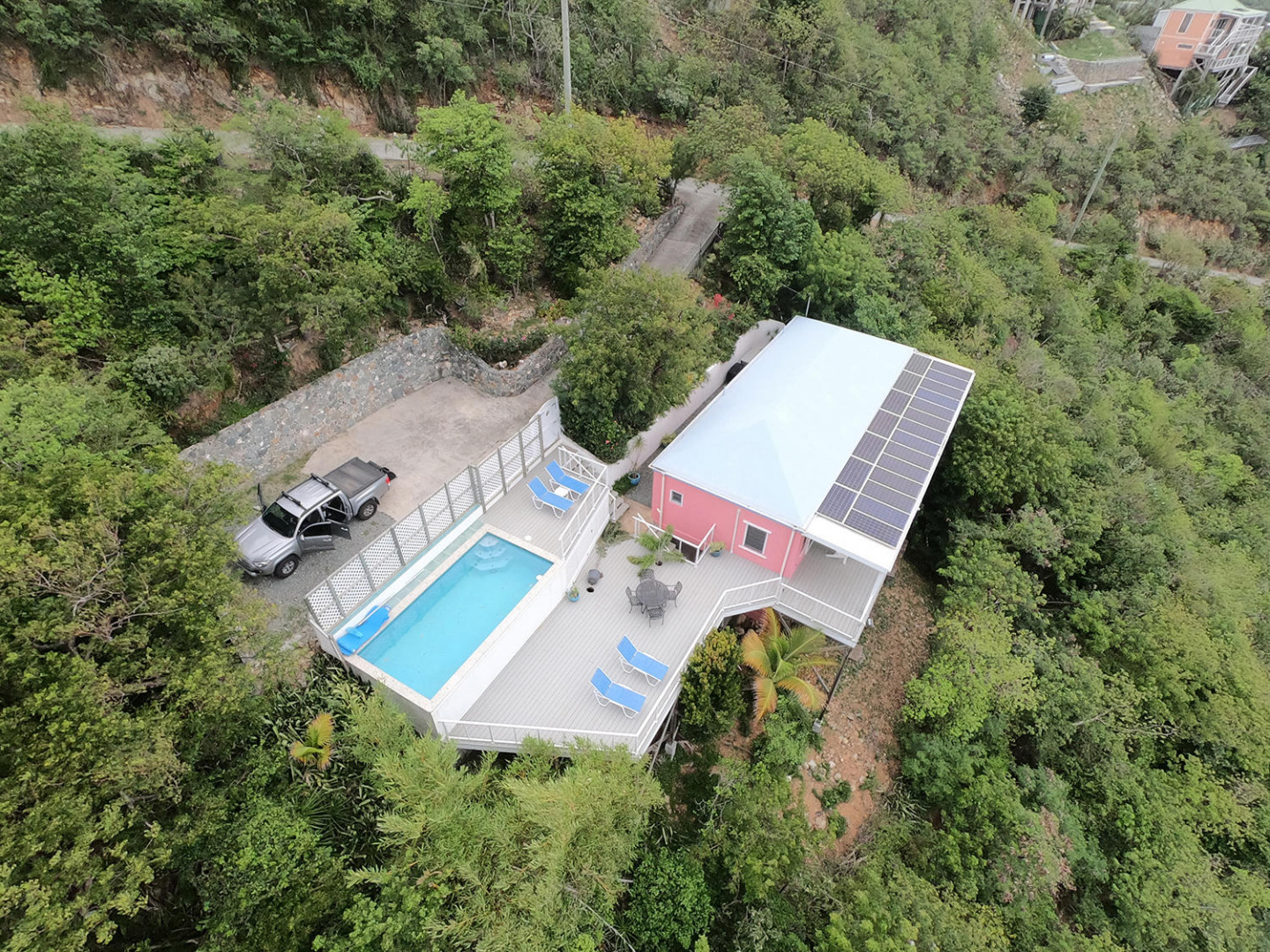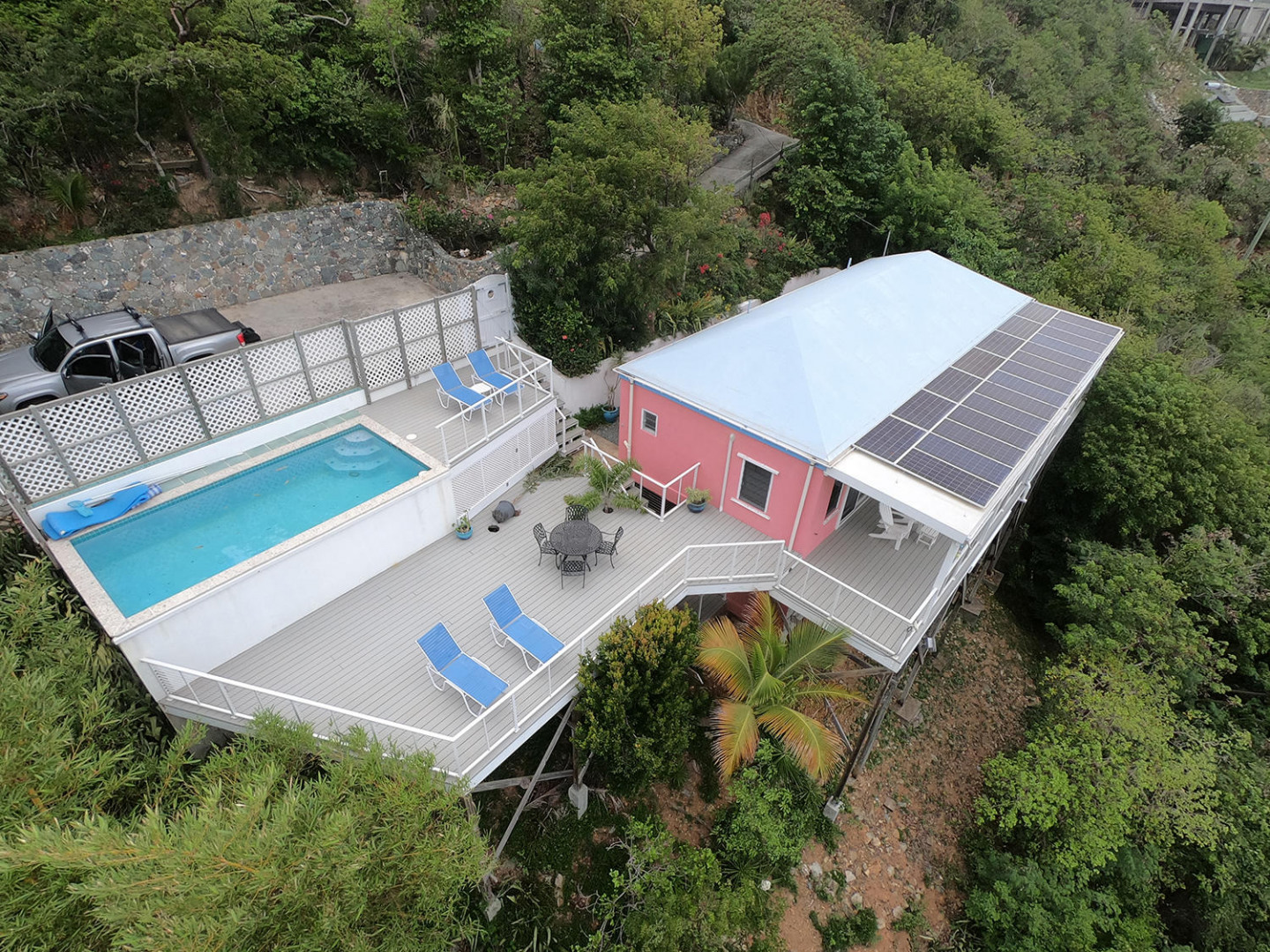 Someday Soon is a charming & comfortable villa with gorgeous views of Coral Bay and beyond. This successful short term rental features two primary bedrooms with ensuite baths, AC & king beds. Someday Soon was remodeled and redecorated in 2016 to include new furnishings, new kitchen counter tops, new expansive wrap- around deck and upgraded pool. Ample covered and uncovered deck seating to take in the gorgeous views.Someday Soon is ready for you to enjoy!