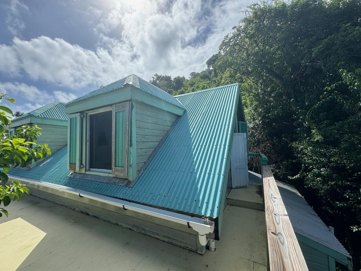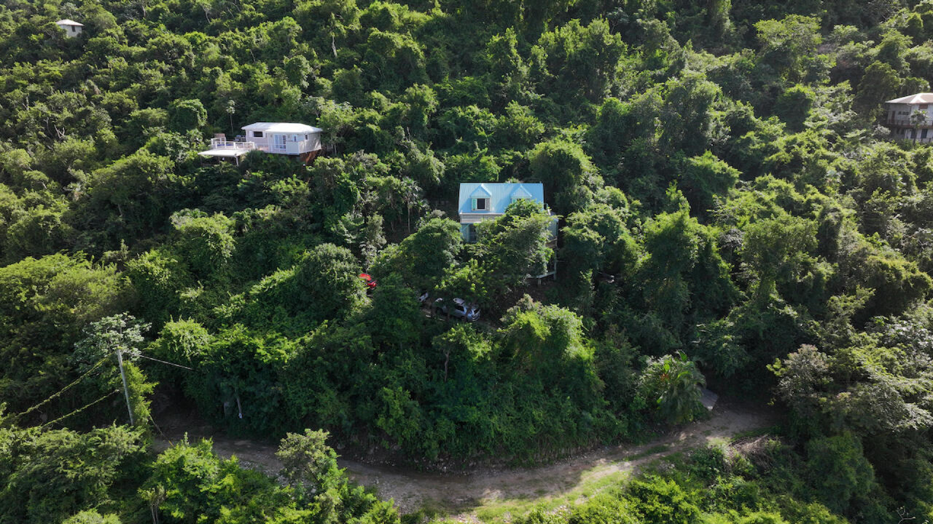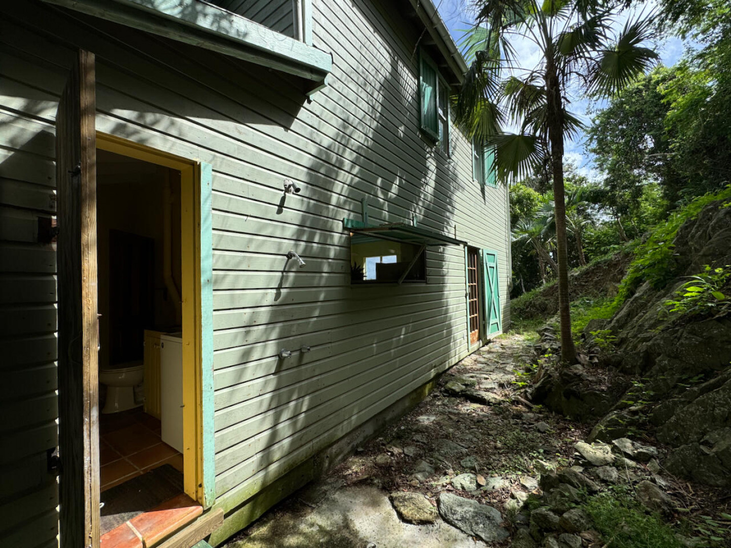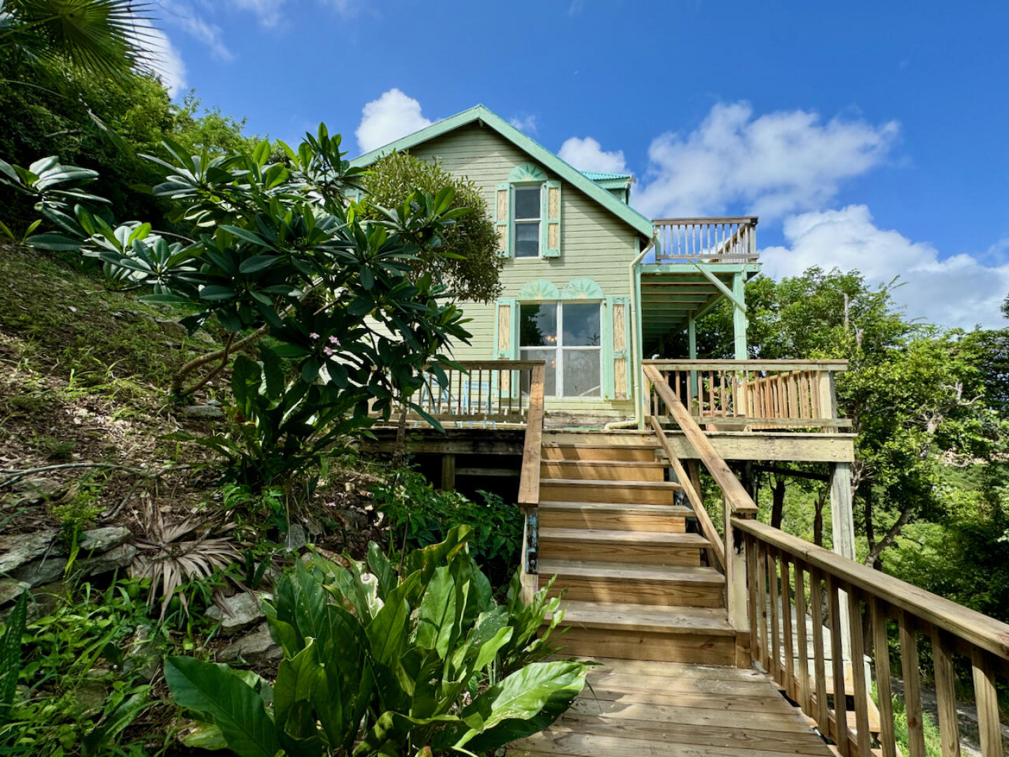 Wanted: Full coat of paint and a little love to make this charming cottage your own! Owner built and occupied since 1999, and now a perfect first home or dreamy retirement retreat. Lots of breeze, greenery, and natural light surrounding. Two built-in work nooks, with views makes this ideal for remote working too! Mixed materials of concrete cisterns/foundation and wood frame. Original construction documents and photos available. This very private spot is at the end of the road, nestled into the trees with Coral Bay and down island views to the north east. Buyers will need to embrace the adventurous road; yet only minutes from restaurants, shopping and groceries.