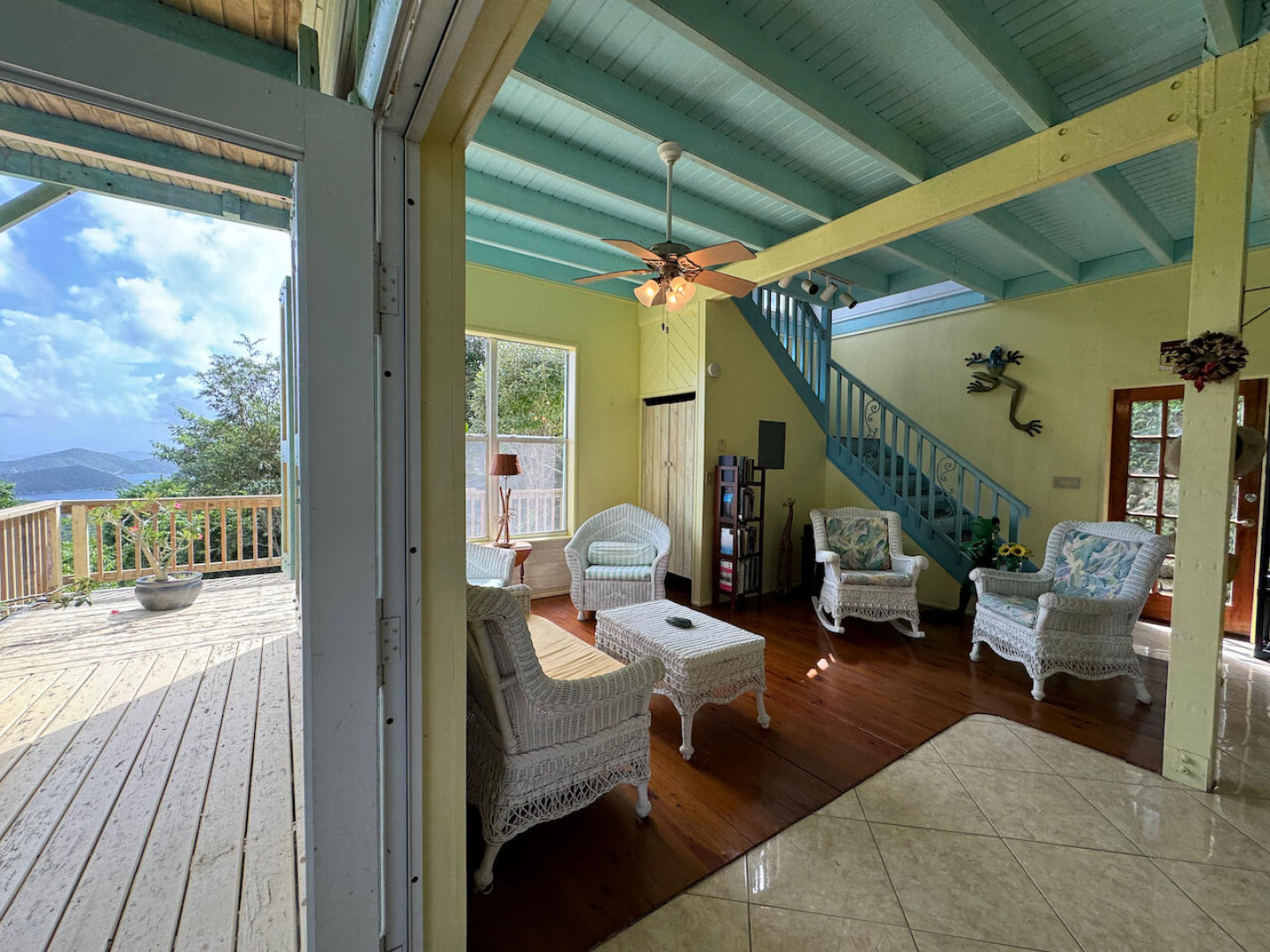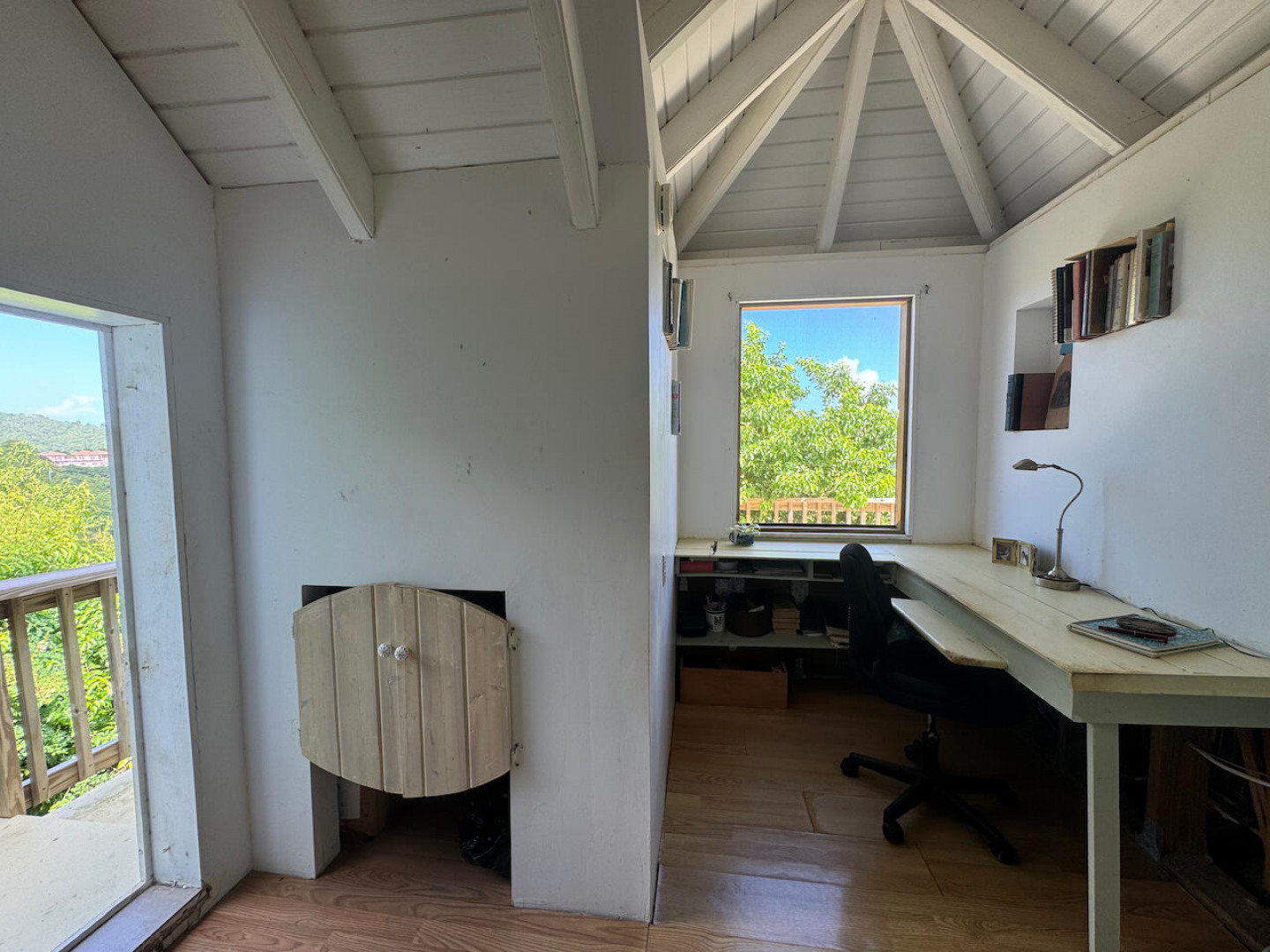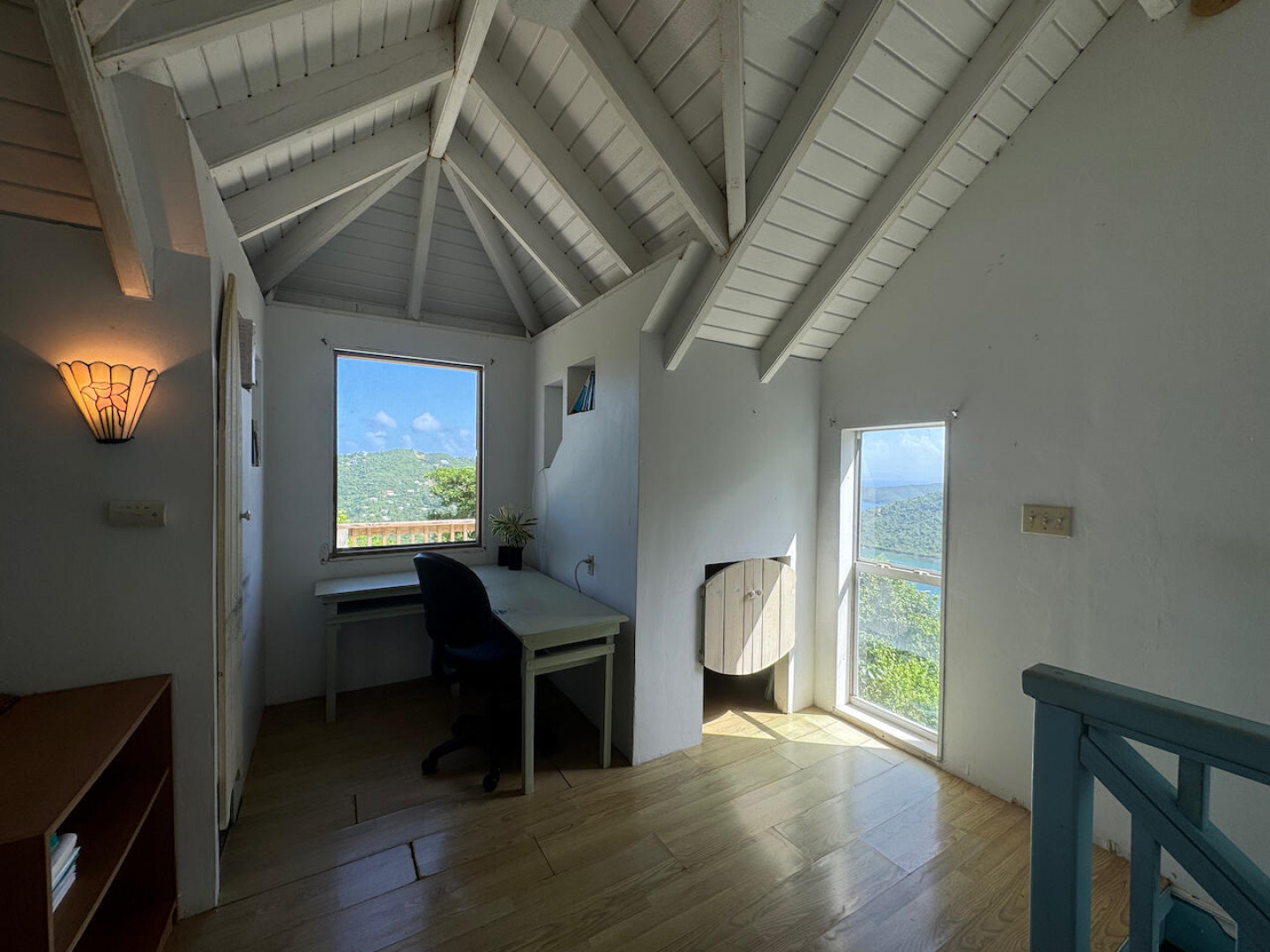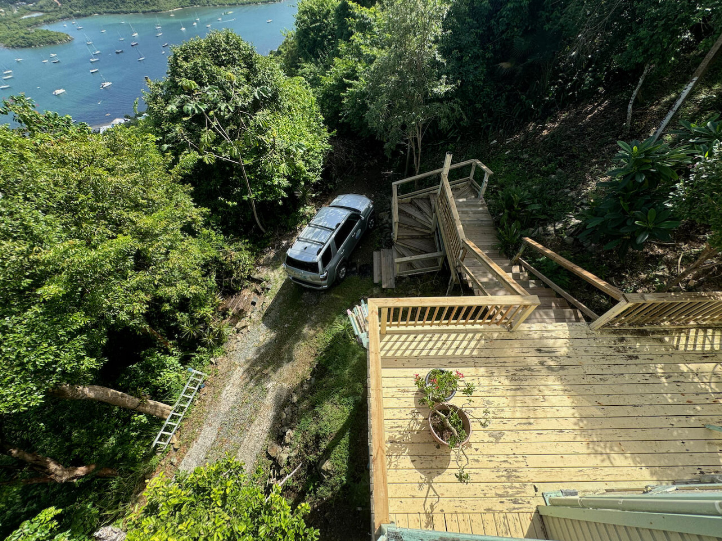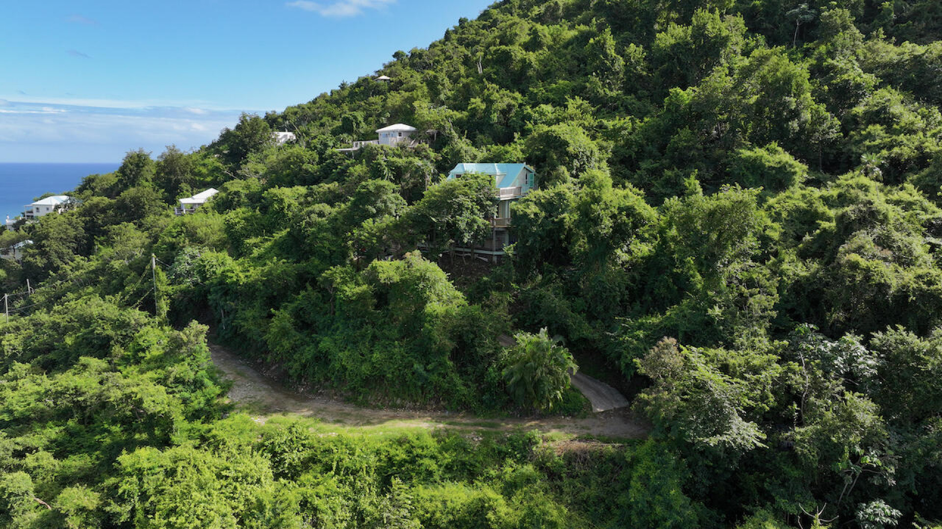 Wanted: Full coat of paint and a little love to make this charming cottage your own! Owner built and occupied since 1999, and now a perfect first home or dreamy retirement retreat. Lots of breeze, greenery, and natural light surrounding. Two built-in work nooks, with views makes this ideal for remote working too! Mixed materials of concrete cisterns/foundation and wood frame. Original construction documents and photos available. This very private spot is at the end of the road, nestled into the trees with Coral Bay and down island views to the north east. Buyers will need to embrace the adventurous road; yet only minutes from restaurants, shopping and groceries.