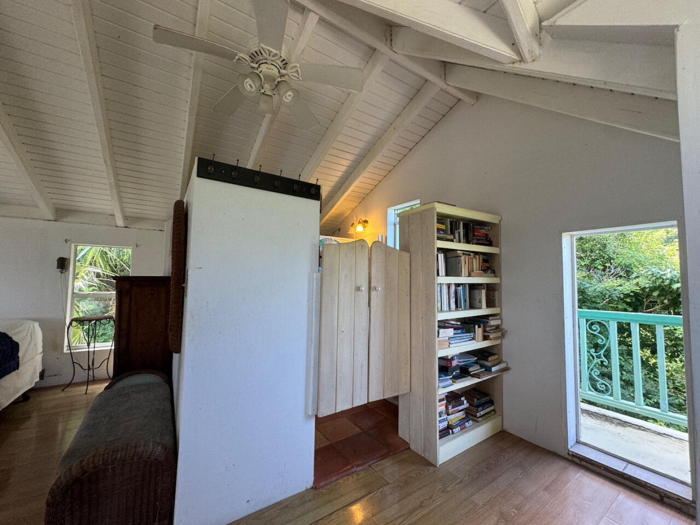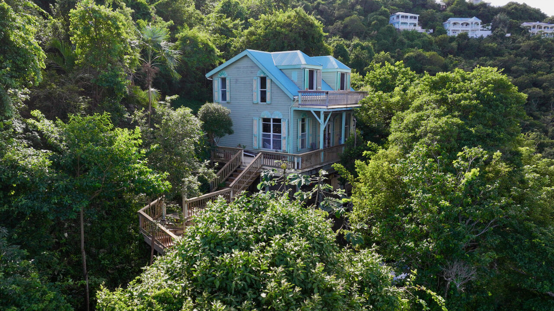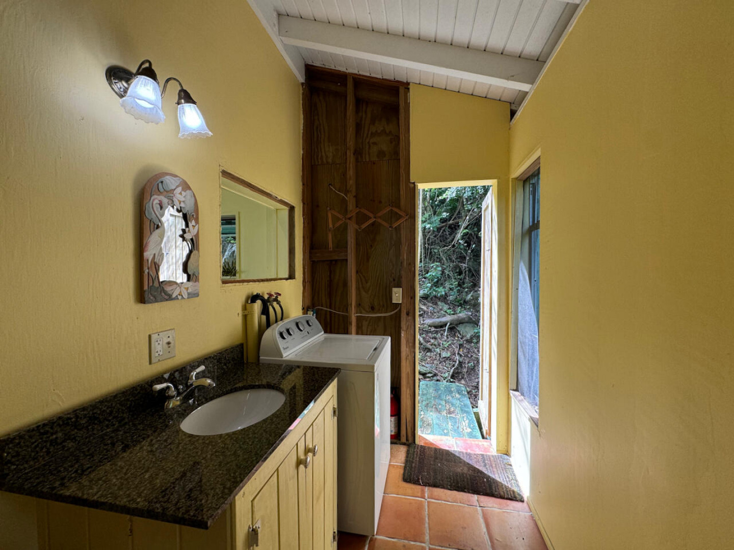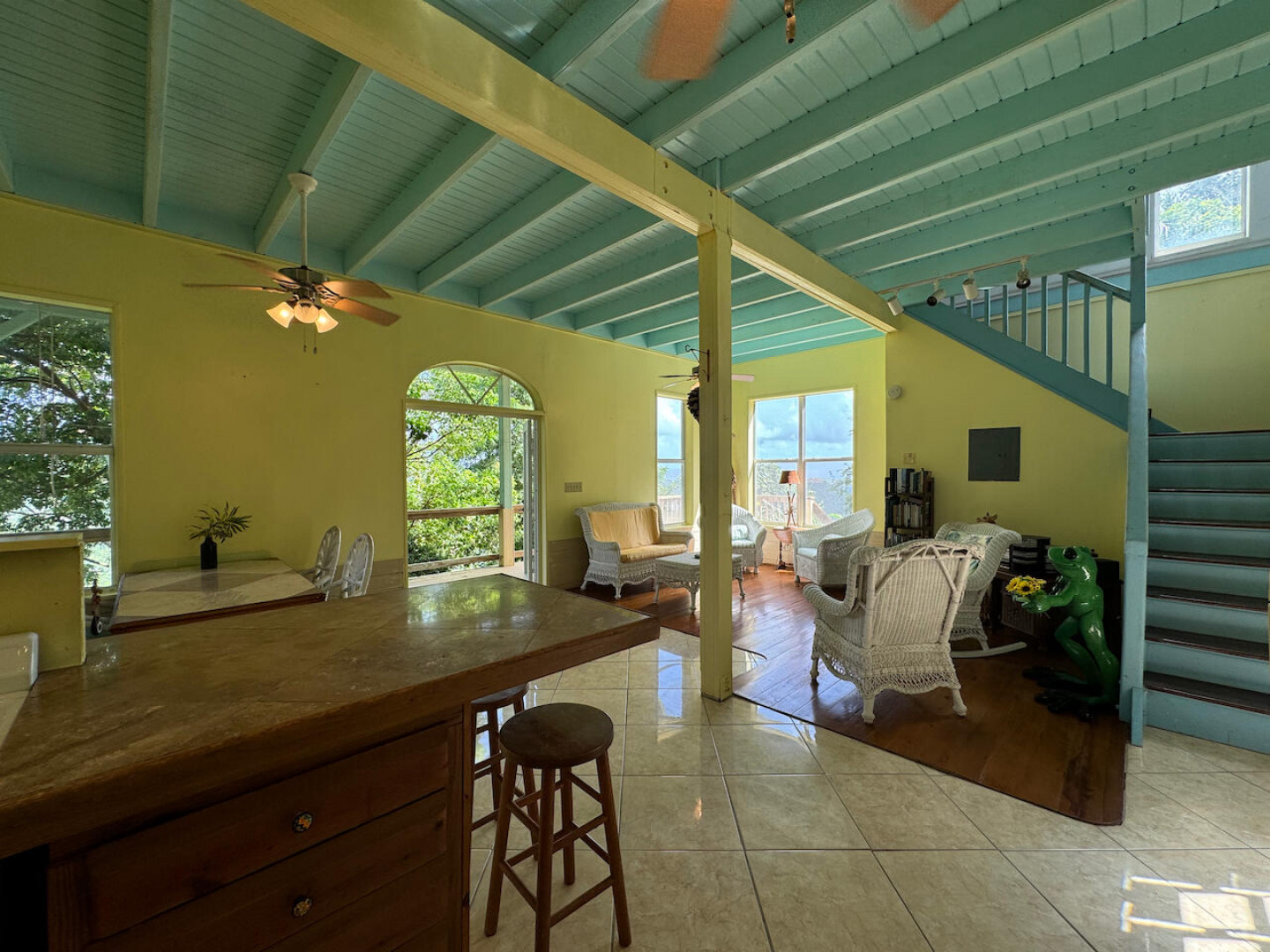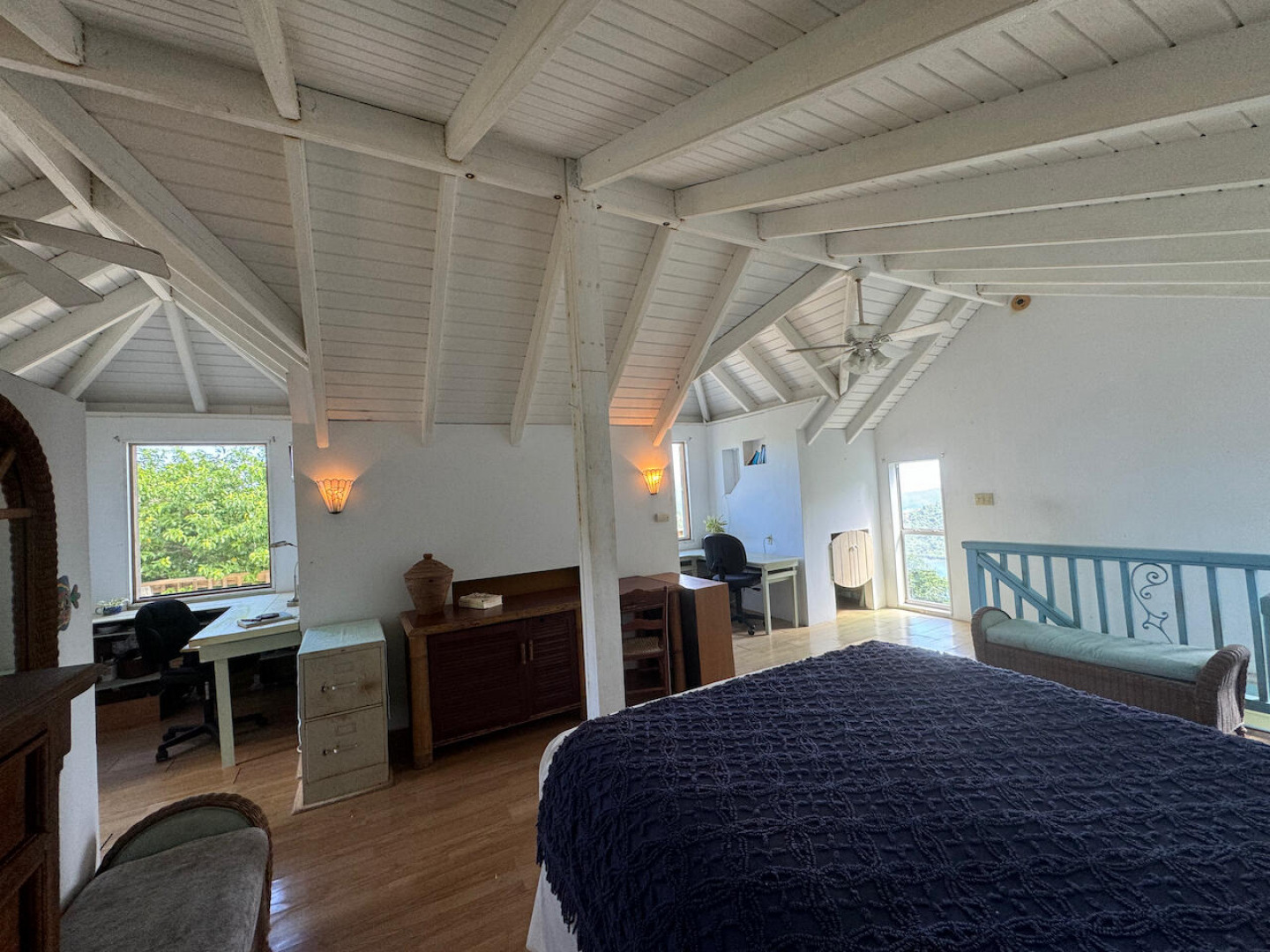 Wanted: Full coat of paint and a little love to make this charming cottage your own! Owner built and occupied since 1999, and now a perfect first home or dreamy retirement retreat. Lots of breeze, greenery, and natural light surrounding. Two built-in work nooks, with views makes this ideal for remote working too! Mixed materials of concrete cisterns/foundation and wood frame. Original construction documents and photos available. This very private spot is at the end of the road, nestled into the trees with Coral Bay and down island views to the north east. Buyers will need to embrace the adventurous road; yet only minutes from restaurants, shopping and groceries.