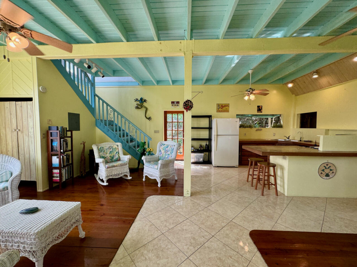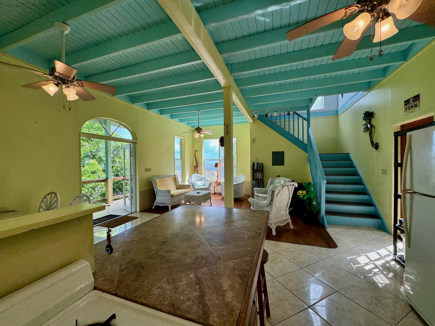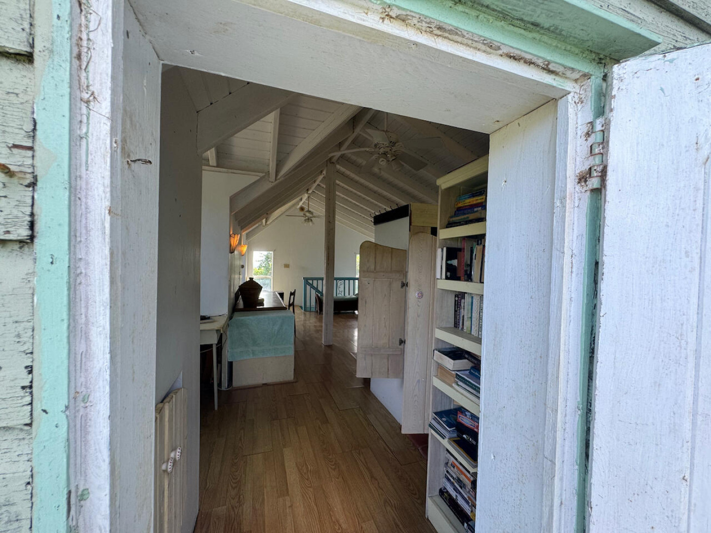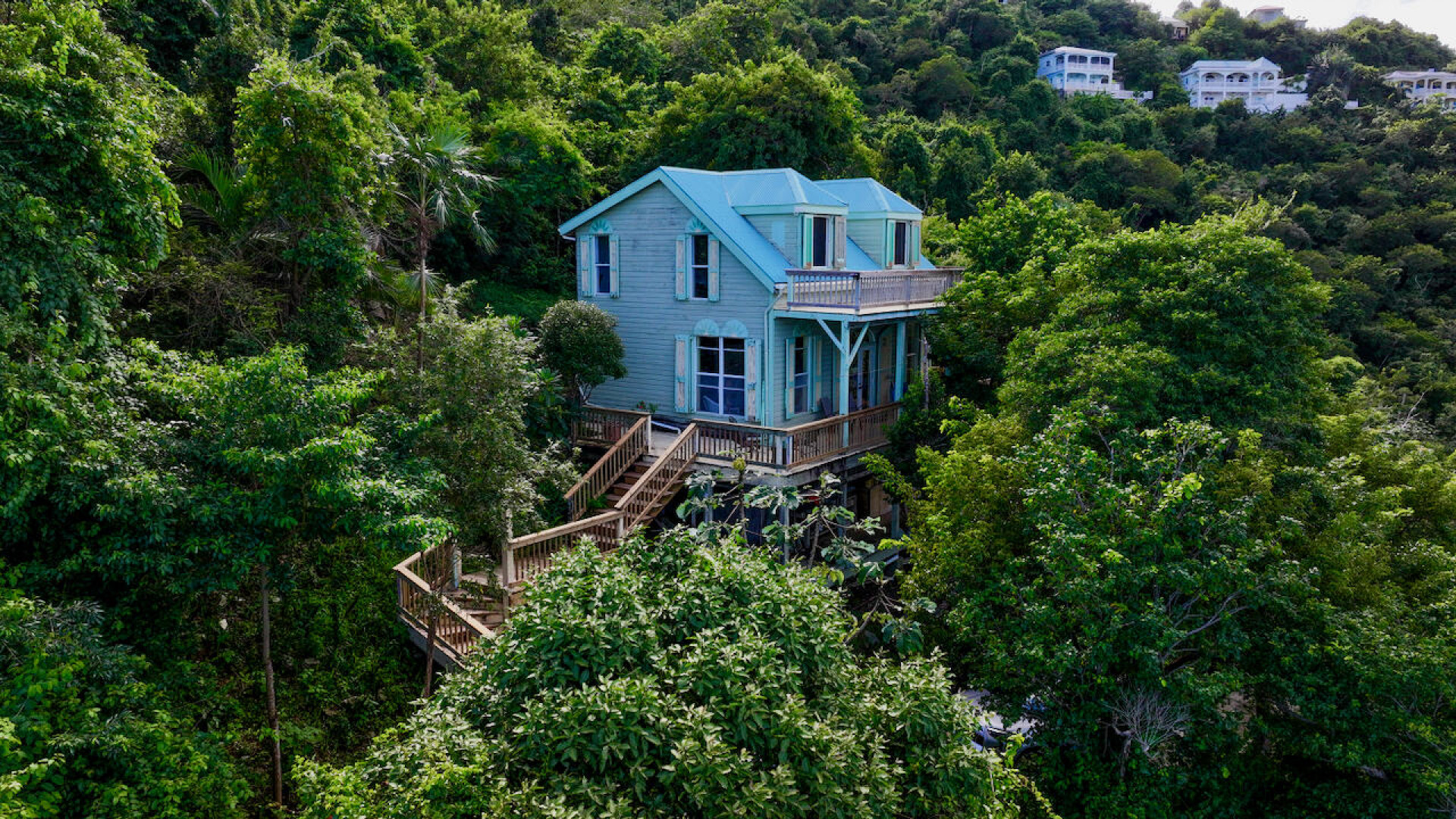 Wanted: Full coat of paint and a little love to make this charming cottage your own! Owner built and occupied since 1999, and now a perfect first home or dreamy retirement retreat. Lots of breeze, greenery, and natural light surrounding. Two built-in work nooks, with views makes this ideal for remote working too! Mixed materials of concrete cisterns/foundation and wood frame. Original construction documents and photos available. This very private spot is at the end of the road, nestled into the trees with Coral Bay and down island views to the north east. Buyers will need to embrace the adventurous road; yet only minutes from restaurants, shopping and groceries.
