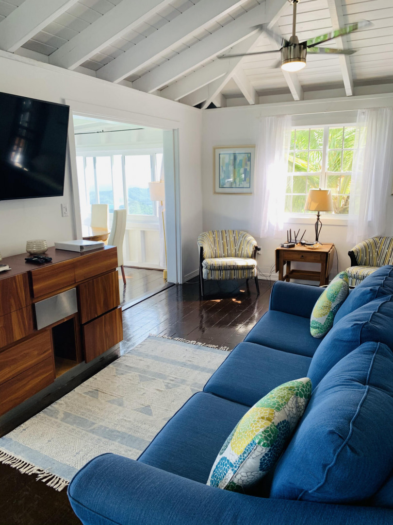 BLUE BAY VIEW rests high on the hilltop above Coral Bay harbor looking down on the turquoise waters of St John's East End bays and over to the BVI chain. This 2 bedroom house is made even more comfortable by a bonus room on the lower level. Boasting 3 outdoor living areas, the covered outdoor kitchen and bar offers dining for 6 + an observation deck with panoramic views. The nighttime landscape lighting is an extra treat while gazing at the stars and listening to the mountain sounds. Additional features include expansive closets, oversized showers, sleeping for 8, concrete parking for 2 vehicles, and an upgraded kitchen with stainless steel appliances. A successful rental, this property would be a great family home, vacation home, or investment opportunity.
