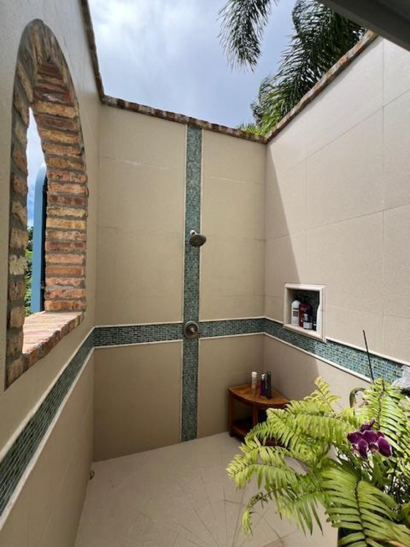 Phenomenal 180+ gorgeous views oversized property consisted of two houses - 2B/2B all masonry home, 1B/1B reinforced frame guest cottage and separate masonry office. Construction completed in 2021 with Certificate of Occupancy in place. Houses feature 28 solar panels with 4 fortress batteries and Net metering, large pool deck with salt water 9x12x4-1/2 pool, internal staircase in the main house, many artistic touches throughout the villa, turtle mosaic on outdoor bar top, custom one-of-a-kind mahogany and cypress wood counters as well as indoor mahogany staircase, custom stonework bar front, custom stone entry walkway, custom built cabinets, porcelain tiles, beautiful outdoor shower, tropical garden including many mature fruit producing trees.