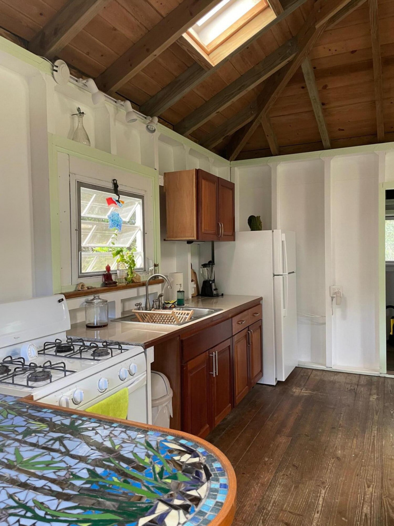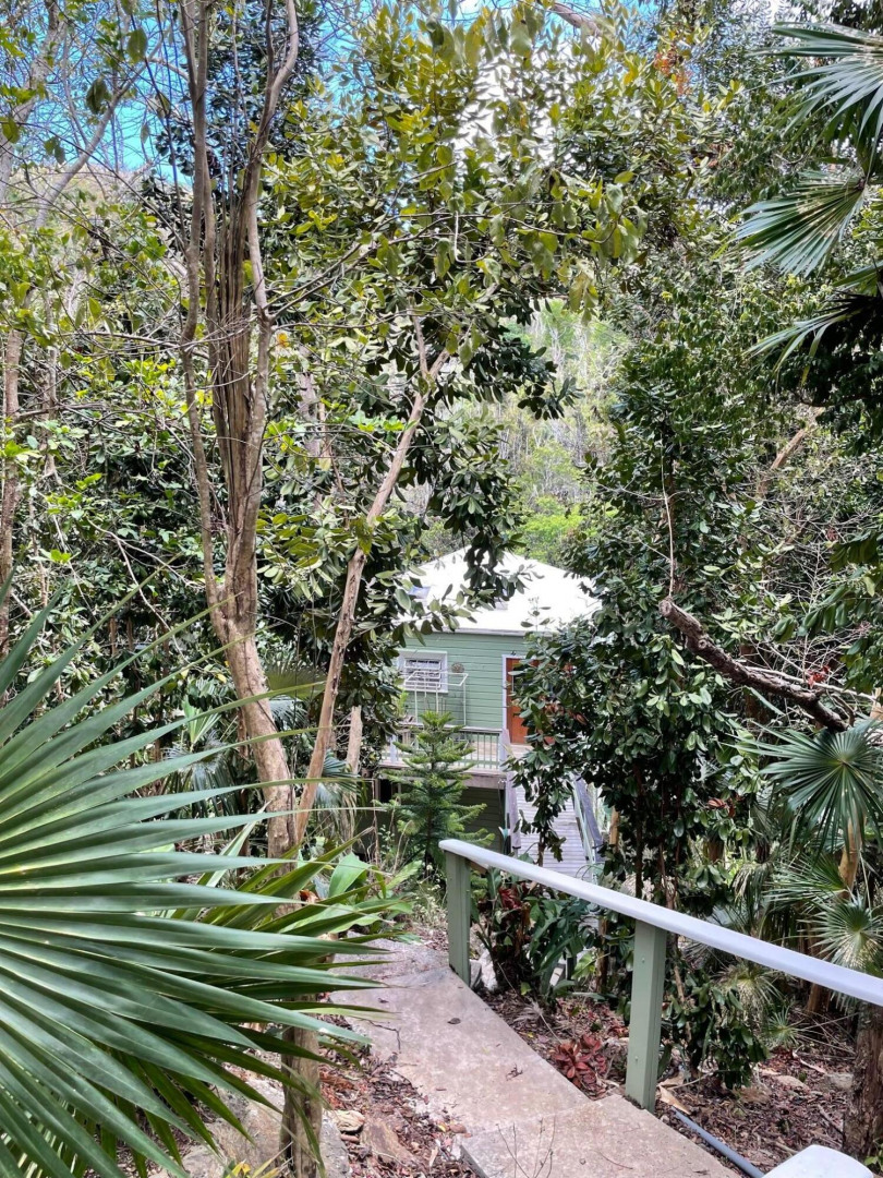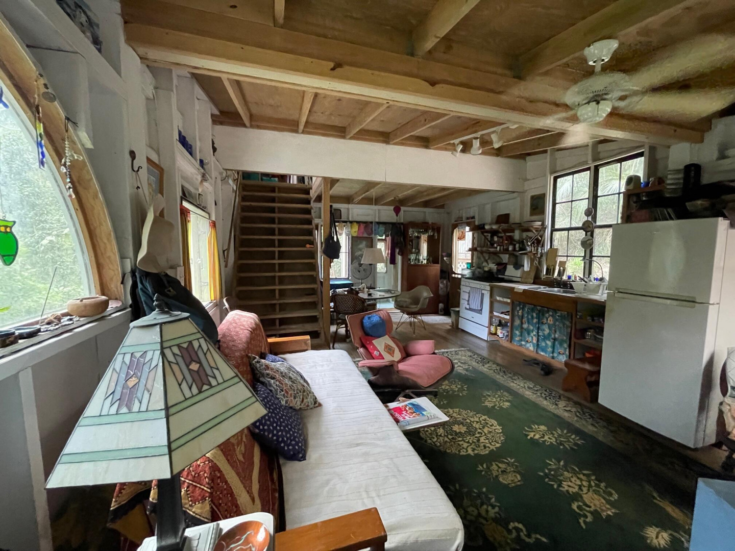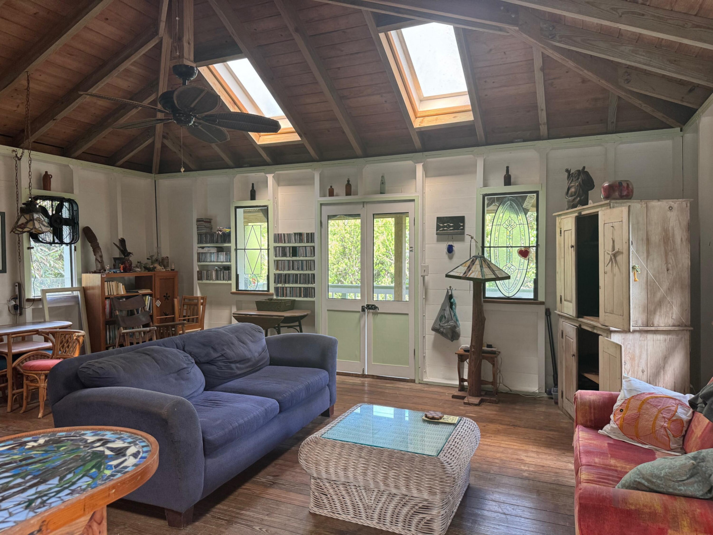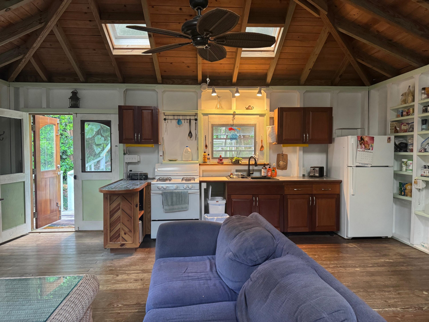 Bay Tree Cottages is a secluded, private end of the road property surrounded by lush large bay rum trees and the natural beauty of Bordeaux Mountain. The main house has a large upstairs kitchen, dining, living area with laundry and the downstairs has one large bedroom with ample closets and ensuite bathroom. Both levels have covered porches. The smaller cottage has kitchen, dining and living area as well with a sleeping loft, shower and separate bathroom with composting toilet. At the entry is a small shop / garage. This gardeners dream property has a lot of potential. Property has certificate of occupancy and permanent power. Buyers to verify cistern size and square foot of buildings.