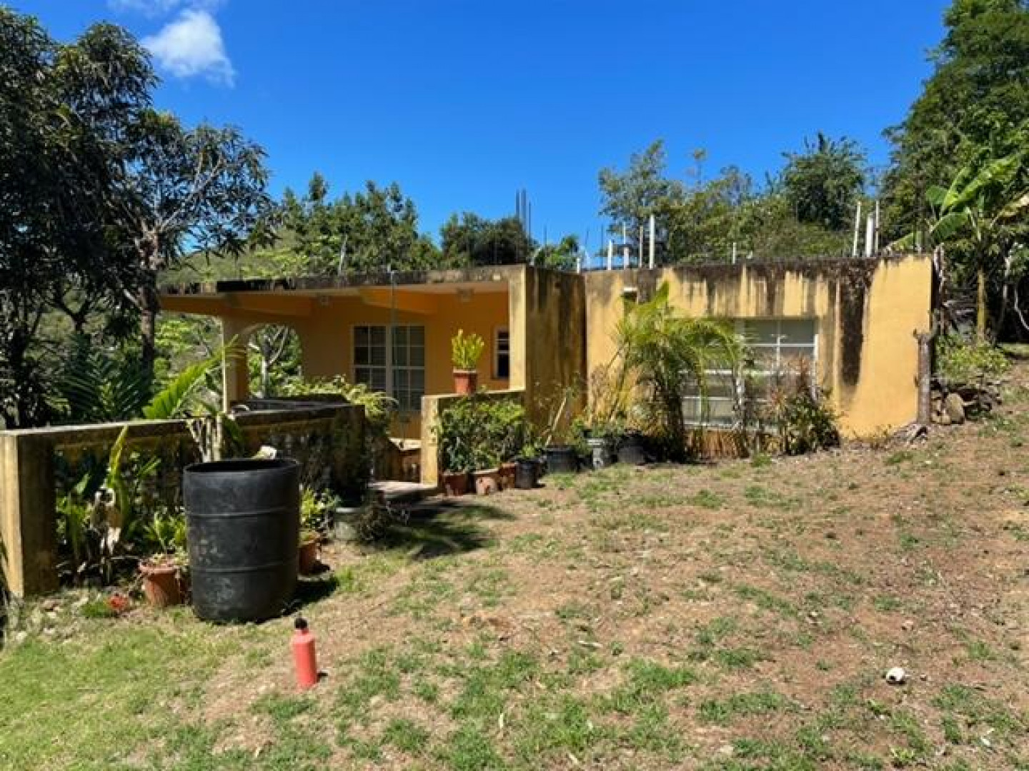 Concrete construction, built in 2006.Just the lower level is done. Some floor tiling needed as some tiles have lifted up and there has been water seepage through the ceiling slab in some parts, but otherwise ready to move in while you build the top floor as you see fit. Lots of potential!!
