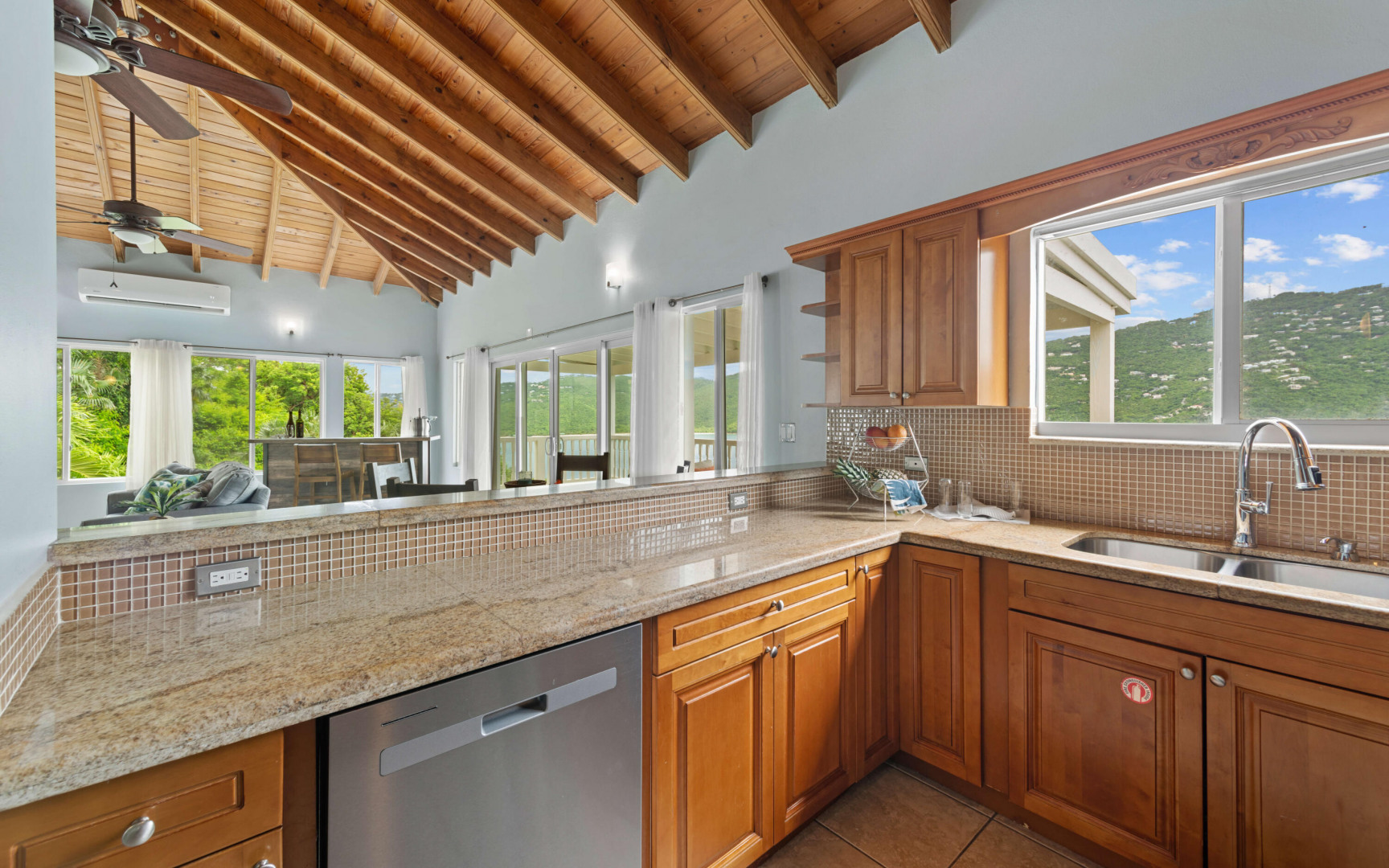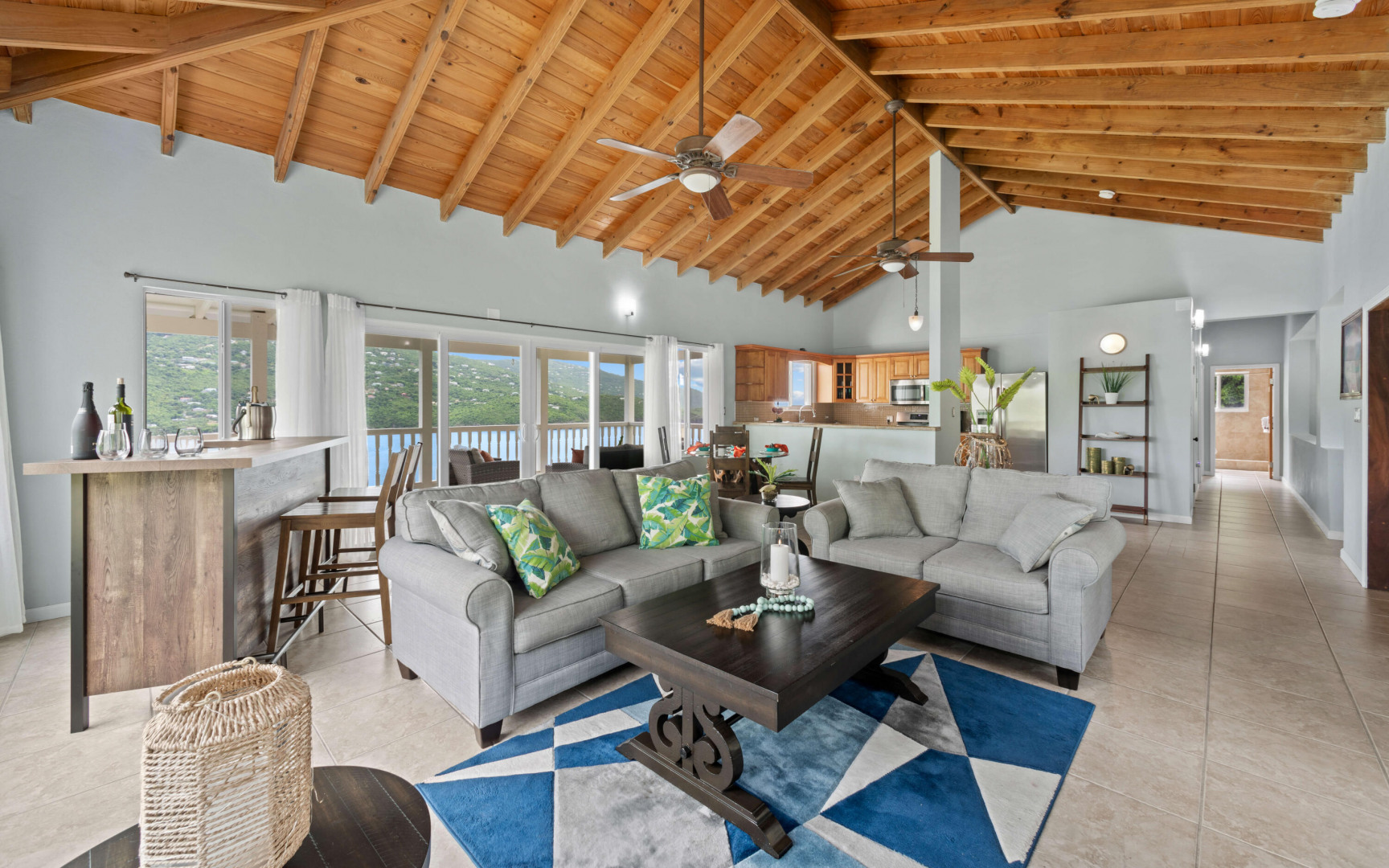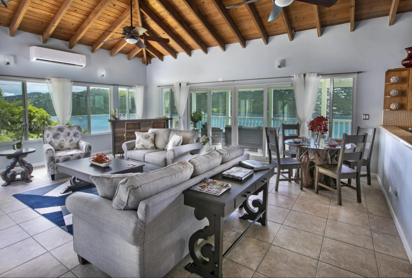 Serenity Breeze Villa, a tropical retreat tucked within the exclusive gated enclave of Estate Peterborg on then Peterborg peninsula. From the moment you enter, you're greeted by panoramic ocean views that grace every room. Designed for seamless indoor-outdoor living, the open-concept great room flows seamlessly onto a sweeping covered patio overlooking Magen's Bay. The primary suite and the apartment each offer their own private, covered patios with stunning ocean views- for the perfect blend of privacy and luxury.With 48 solar panels and 4 Tesla Power Walls, Serenity Breeze dramatically reduces reliance on public utilities. The villa is a proven, successful short -term rental and offers immediate income potential for the investment-minded buyer. Serenity Breeze-Caribbean Ease.