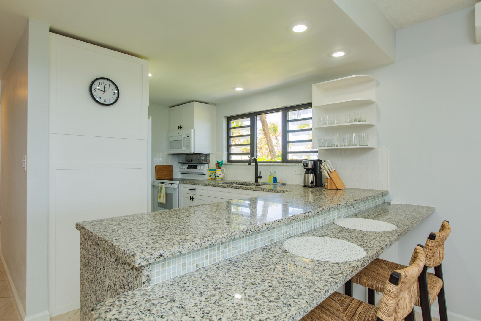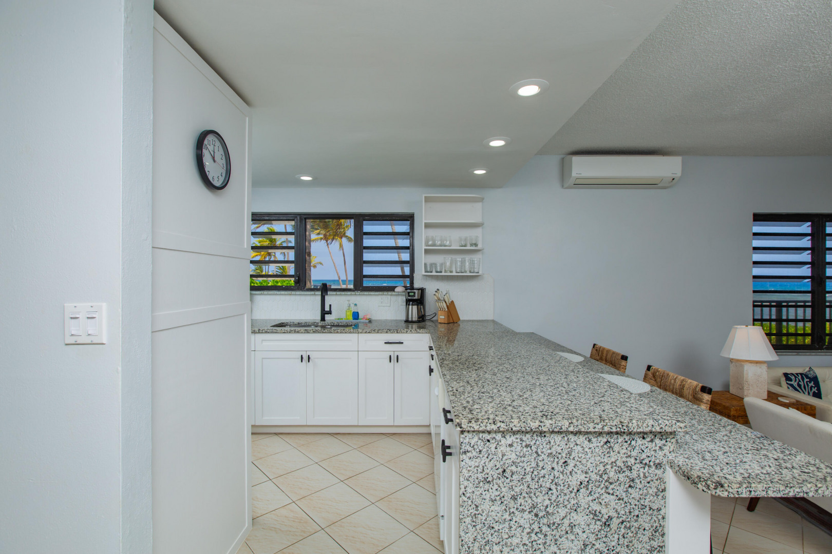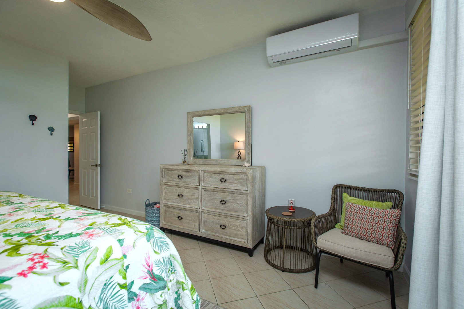 Located just steps away from a stunning sandy beach, 101-D Pelican Cove is the Seaside Escape you have been dreaming of. This first floor unit offers privacy in a premiere location, amazing proximity to the ocean and gorgeous Buck Island views. Enjoy the serene surroundings of modern yet casual coastal living. The fully furnished 2 bedroom 2 bathroom condo features an open concept living space with lovely natural light and cool breezes. A beautifully renovated kitchen boasts granite countertops and WIFI enabled appliances. If you choose to dine al fresco, the expansive gallery awaits you with the peaceful sound of the ocean waves. The gallery also faces east allowing you to catch the most beautiful sunrises.The master bedroom suite delivers patio access as well. Wake up to the Caribbean Sea and the swaying palm trees! The en-suite bathroom features quartz countertops and marble. Tasteful finishes and furnishings are found all throughout the condo.
