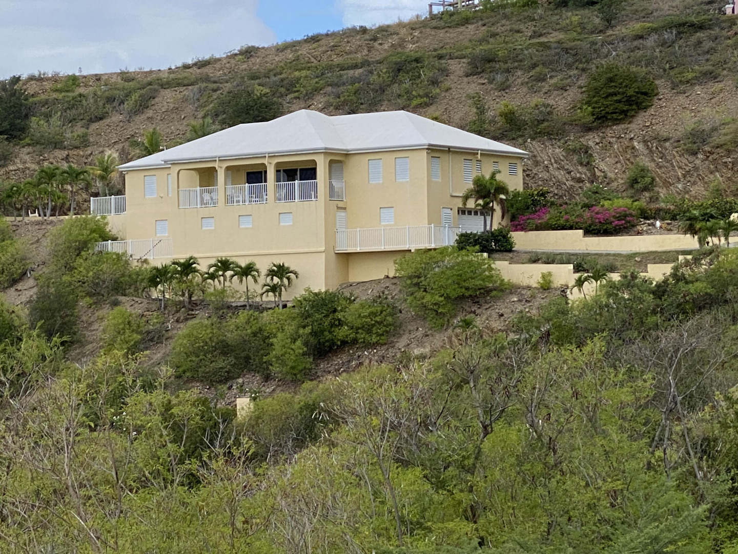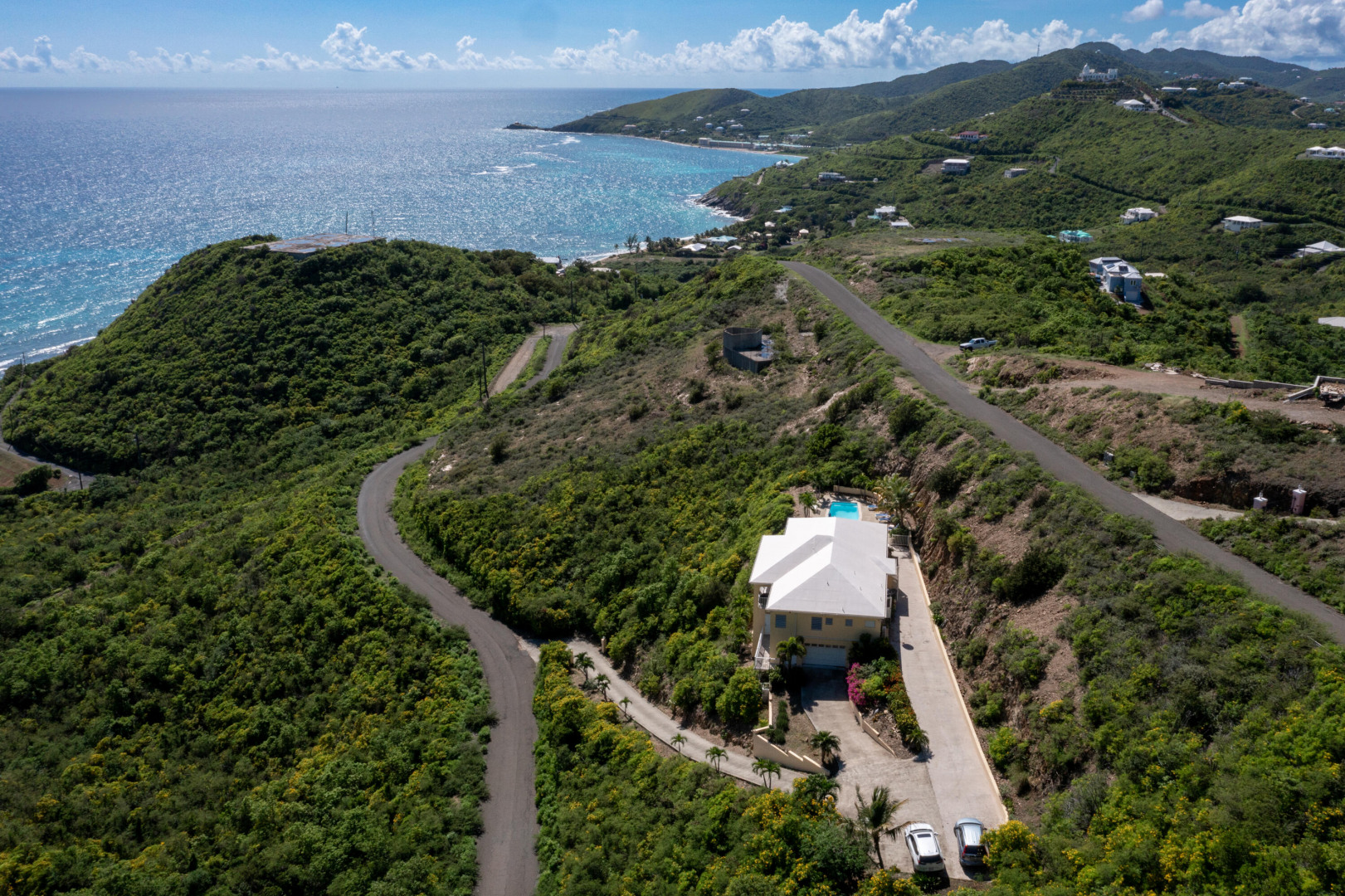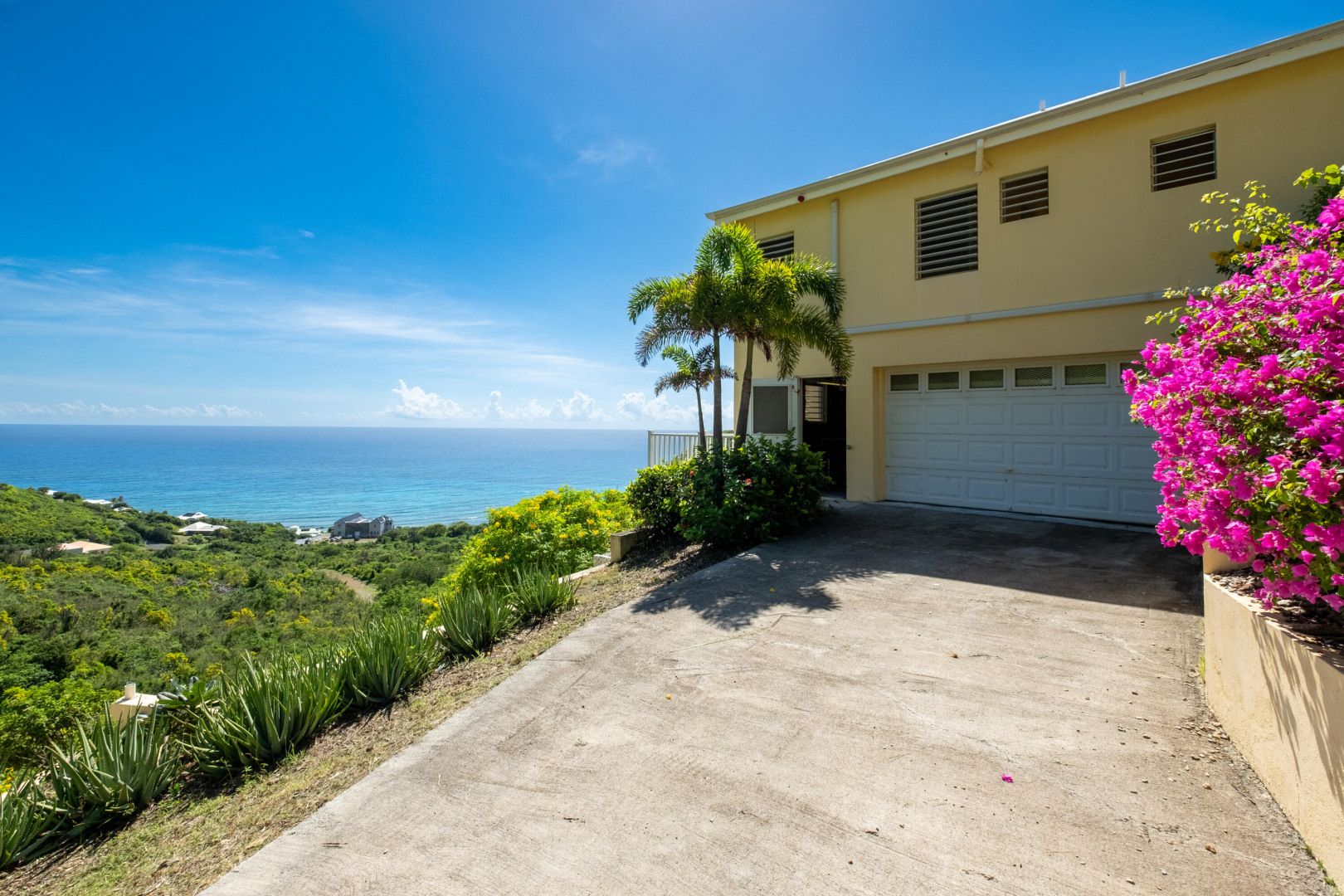 101 South Grapetree is a breezy home boasting 3 bedrooms, 2.5 baths, and pool with outstanding Caribbean Sea views. It is perfectly positioned facing east over Grapetree bay and out to St Croix's eastern most point. A solidly built home with an open-concept main room and kitchen, all rooms have high cathedral ceilings. The main room opens out onto the wonderful 9.5 X 28-foot gallery, for enhanced island living! You will also love the private pool and ample patio area for relaxing and entertaining. The garage is a convenient luxury with its big workroom and storage space. Situated on almost 1 acre of land, this solid home features a paved driveway on a quiet dead-end street that leads to Jack's and Issac's Bay. The serenity is unmatched, yet it is convenient to beaches, and restaurants.