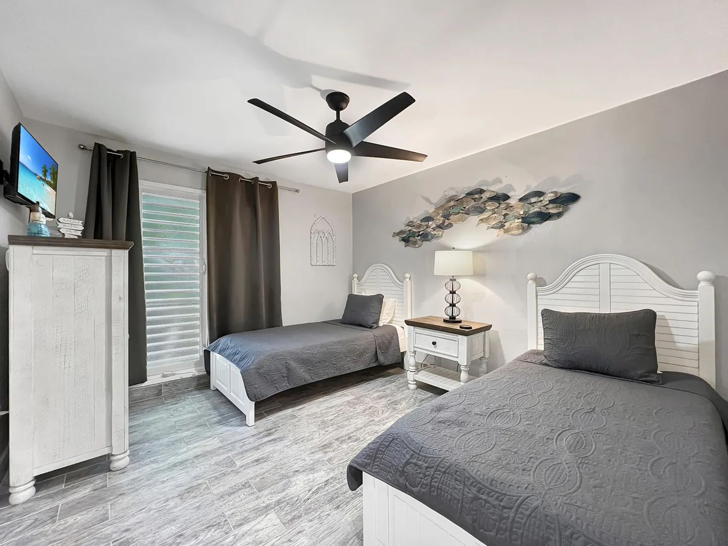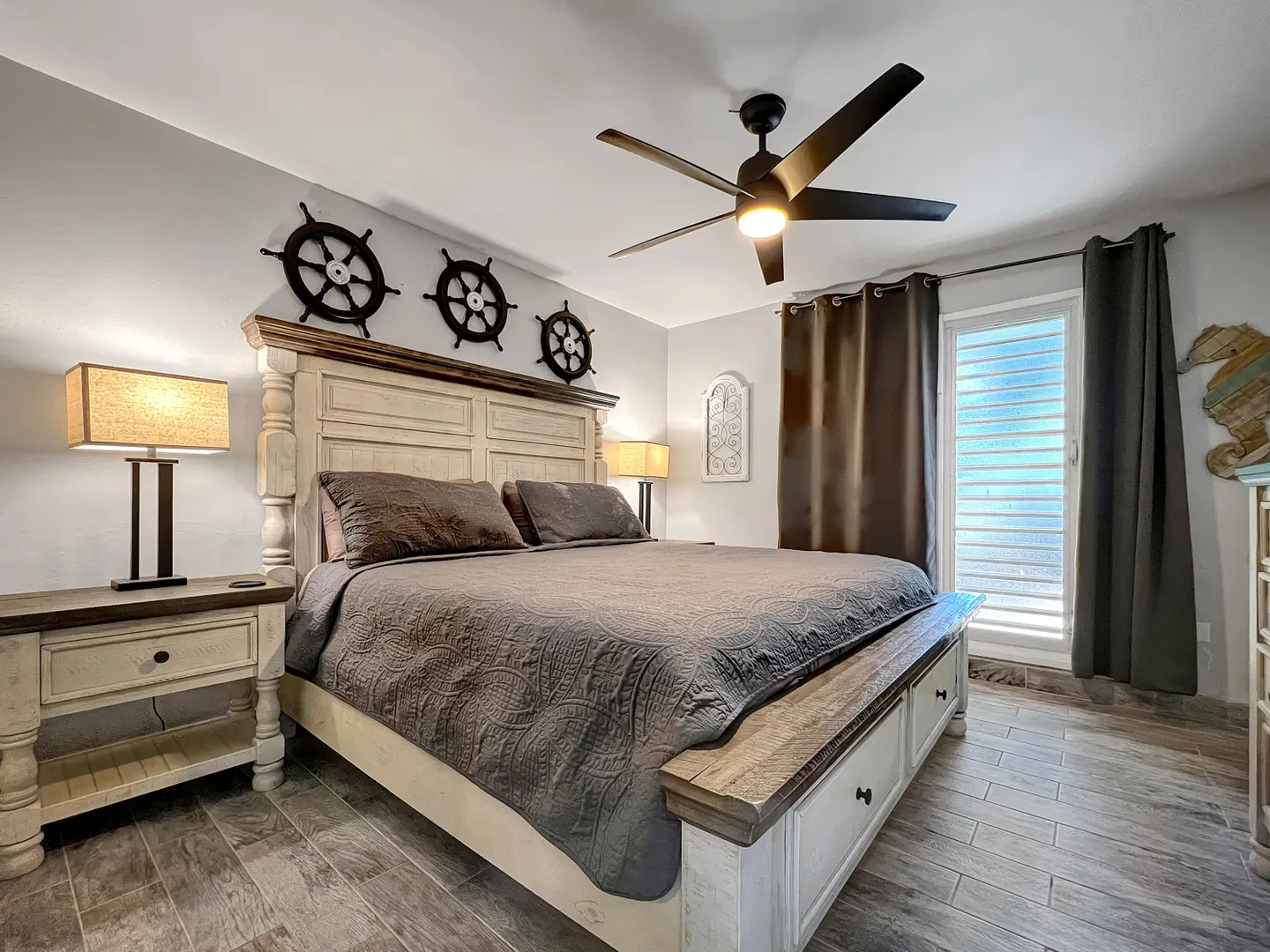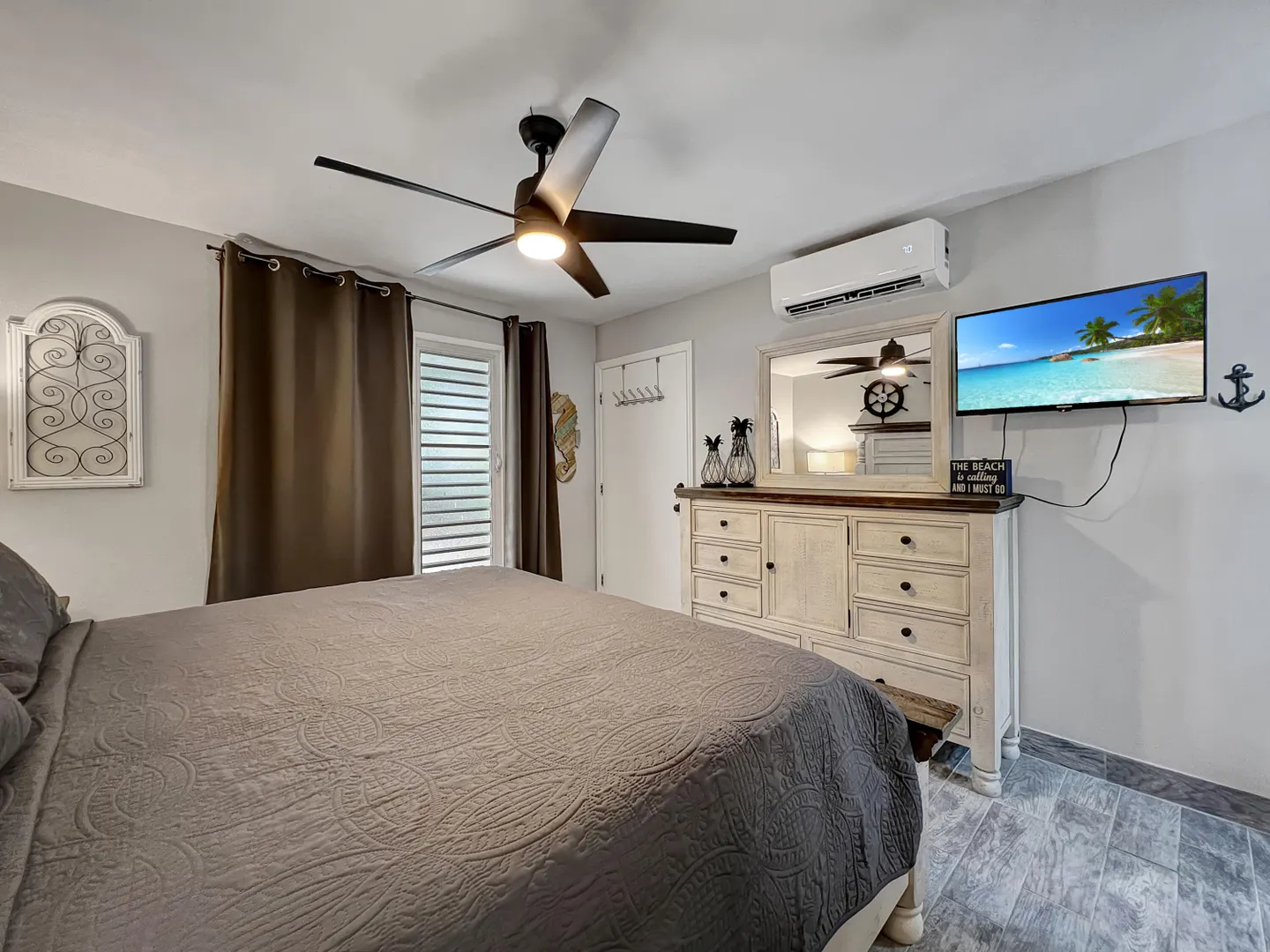 Beautiful ground floor 2 bed/2 bath condo with sea & garden views in the gated complex of Colony Cove! Easy entry to B building with just 1 step from parking lot! Remodeled in 2023 with new ceilings, AC splits, TVs, custom cabinets, light fixtures, tile, gallery tile, complete bathrooms, furniture, some appliances, & fresh paint (See improvements list in Documents section). Enjoy the delightful sea breezes and lovely view as you relax on the spacious gallery, or from the open floor plan living room/kitchen. Main bedroom includes walk-in closet & locking owners' closet. Colony Cove condominiums has a private pool, beach access, professionally landscaped grounds, a restaurant next door, & located just minutes from shops & services. Great rental history for those looking for an investment.
