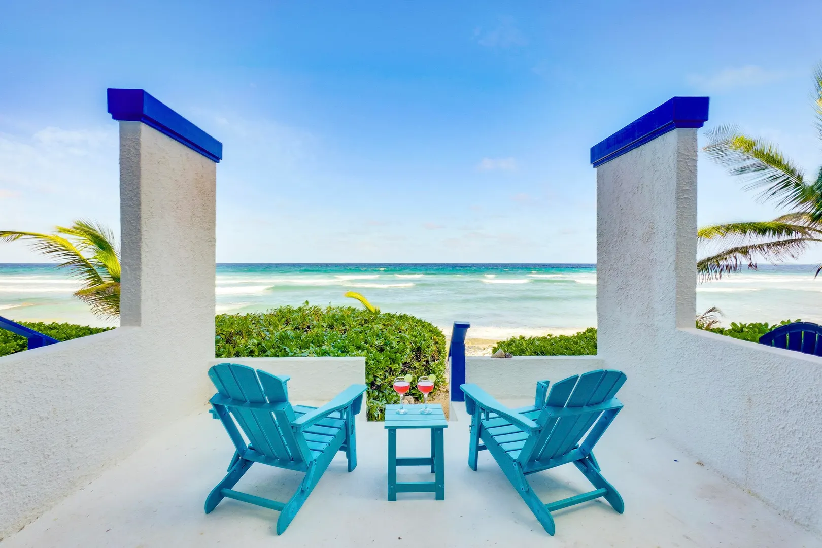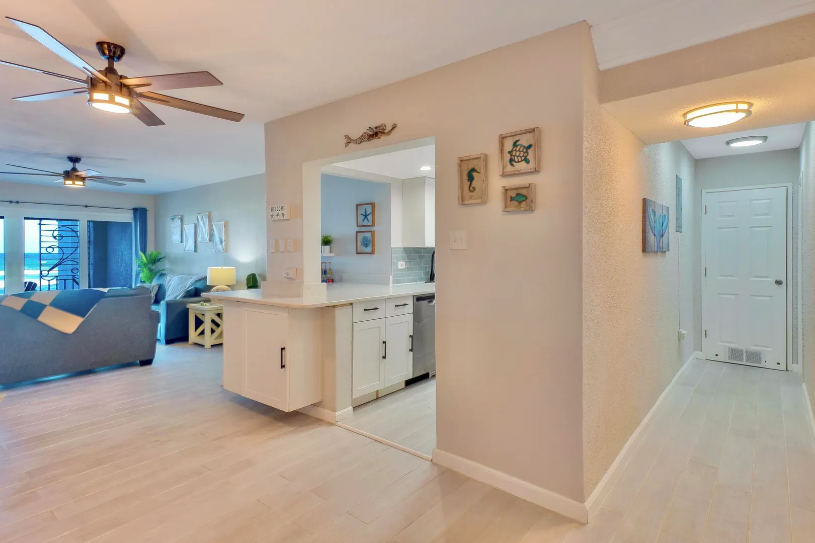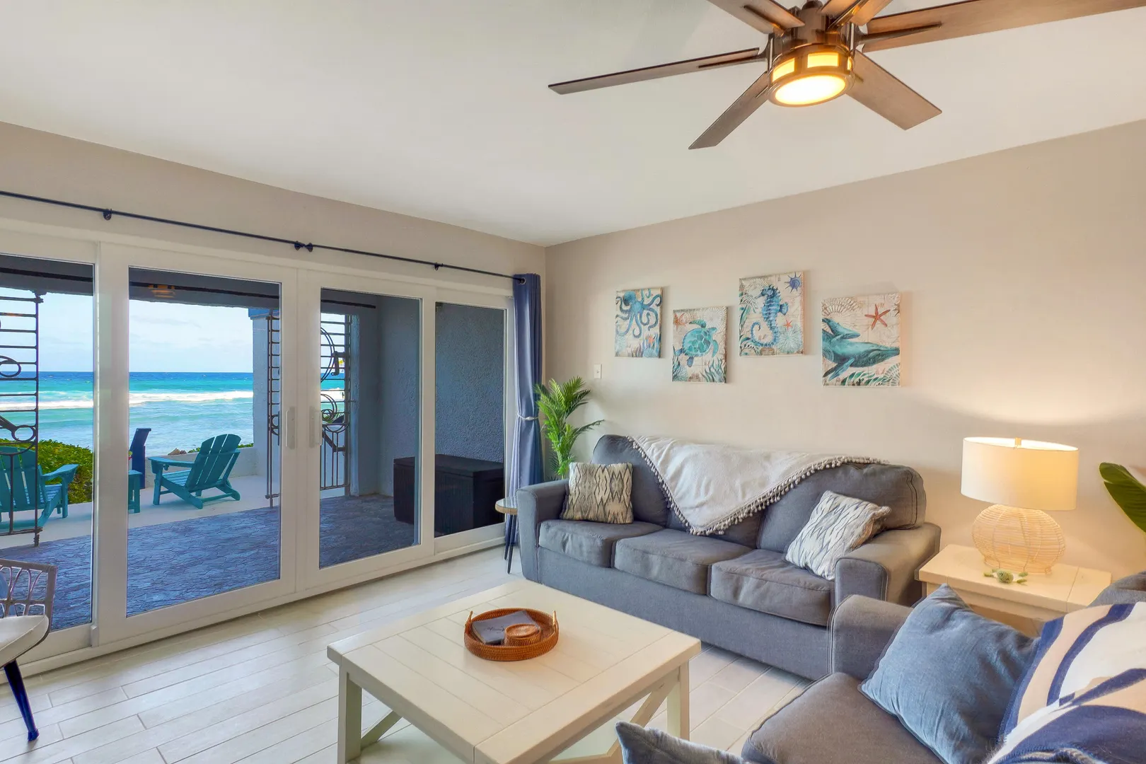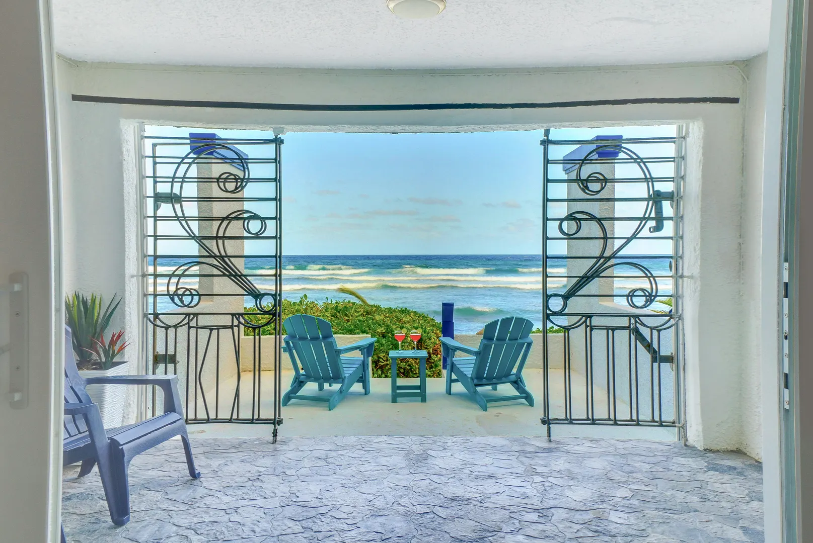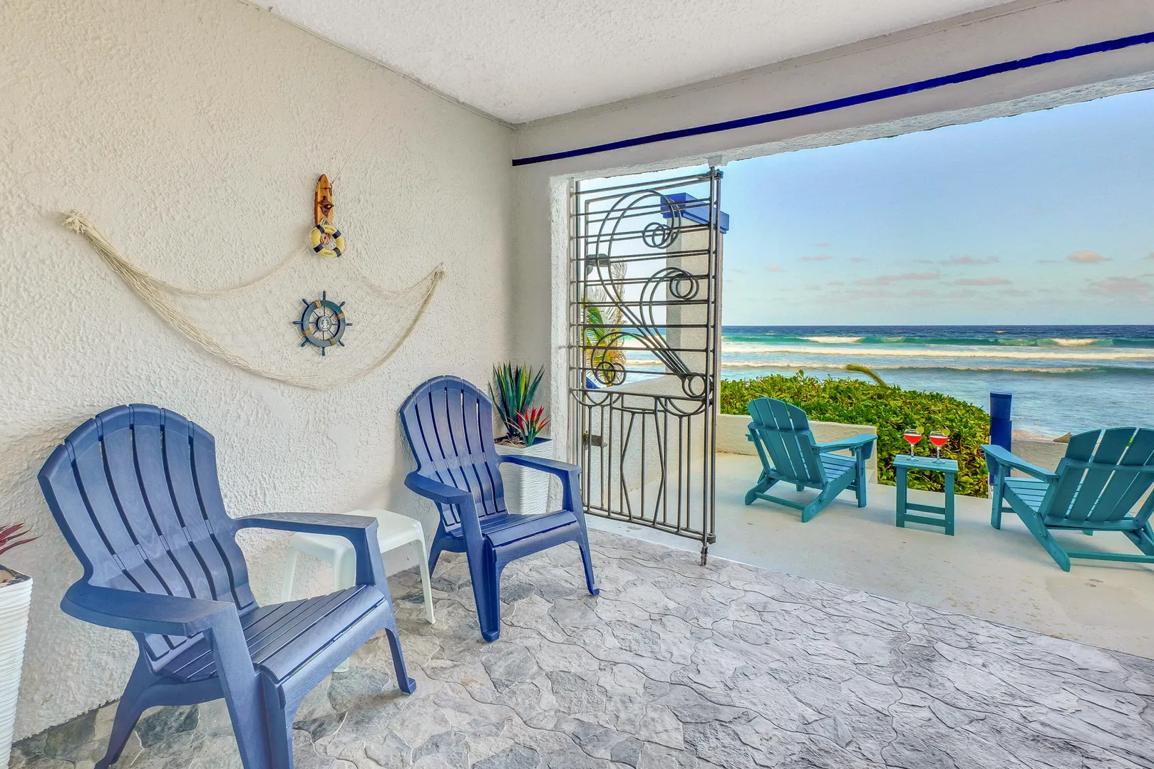 If you've been holding out for an oceanfront condo that truly performs--both as a personal getaway and an income-producing asset--this fully renovated 2BR/2BA, ~1,200 sq ft residence in Granada Del Mar Condos deserves your attention! Ground floor with direct sandy beach access. Wood-look tile, quartz fully equipped kitchen with pass-through + coffee bar. Living/dining opens to covered oceanfront gallery and private sunny terrace. Both bedrooms have en-suite baths; guest bedroom has exterior entry door for added privacy and potential ''lockoff'' rental flexibility.The complex offers an oceanfront pool, a tennis court and a backup diesel generator. New central A/C, in-unit W/D, high-speed internet, mesh WIFI, 100+ cable channels (incl HBO), keyless entry, assigned parking.- Granada Del Mar Condos | 2 bedrooms / 2 full baths | ~1,200 sq ft