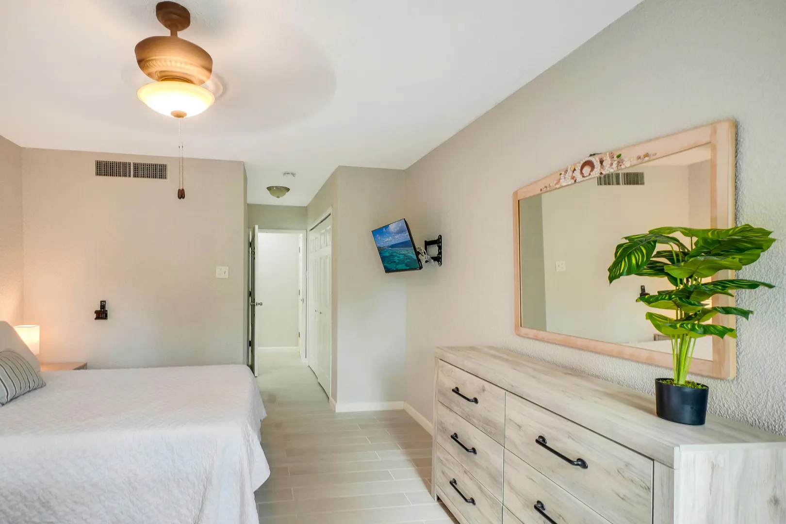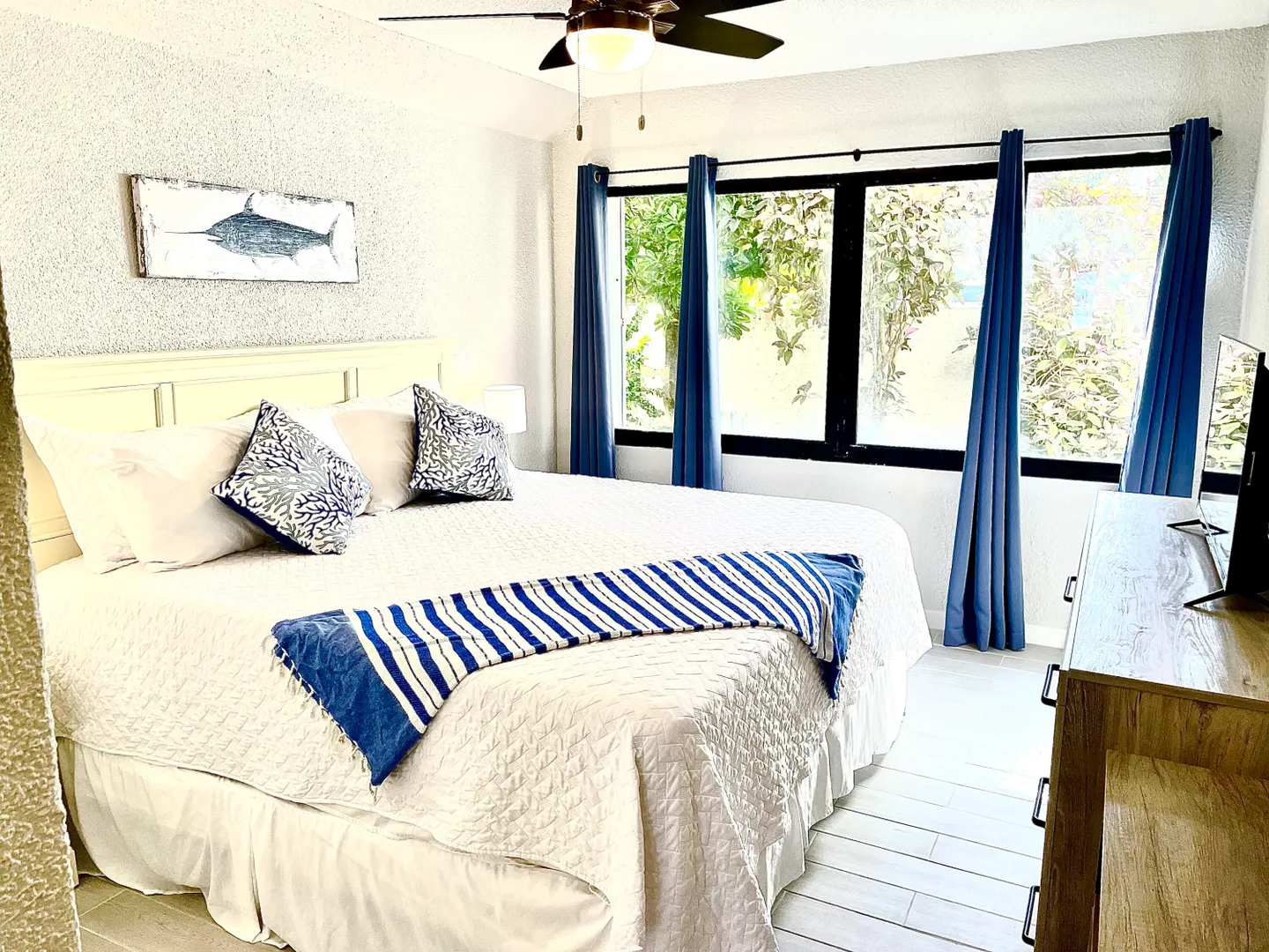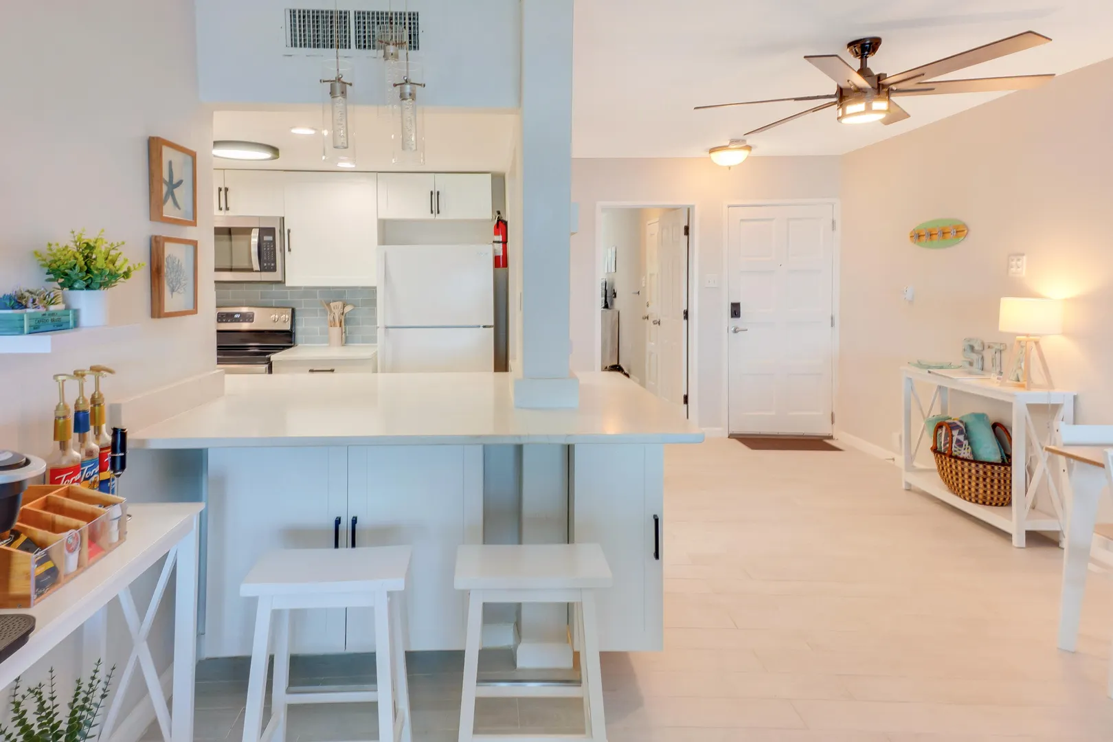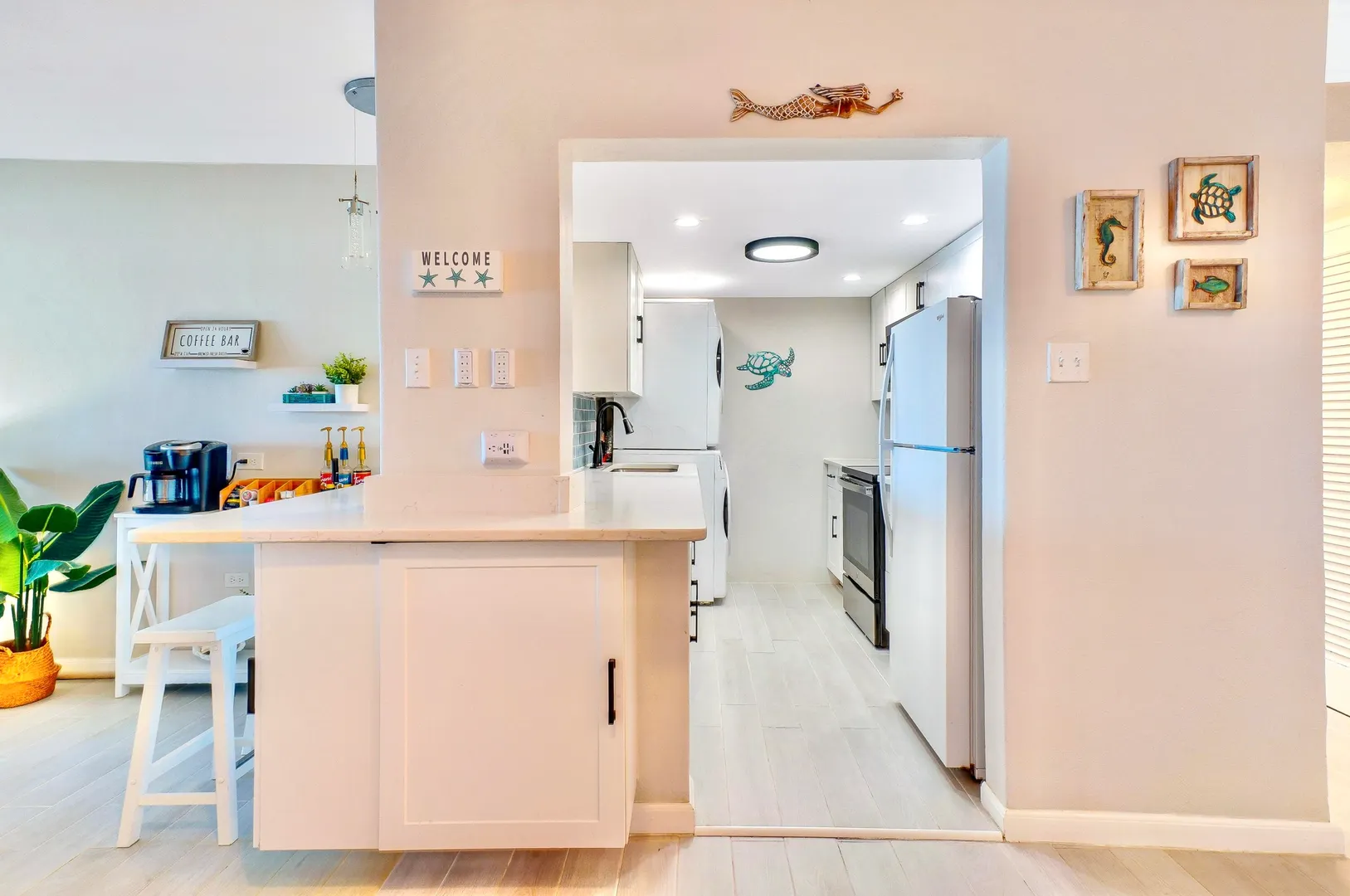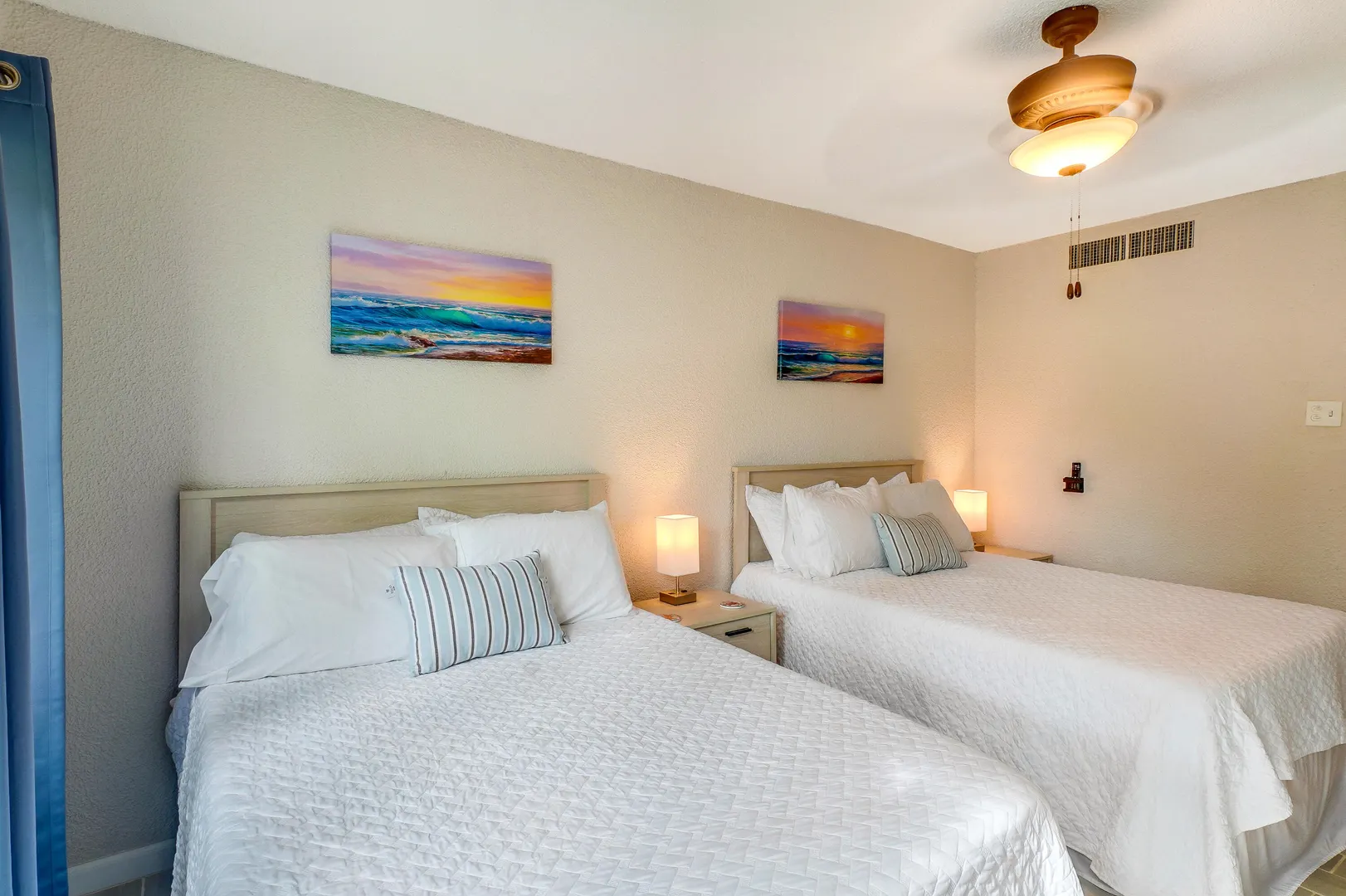If you've been holding out for an oceanfront condo that truly performs--both as a personal getaway and an income-producing asset--this fully renovated 2BR/2BA, ~1,200 sq ft residence in Granada Del Mar Condos deserves your attention! Ground floor with direct sandy beach access. Wood-look tile, quartz fully equipped kitchen with pass-through + coffee bar. Living/dining opens to covered oceanfront gallery and private sunny terrace. Both bedrooms have en-suite baths; guest bedroom has exterior entry door for added privacy and potential ''lockoff'' rental flexibility.The complex offers an oceanfront pool, a tennis court and a backup diesel generator. New central A/C, in-unit W/D, high-speed internet, mesh WIFI, 100+ cable channels (incl HBO), keyless entry, assigned parking.- Granada Del Mar Condos | 2 bedrooms / 2 full baths | ~1,200 sq ft