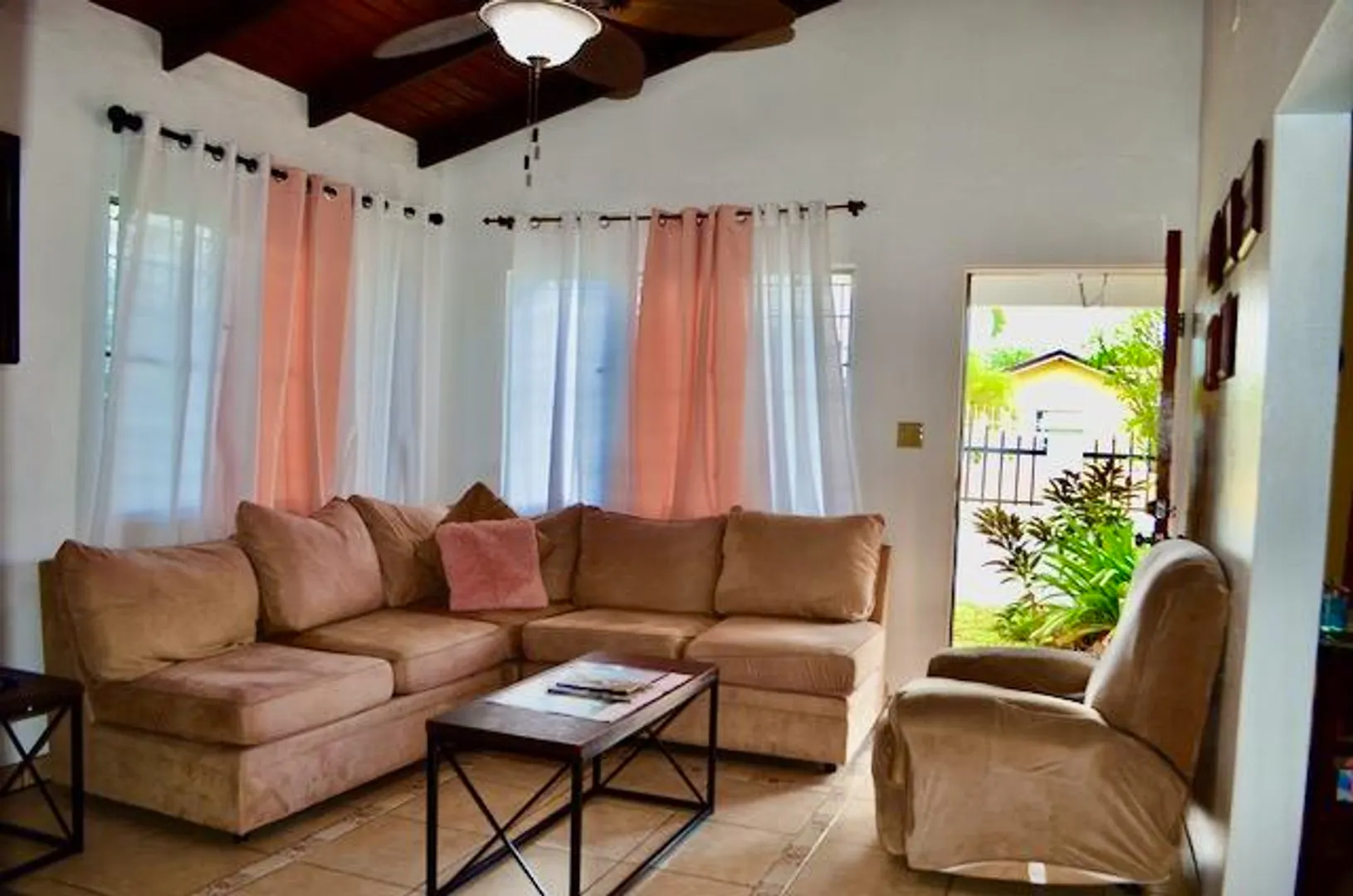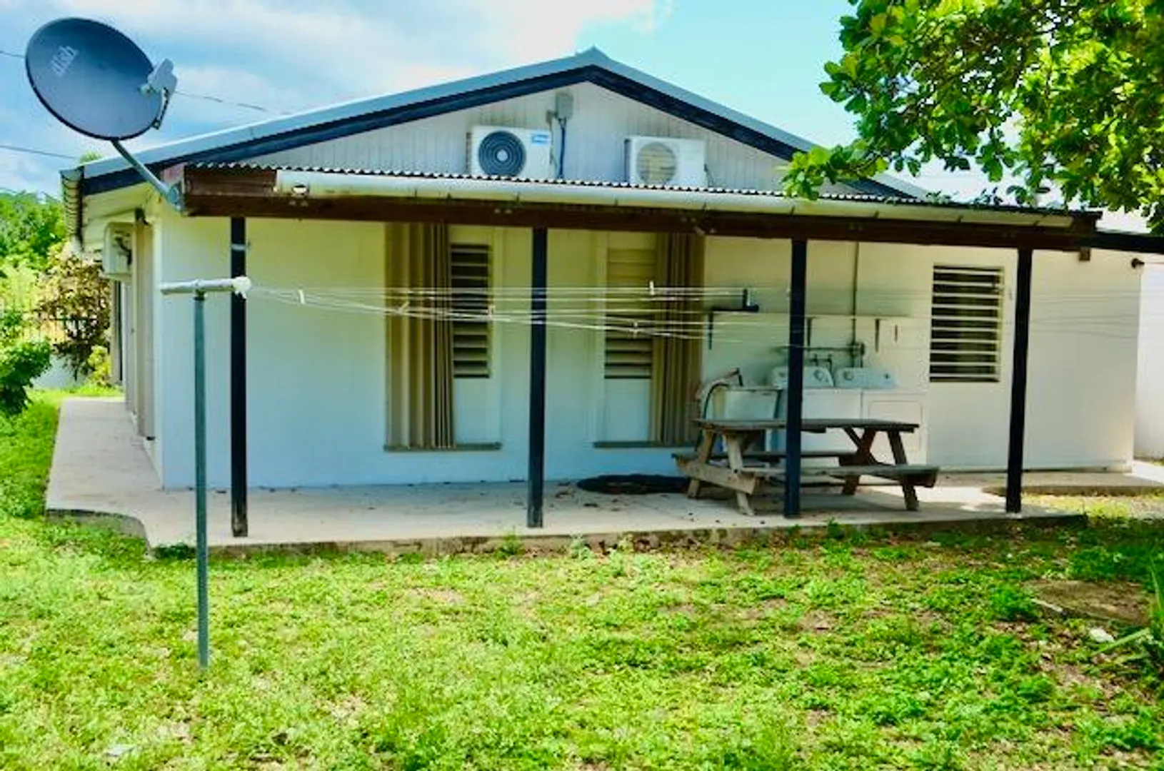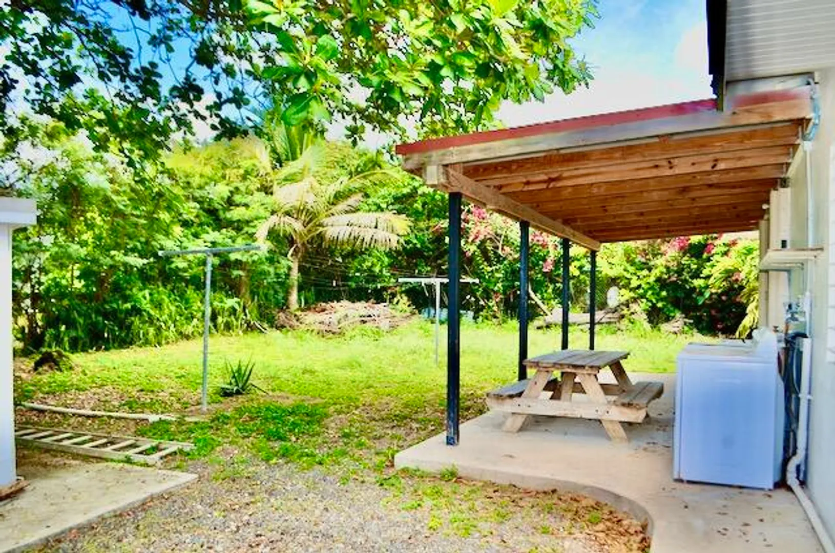 Well-appointed cozy 3 bedroom/2 bath with a fenced & gated yard, generator, air-conditioned bedrooms, washer/dryer, & large carport. Comfortable furniture including a large screen TV. New appliances including a gas stove. Easy to button up in a storm w/accordion shutters. Quiet west end neighborhood convenient to all Frederiksted beaches and major roads. A perfect place to call home. Includes wi-fi & lawn care. Cistern water & tenant pays for additional water.