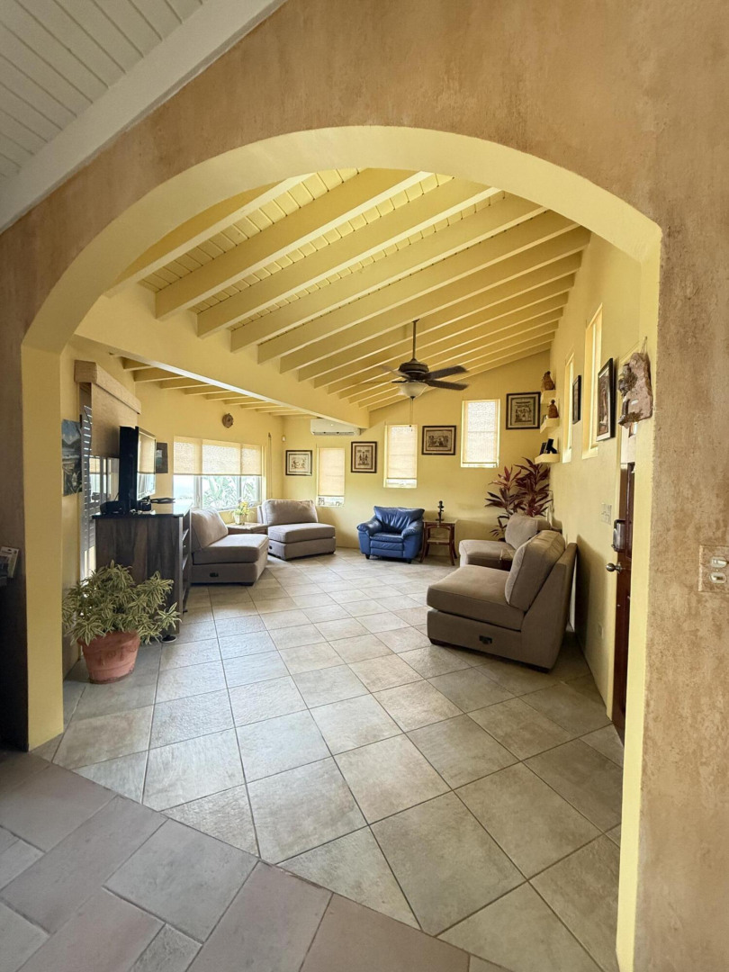 This exquisite 3 bedroom, 2 bathroom home plus Studio has both ocean and Charlotte Amalie harbor views and is conveniently located to town, airport, restaurants, and beaches. Features include solid concrete construction, rental income potential for the Studio unit, 2 car garage, separate work-shop, spacious office, air-conditioning, hurricane shutters, and 32 solar panels to help reduce the electric bill. A must see---this property has the amenities you need to make it your home in beautiful St. Thomas, USVI.