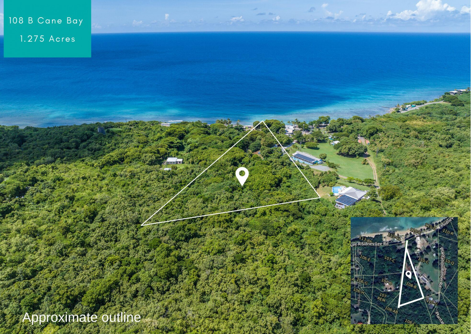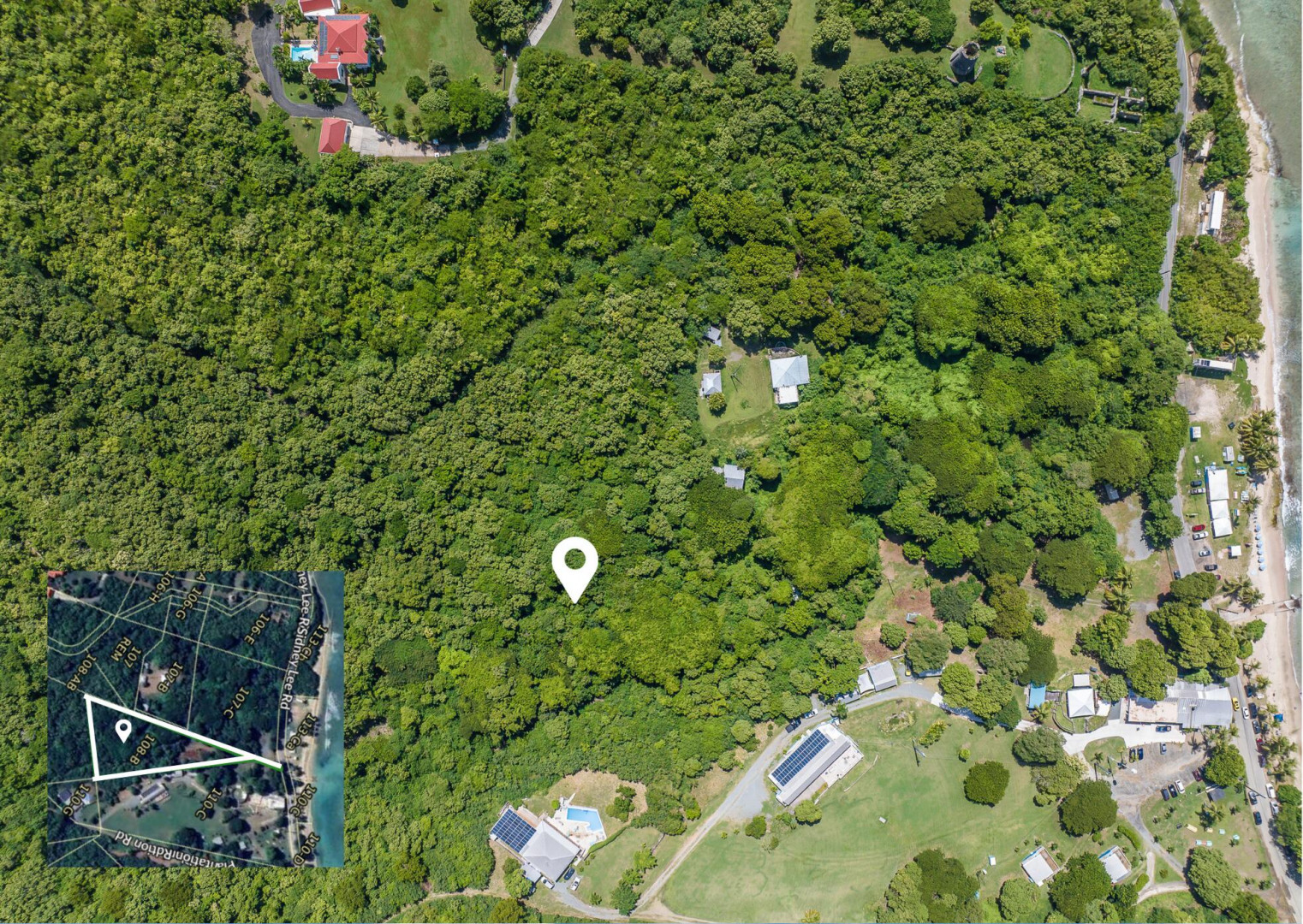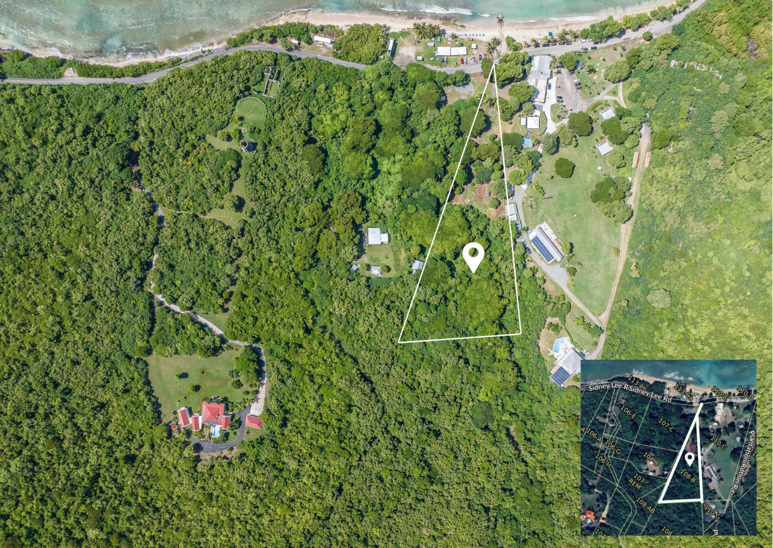 Amazing opportunity to own a 1.28 acre flat plot of land, with main road access across from beach. This property is being sold ''AS IS WHERE IS'' With a little TLC, a unique chance to create a peaceful retreat amidst the natural beauty of the North Shore awaits. A wooden bath house, laundry room and several wooden cottage structures give the buyer the ability to renovate these structures or tear them down for a blank canvas.Access to hiking trails surrounded by lush greenery, just a short walk from famous Cane Bay Beach. This plot is perfect for developing a serene, eco-friendly getaway within walking distance to a dive shop, restaurant and one of the best beaches for snorkeling and diving on St. Croix. Nearby power lines and close proximity to main road make this an ideal investment