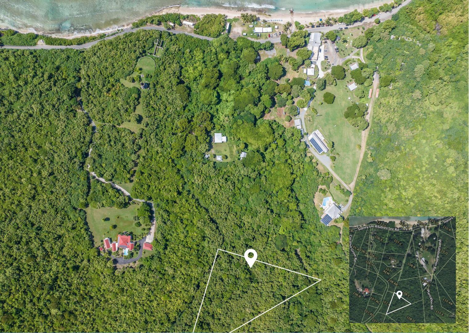 An acre and a quarter of gently sloping land is the perfect-sized parcel to build ones dream home or add additional wooden style, cozy cottages. With views and quick access to the serene hiking trails, rolling green hills, all backed by sweeping ocean shores, a home nestled within this picturesque scenery would be the definition of paradise and island living. The purchaser of this parcel can truly build their dream home or series of investment properties while remaining in walking distance to one of St. Croix's best beaches. Cane Bay is known for unparalleled snorkeling and diving with Sweet Bottom Dive Shop, locally owned favorite dining restaurants such as The Landing Beach Bar and Grill, a gift shop, and several other beach bars all within the vicinity of the iconic North Shore.Imagine waking up to the gentle sounds of the Caribbean Sea, with lush tropical foliage surrounding you. Just minutes away, Cane Bay Beach, one of the island's most beloved beaches, is perfect for a refreshing morning swim or a day of sunbathing on its golden sands. Cane Bay is also world-renowned for its scuba diving; it is home to the famous "Cane Bay Wall," one of the best dive sites in the Caribbean. Only a short swim from shore, this underwater marvel offers an awe-inspiring drop-off, where you can encounter vibrant coral reefs, diverse marine life, and an exhilarating 13,000-foot descent into the deep blue. For divers of all levels, from beginners to seasoned experts, Cane Bay is a paradise, offering year-round opportunities to explore its underwater wonders.