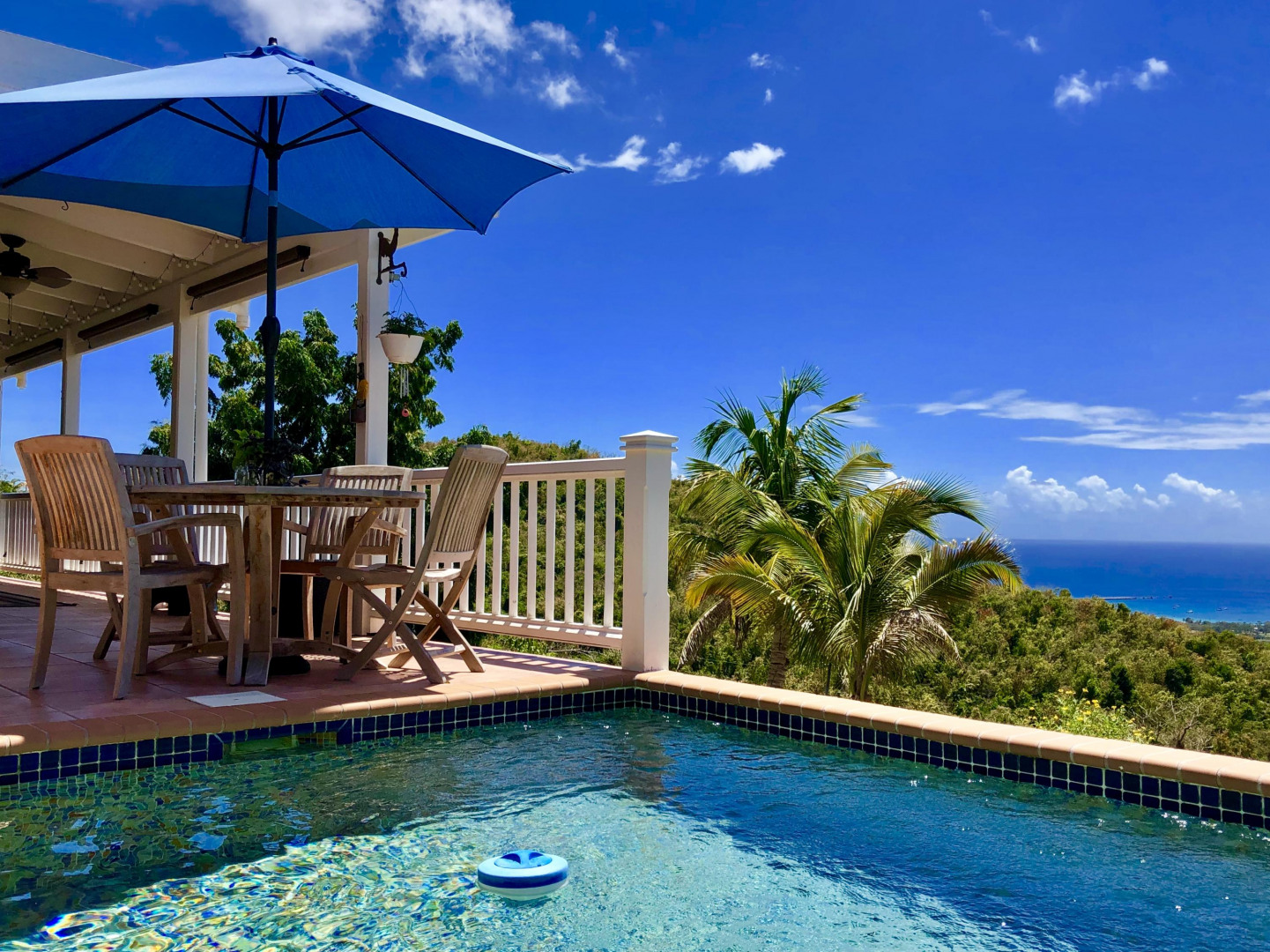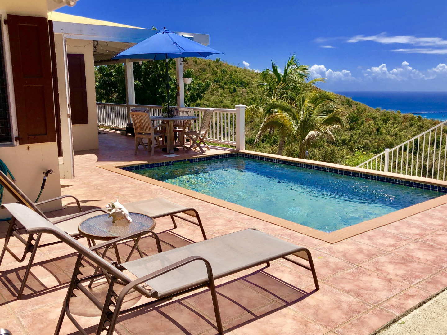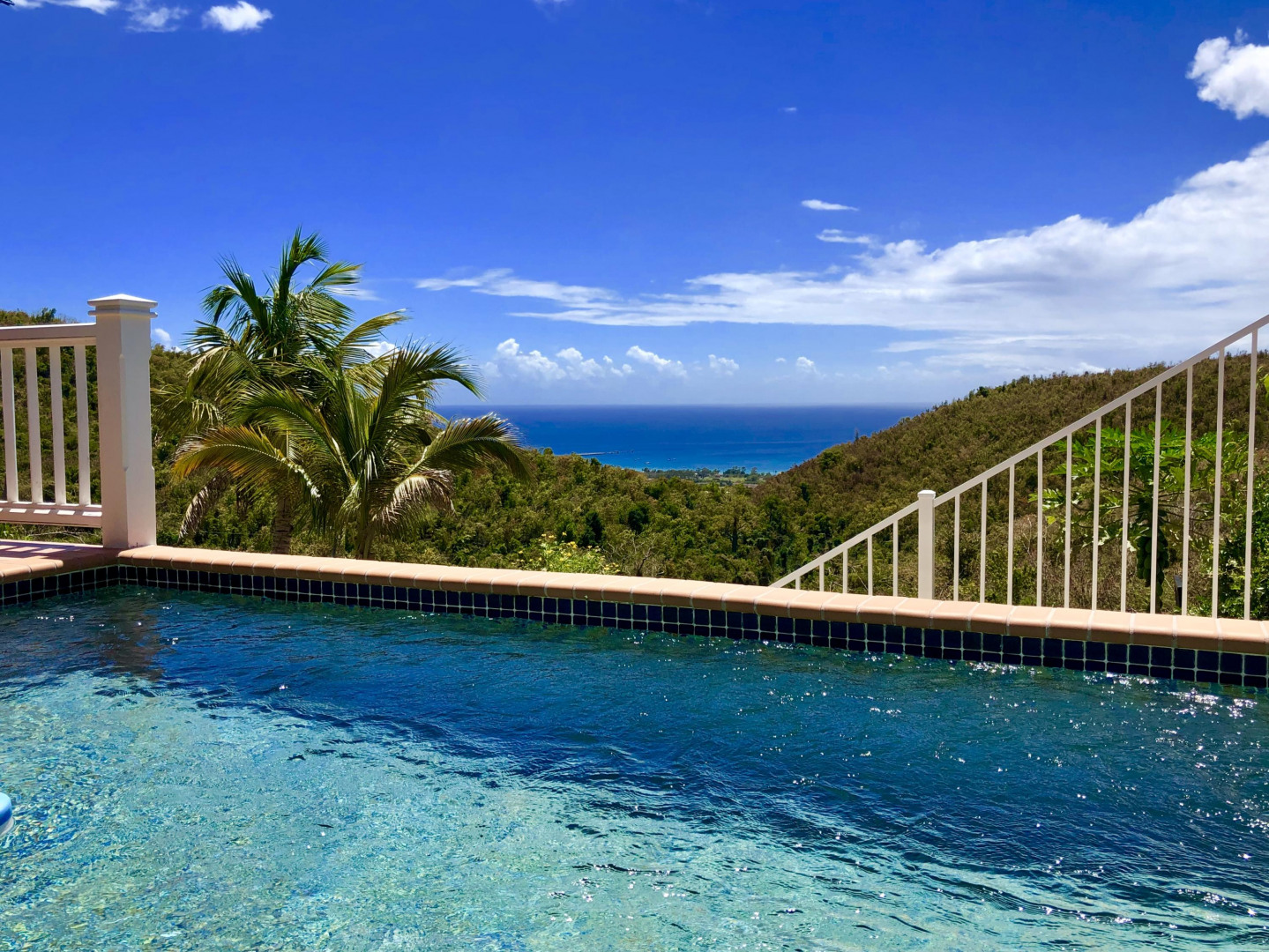 Beautiful three bedroom/ two bathroom home with stunning views nestled in the hills on St. Croix's west end. Lots of privacy and located in the gated subdivision Jolly Hills. The house features an open layout with an updated kitchen and vaulted ceilings. French doors opens up towards the covered deck with a beautiful pool and plenty of space around to lounge and enjoy the breeze and beautiful view. Some features worth mentioning include UV water filtration system, stainless steel appliances, generator and air conditioning in two bedrooms.Adjacent lots 110+ Little La Grange zoned A-2 and totaling 1.62 acres is listed for $60,000 should you want to make your own fruit orchard next door. See documents for more information.