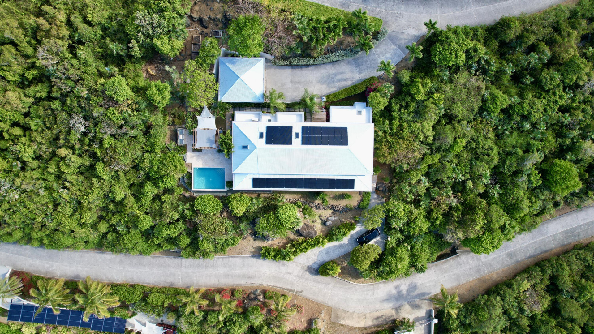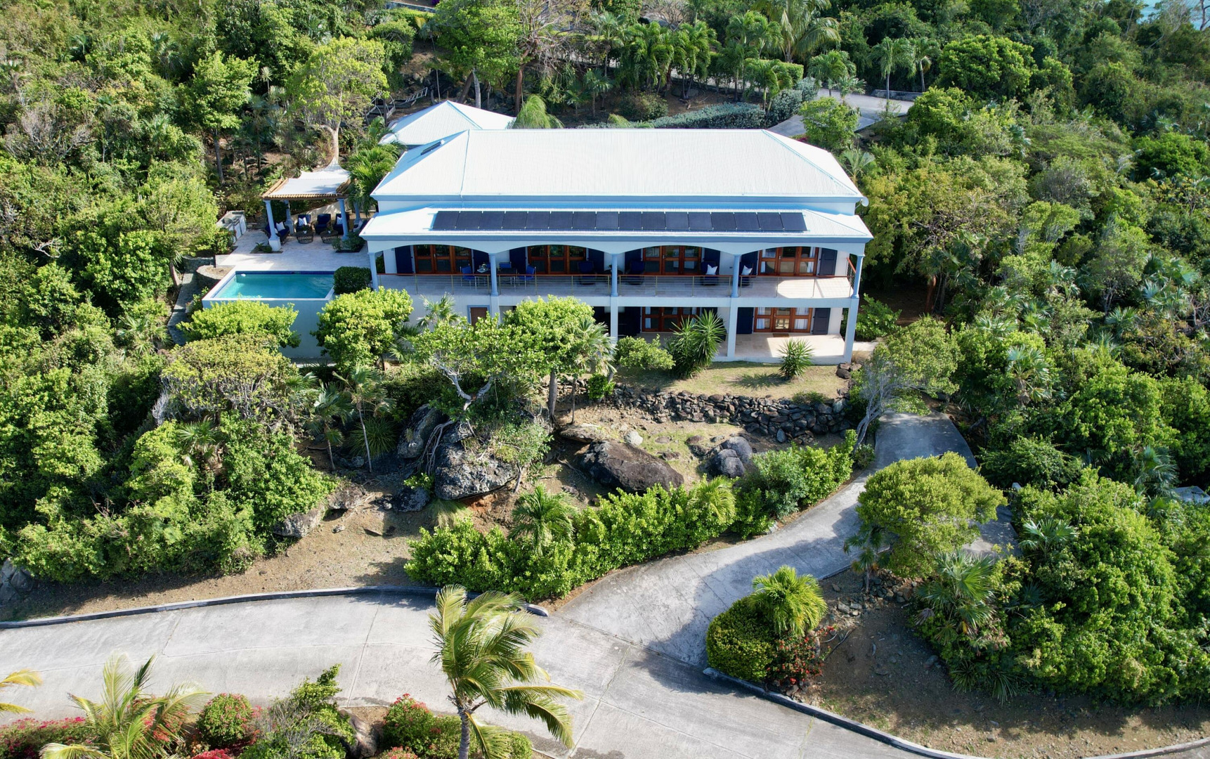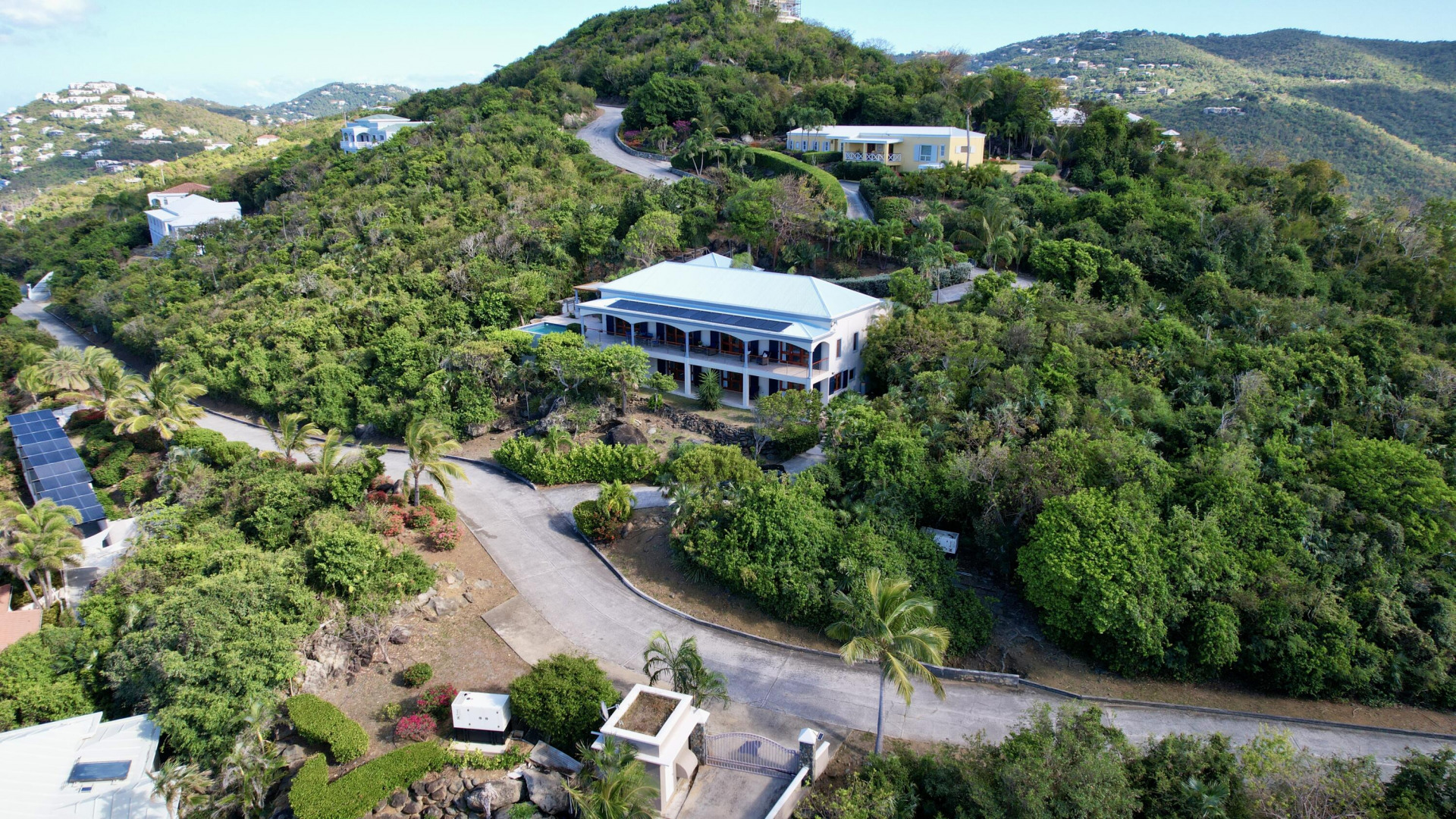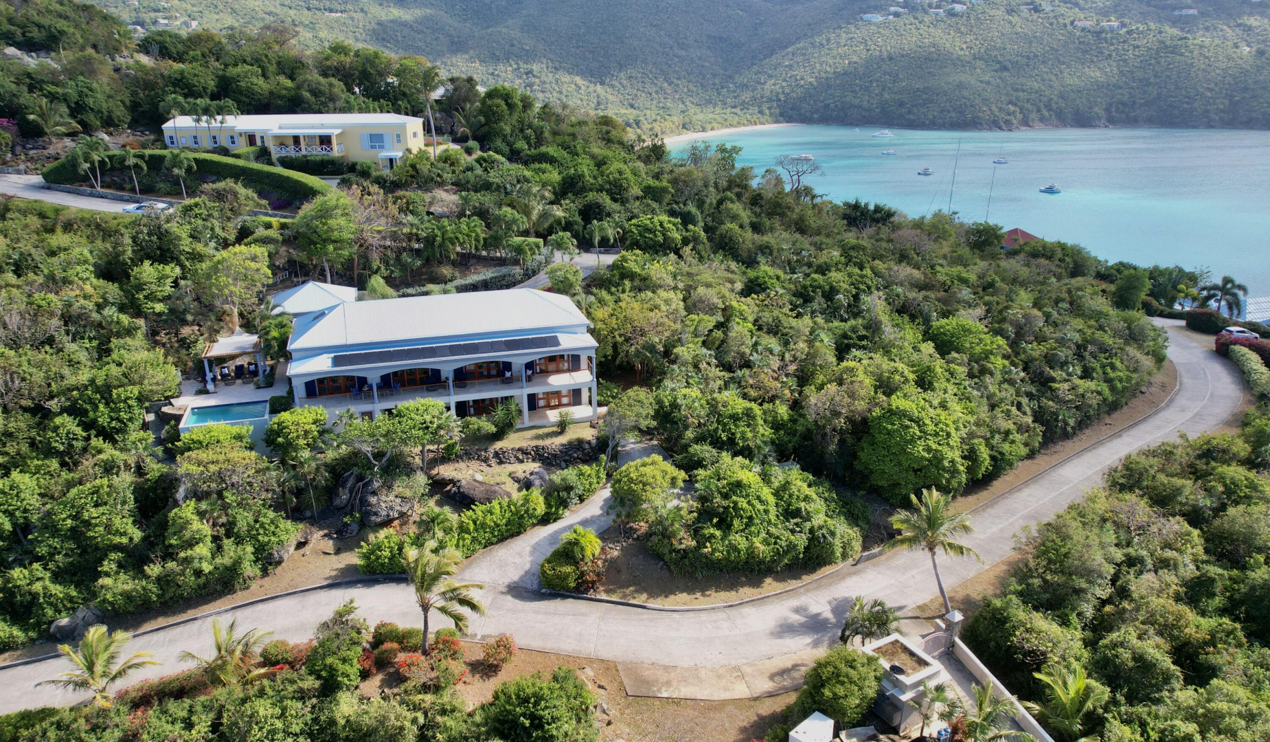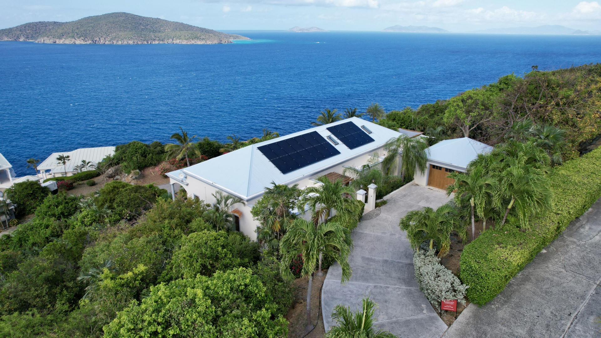 Discover ''La Dolce Vita'' in Sydney's Fancy, a gated community on Peterborg Peninsula. This captivating villa boasts a main house with 3 bedrooms, 2 baths, a loft, and breathtaking views of Hans Lollik and the BVI. It's equipped with solar panels, net metering, and a generator for eco-friendly living. The separate 1-bedroom apartment with its own driveway offers privacy. Outdoor features include a pool, garage, trellis area, built-in BBQ, and gardening space. Embrace elegance and sustainability in this island paradise.