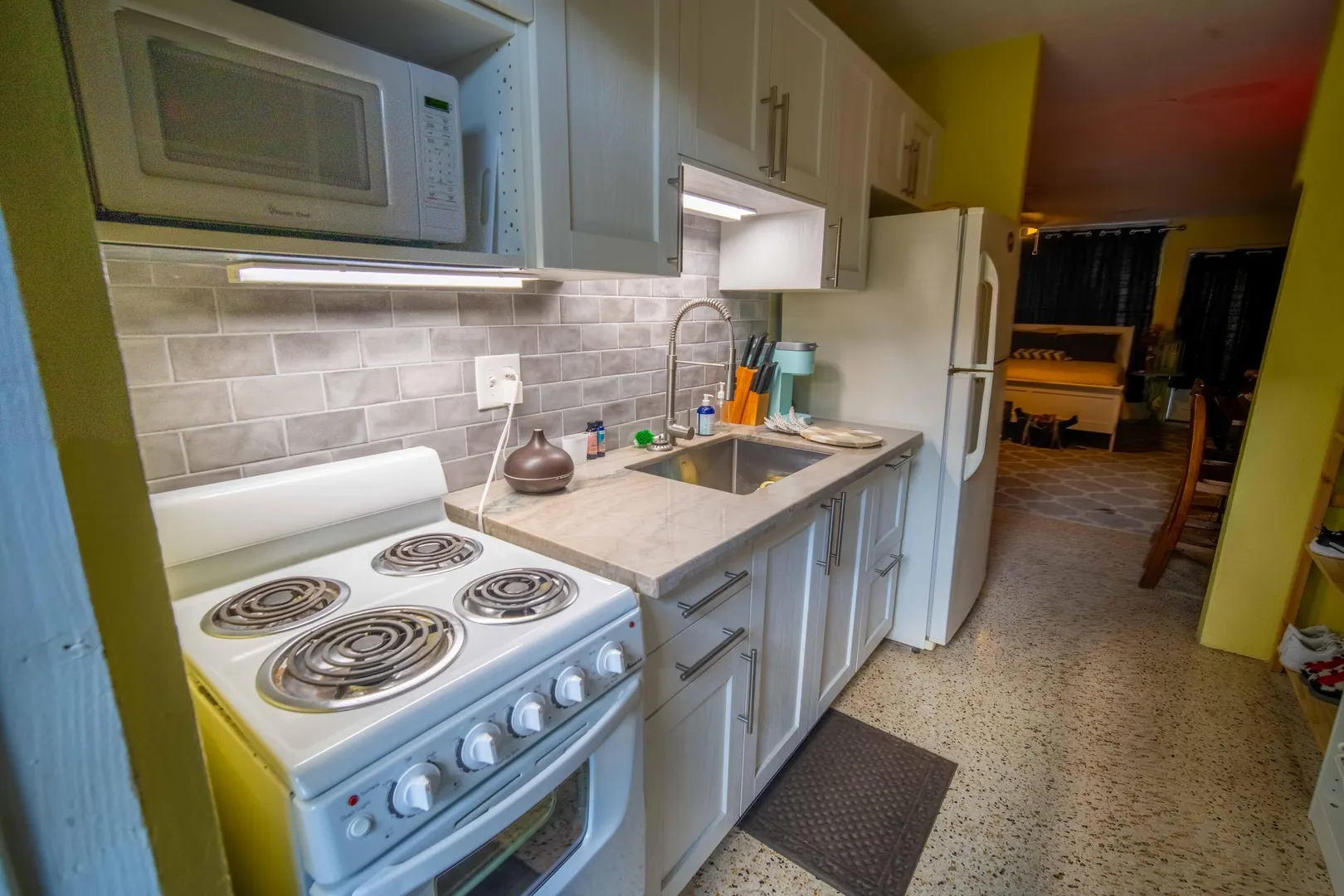 Step into easy island living at 11 Long Reef, a beautifully refreshed studio condo in a well-maintained, gated community just five minutes west of downtown Christiansted. This bright and welcoming unit has been thoughtfully renovated from top to bottom, featuring a modern kitchen with updated cabinetry, countertops and appliances, a stylishly redone bathroom, and tasteful furnishings that make the space move-in ready. Enjoy low condo dues and the convenience of on-site amenities including a pool and laundry facilities. Whether you're seeking a convenient home base, a turnkey rental, or a vacation retreat, 11 Long Reef offers comfort, value, and unbeatable proximity to Christiansted's vibrant shops and restaurants.