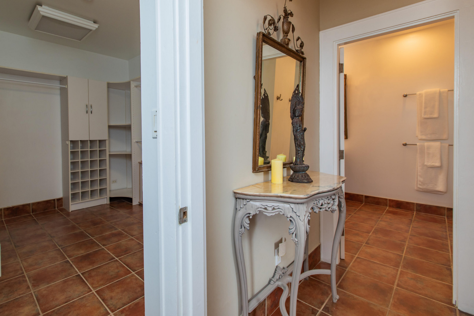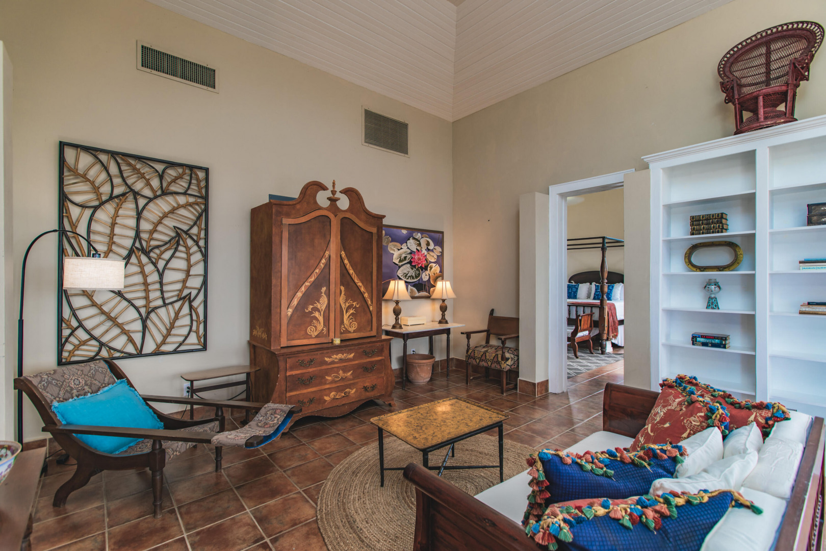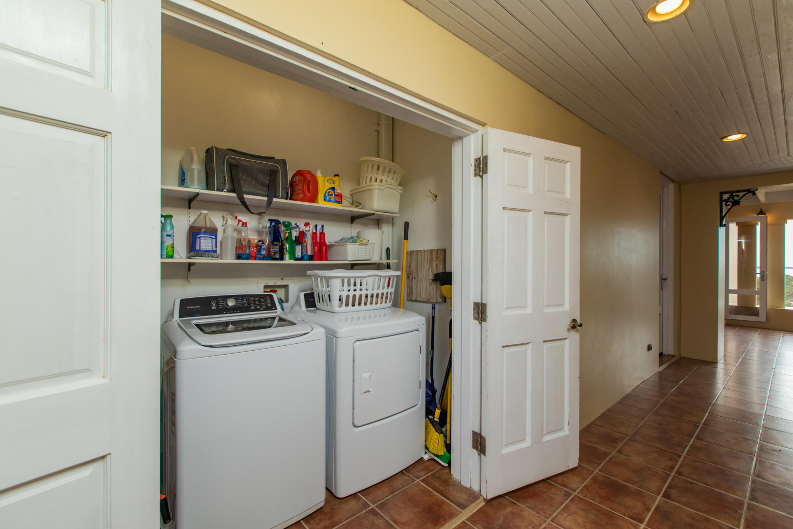 Welcome to this luxurious 4-bedroom, 4-bathroom hilltop estate, complete with a 1-bedroom , 1-bath apartment, located in a prestigious beachfront gated community on the east end, near the iconic Buccaneer Resort & Golf Course. Perched high above the coastline, this stunning property offers breathtaking panoramic views of the Caribbean Sea, blending modern elegance with island charm. The home features a spacious custom chef's kitchen, ideal for entertaining, with top-of-the-line appliances, hand-painted murals and sleek finishes. The expansive great room boasts live coral tile walls, elegant tray ceilings, and an abundance of natural light, creating a serene yet sophisticated living space. The master suite offers privacy with its own wing and features a spacious library, trey ceilings,spacious walk-in closet, outdoor gallery access and central air conditioning. The upper level of this estate is home to 3 guest suites, each with access to the long, covered gallery with views over the valley towards Buck Island and the sea. Step outside to your very own oasis, complete with a resort-style pool, surrounded by lush tropical landscaping, a serene water feature and poolside gazebo. Sustainable living is at your fingertips with a solar power system, Tesla battery backup, and a diesel generator ensuring your comfort and peace of mind. Built with high-quality materials, including impact glass windows, this home is designed for both luxury and durability. The 1-bedroom apartment offers flexibility, perfect for guests, extended family, or as an income-generating rental. Located in a coveted community with beach access and unparalleled amenities, this property is your gateway to the best of Caribbean living. Schedule your showing today and make this exclusive hilltop retreat your own!