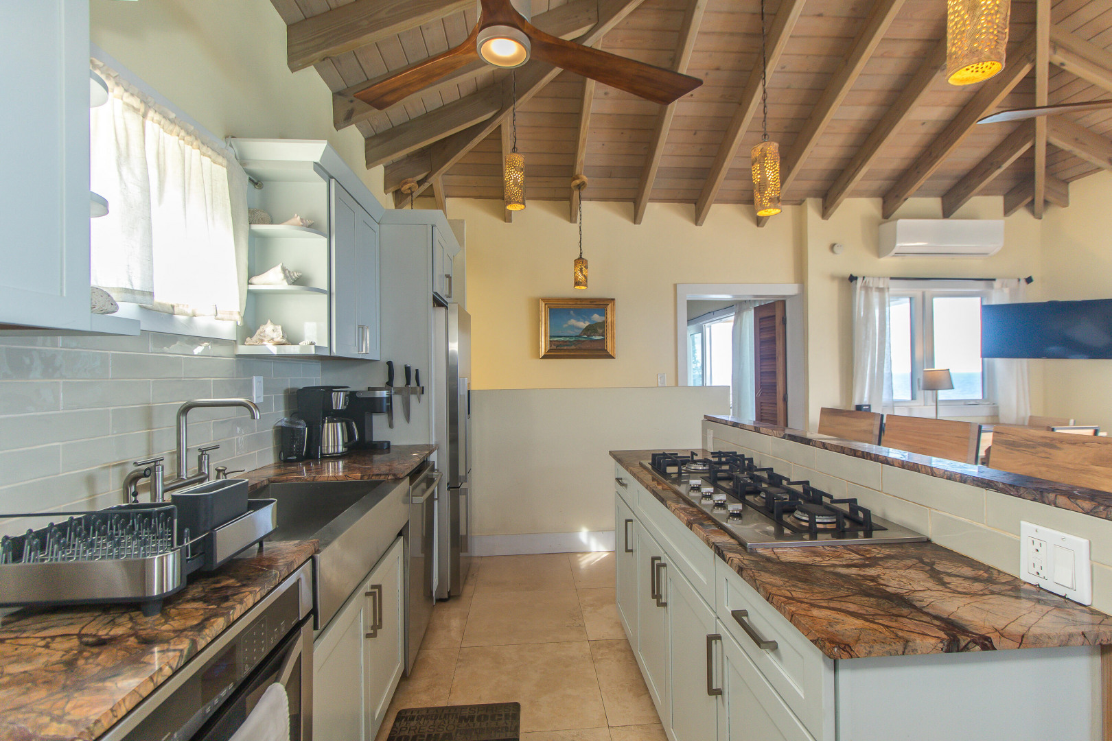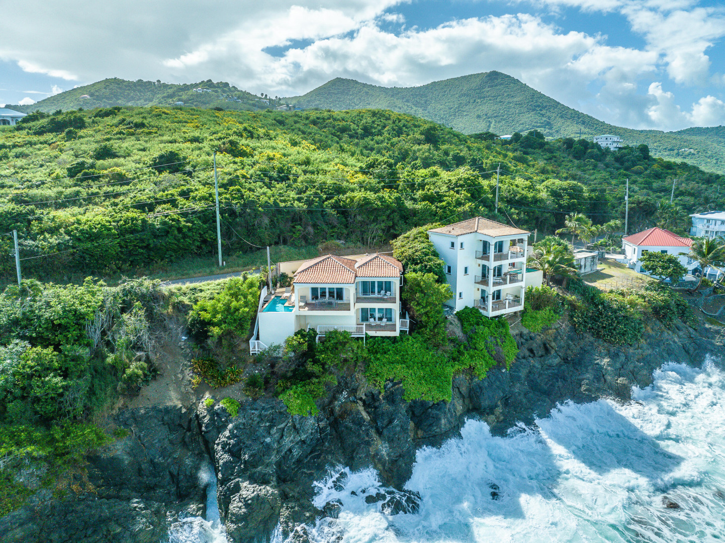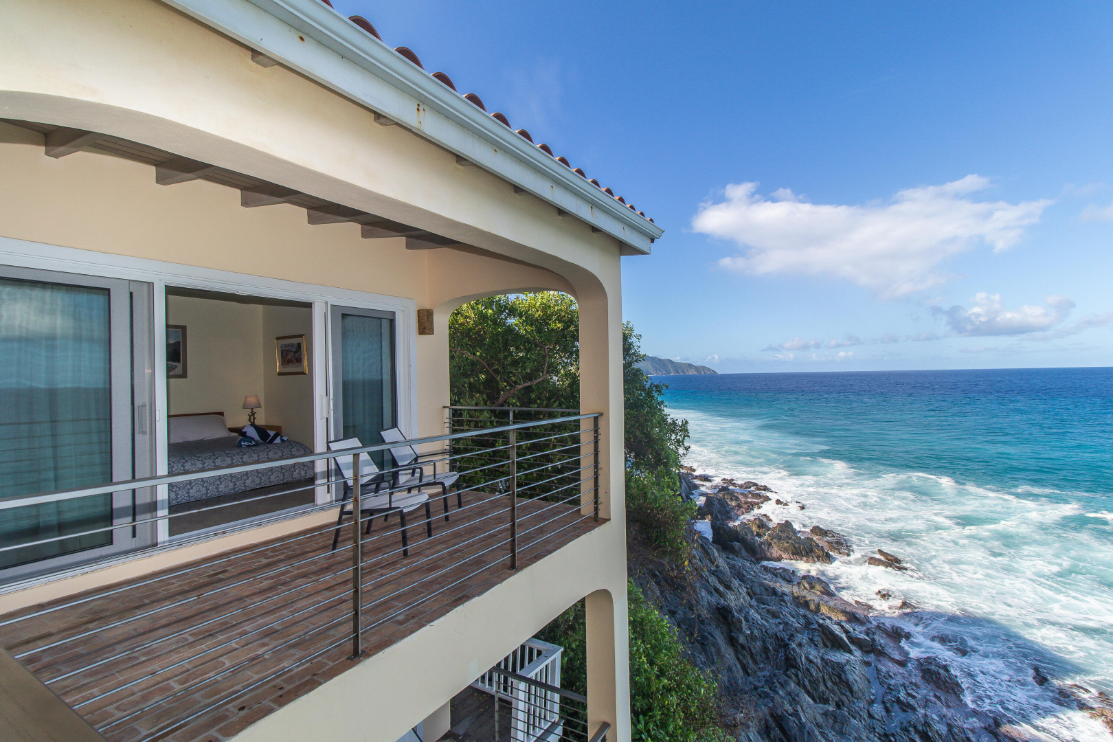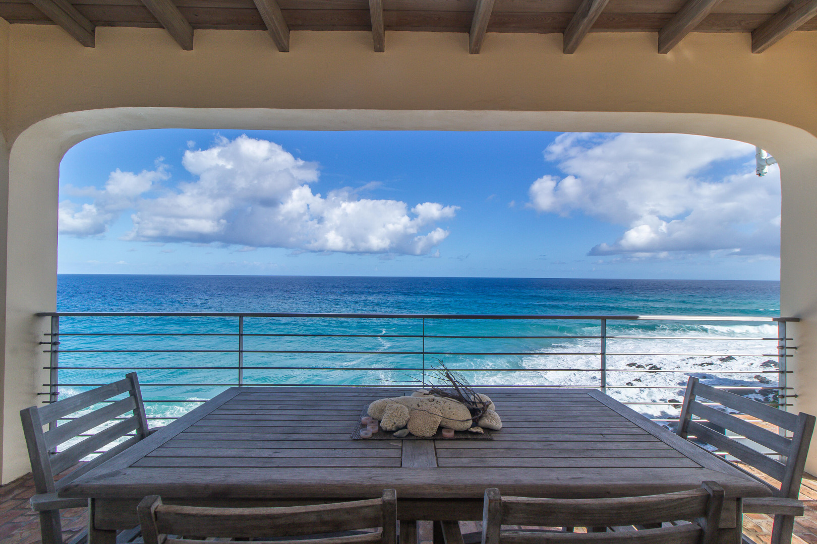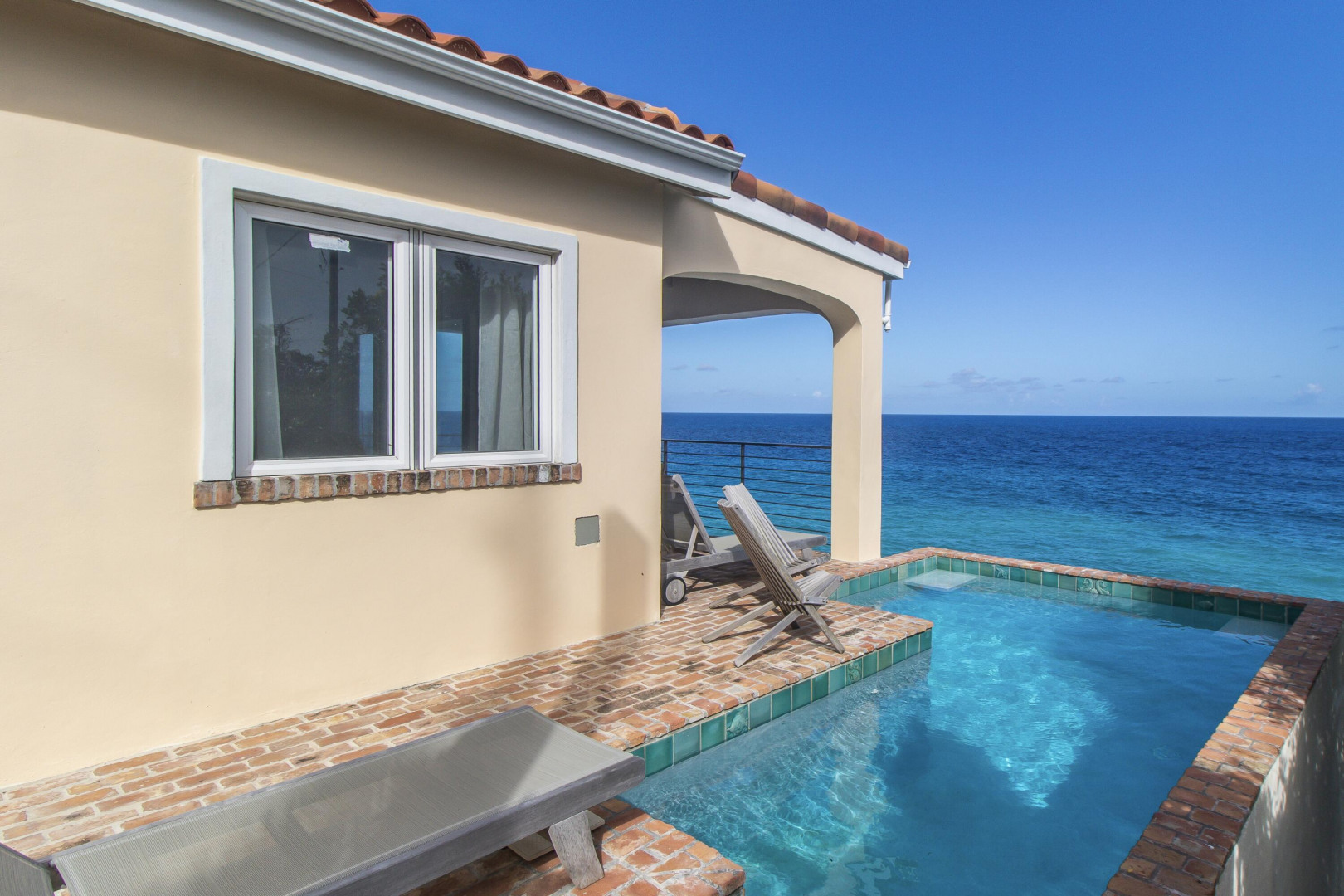 Oceans at Cane Bay is a luxurious two-bedroom two-bath pool villa privately situated on a dramatic bluff overlooking the Caribbean Sea. Just a few years old and already one of St. Croix's most successful vacation rentals, the villa features one of the most breathtaking seascapes in the Caribbean. The views extend over Cane Bay to unspoiled Hamm's Bluff and out to the twinkling lights of St. Thomas and St. John in the distance. The waves crashing on the rocks below provide a mesmerizing soundtrack to the peaceful existence that is to be found at the villa. This finely detailed neo-Mediterranean home was designed by The Virgin Islands' premier architectural firm.