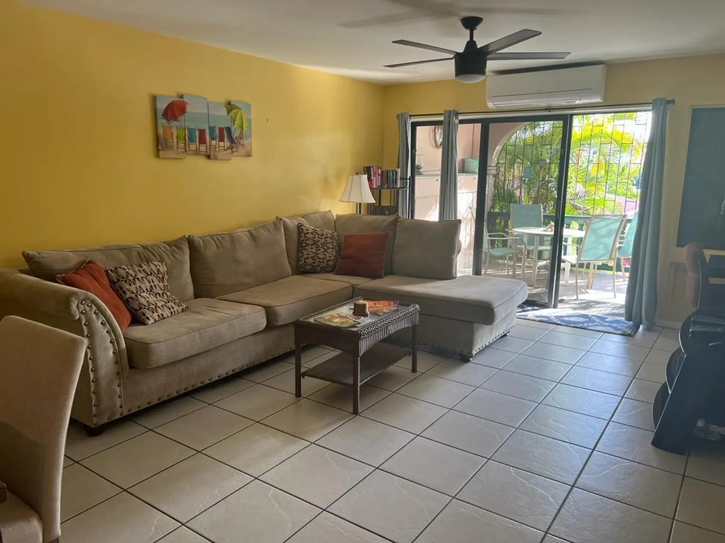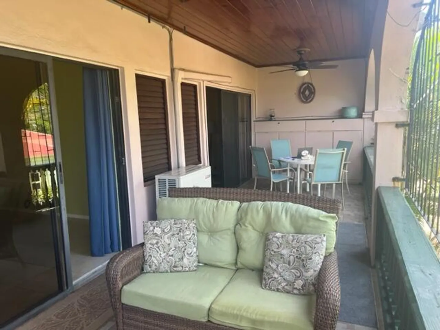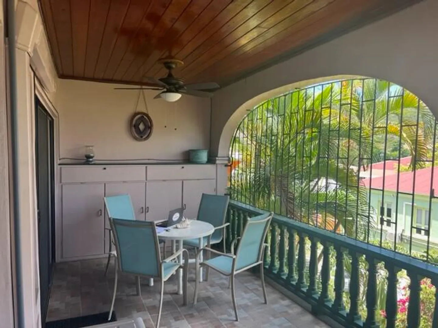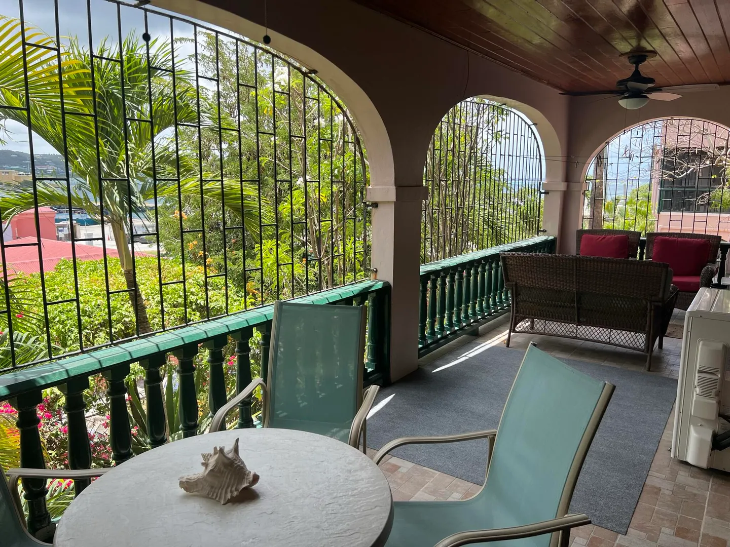 Excellent location in Schooner Bay, especially for vacationers, because one can get by without renting a car and driving in the left lane!! Easy walk to grocery shopping, restaurants, Beautiful Downtown Historic Christiansted and the cute little ferry to the beach at Protestant Cay! Ready to move in if you're looking for a full time residence or combination thereof...successful Airbnb if you'd like to keep that going !Spacious gallery offers fabulous outdoor living space; shaded by tropical greenery with beautiful sea and harbor views visible through the palm fronds!