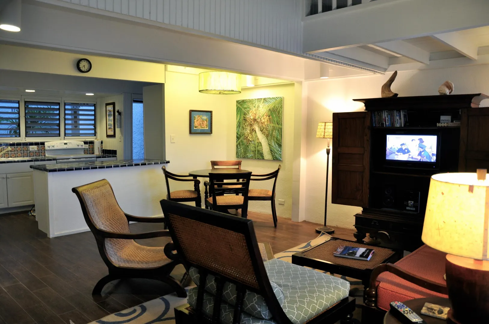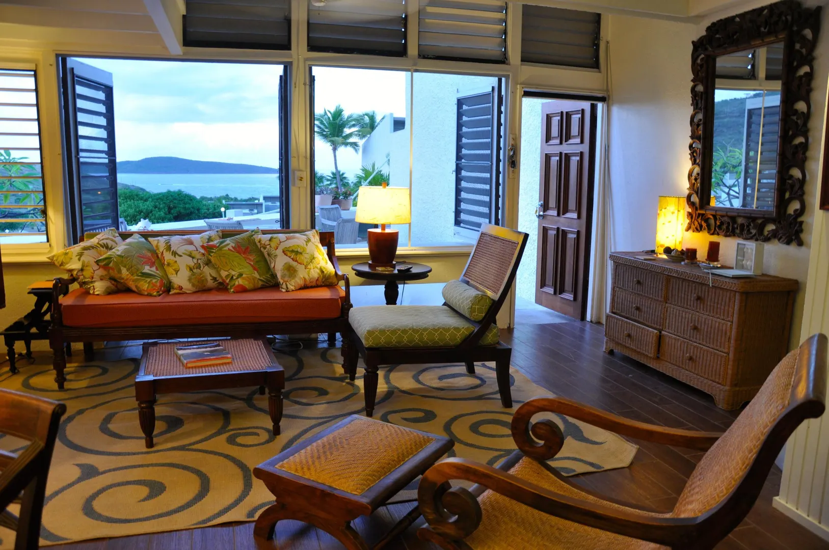Beautiful resort condo. Available now. All upgraded and updated. Located in a gated community on the east end of St. Croix. This lovely loft apartment features a large pool, big views, great breezes. 9 hole golf course with golf carts and clubhouse, two tennis courts, Duggan's Reef an Island favorite for seafood and ocean front dining. Sandy beach. Inside the condo is a king size bed, washer and dryer, flat screen tv. Loft bedroom that looks down into the living room, dining area and fully equipped kitchen. There is a back porch with a pass through window to the kitchen and a grill.The front porch has a retractable shade and great views of the ocean and buck island. Front windows that have screens and open as windows or swing out like doors for wide open unobstructed views. Upgraded linen