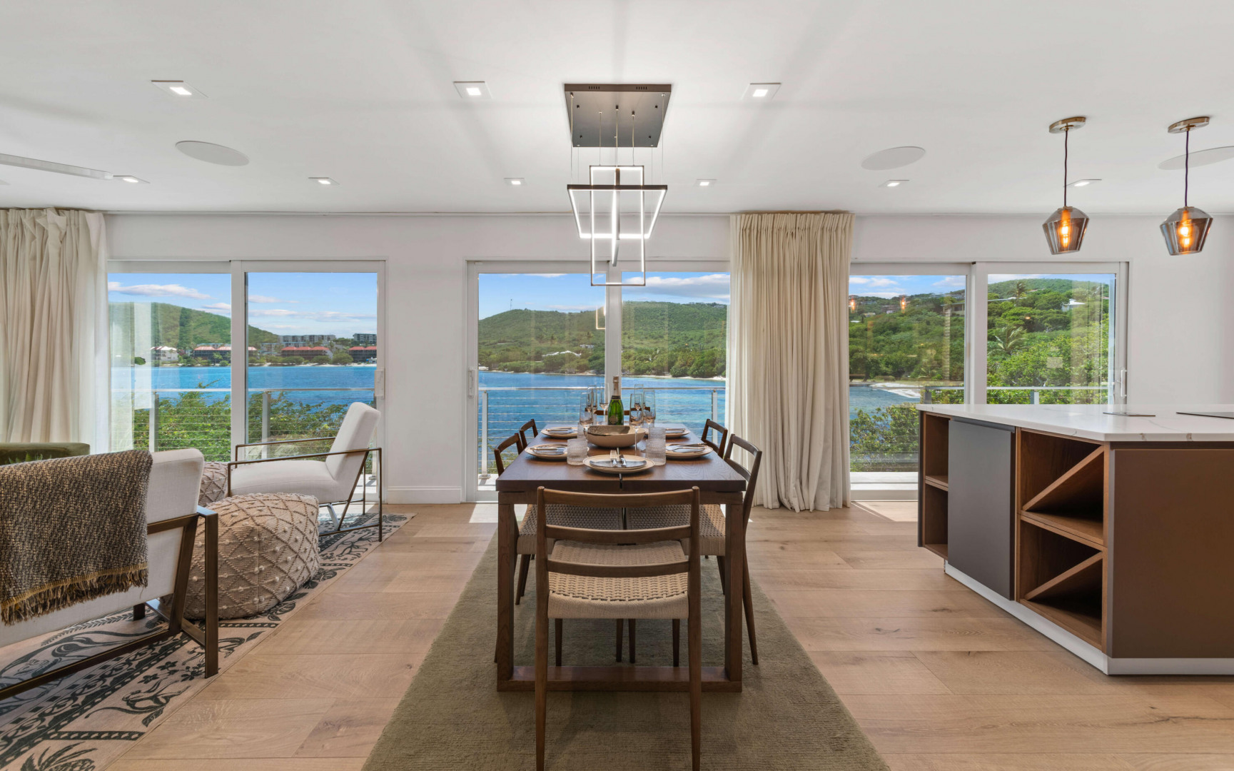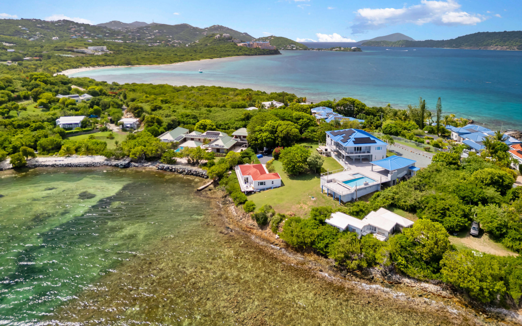 Welcome to Sunswept Cove, an iconic Caribbean retreat where luxury, history, and waterfront living converge. Once part of Fleetwood Mac's St. Thomas estate, this iconic three-bedroom sanctuary, known as the Fleetwood Mac Cottage, has been meticulously transformed into a sophisticated waterfront escape of timeless luxury and contemporary design.Located on a private 0.51-acre lot at prestigious Pelican Point, the property boasts 140 feet of direct water frontage with panoramic views spanning Pelican Beach, Sapphire Beach, St. John, and the surrounding Cays. Just steps from Pelican Beach and minutes to Sapphire Beach, this gated property offers seclusion while being moments from Red Hook's dining, shopping, and ferry to St. John and the BVI.Completely renovated from top to bottom, the interior features floor-to-ceiling glass doors that open wide to the sea, filling the home with light and coastal breezes. Each of the three bedrooms offers a king bed, modern finishes, and access to a terrace. The primary suite includes a spa-inspired bath with dual vanities, rainfall shower, and private laundry. The sleek gourmet kitchen is fitted with top-tier appliances including induction cooktop, oven, microwave, air fryer, dishwasher, and multiple coffee systems, perfect for easy entertaining.
