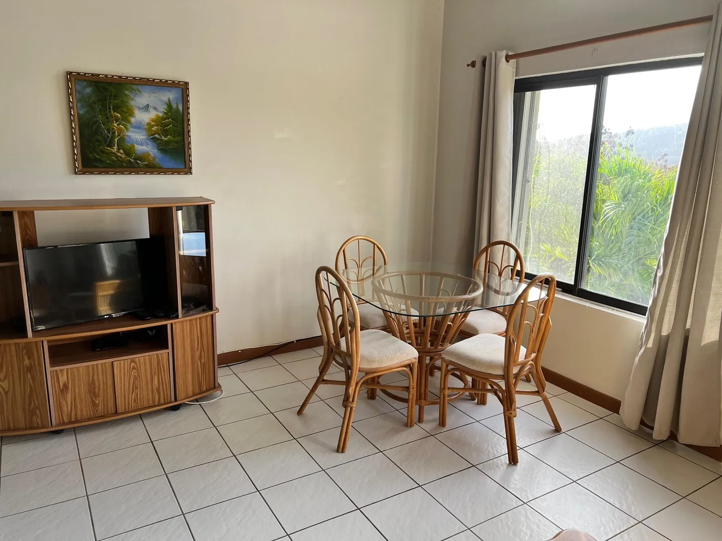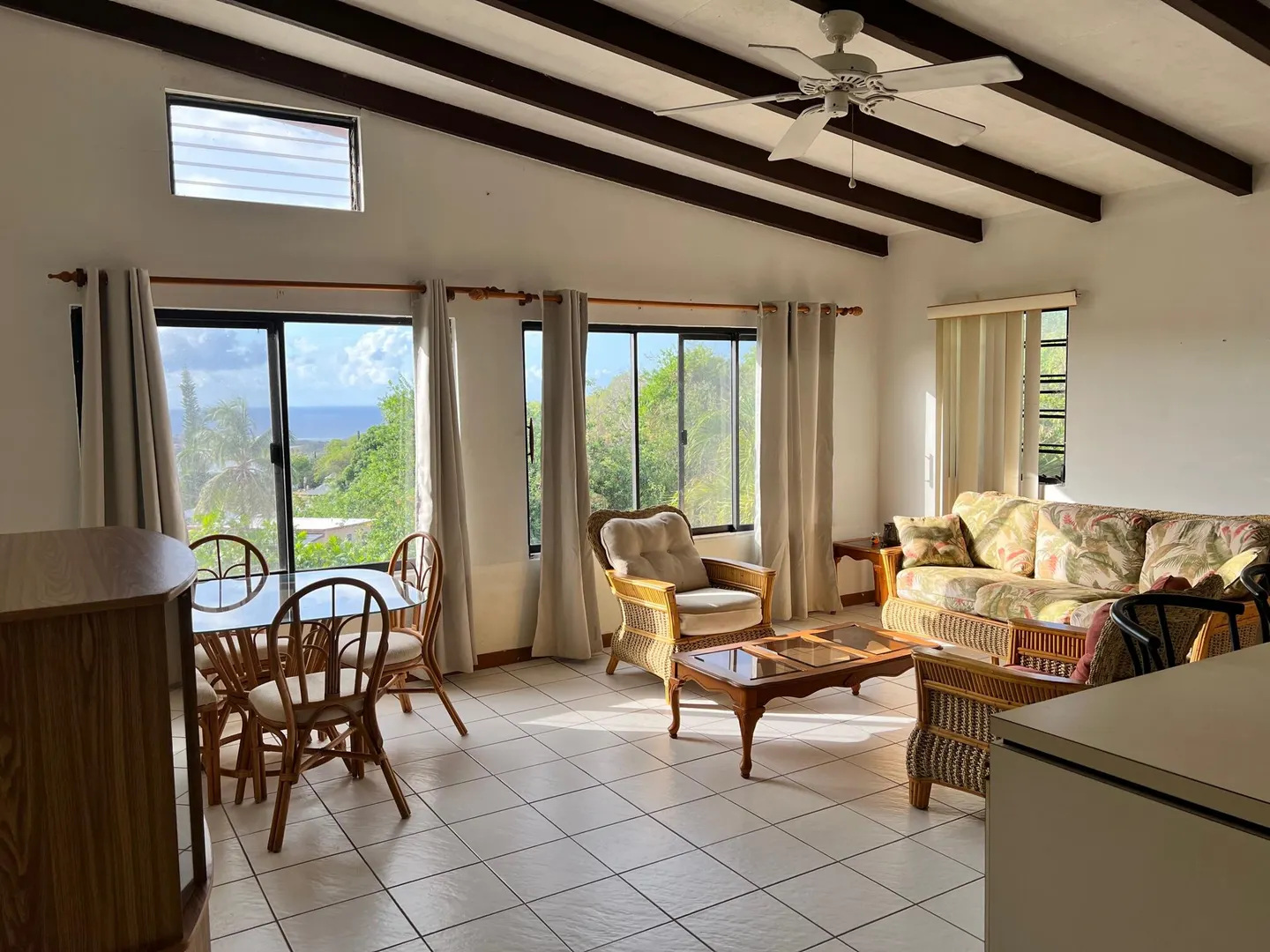 Quaint and peaceful mid-island upstairs apartment with stunning views! This apartment is spacious, airy, and has an open floor plan with everything you need to make it home. You will also enjoy plenty of closet and storage space, AC in your bedroom, and access to washer and dryer on premises. Dish and basic internet are included. Water is metered and billed separately, and electricity is also responsibility of tenant.