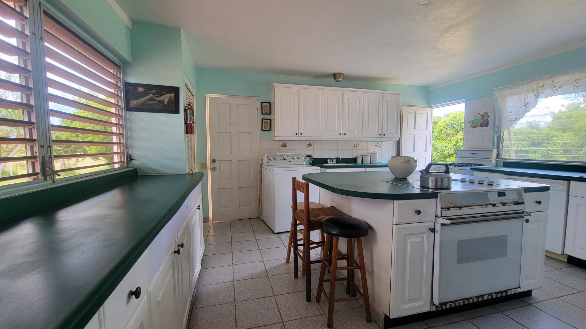 Spacious, well designed furnished 3 bed, 3.5 bath house with 1 bed, 1 bath in-law suite on a 2 acre lot with fruit trees in the beautiful Carlton neighborhood. You are welcomed to the home by marble floored breezeway with a fountain, a perfect place to spend the hours with loved ones or reading a book. The west side of the home has a large, grand family room with floor to ceiling windows and multiple double doors onto a HUGE patio facing the back yard with numerous mango trees. The kitchen has windows to the north and south allowing for cool breezes while cooking and lots of counterspace. Pantry and eat in breakfast bar. Laundry room is off the kitchen. There is also a storage closet between the kitchen and apartment. See supplement for full list of features! Property being sold AS IS.