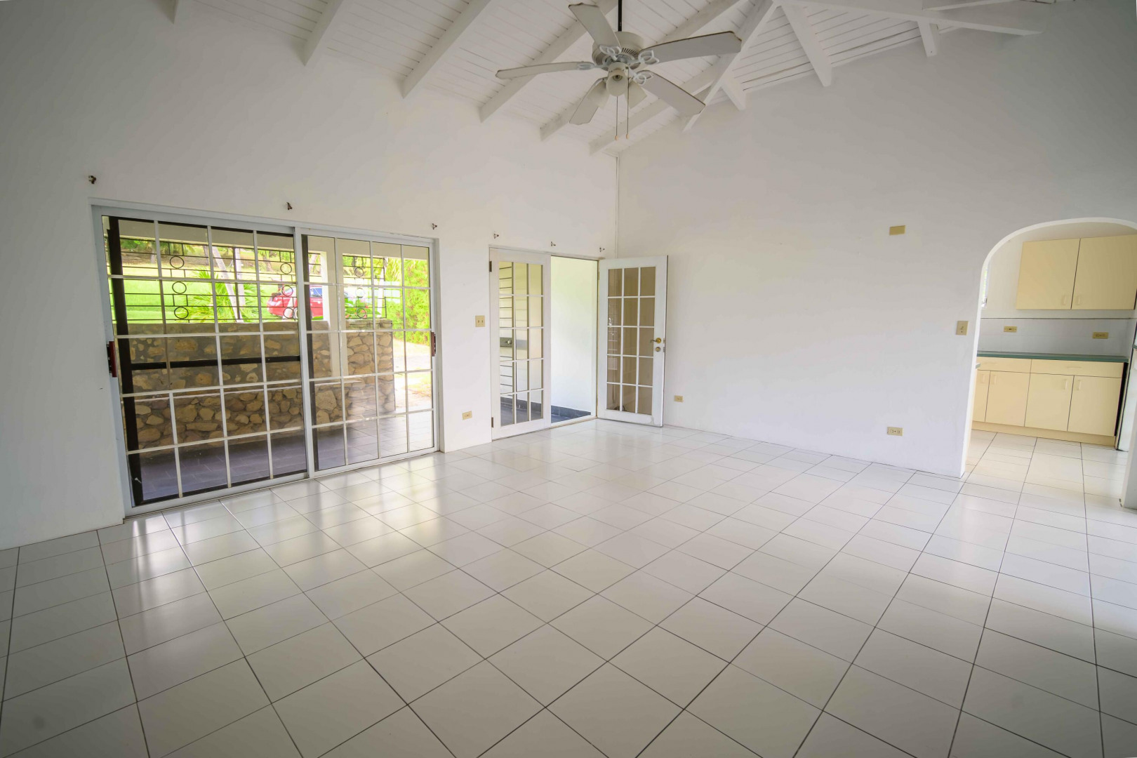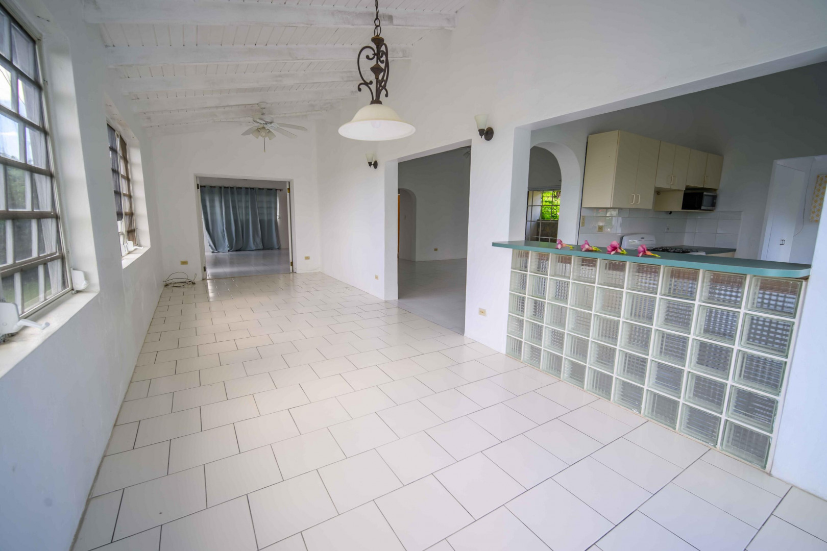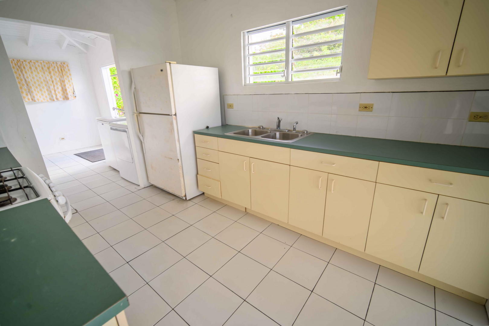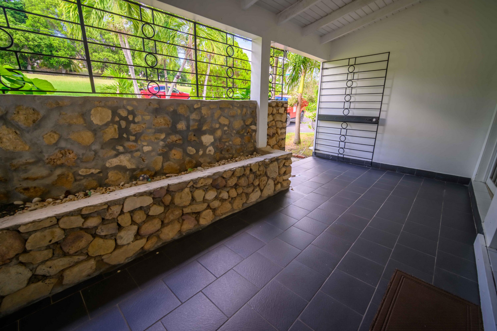This well-positioned two-bedroom, two-bathroom home offers ample living space. Enjoy a nice large kitchen, living and dining room. A very spacious laundry room with lots of storage space. The expansive outdoor covered stone patio/terrace creates a welcoming foyer, perfect for greeting guests or relaxation. There is available space on the ground floor that can easily be transformed into additional living space. If utilize, It will be perfect for generating rental income or accommodating extended family. Cistern freshly cleaned and recoated. Conveniently located near shopping, hospitals, banks, and schools, it sits in a lovely community with charming neighboring homes, with a small glimpse of the sea. A great blend of comfort and accessibility!