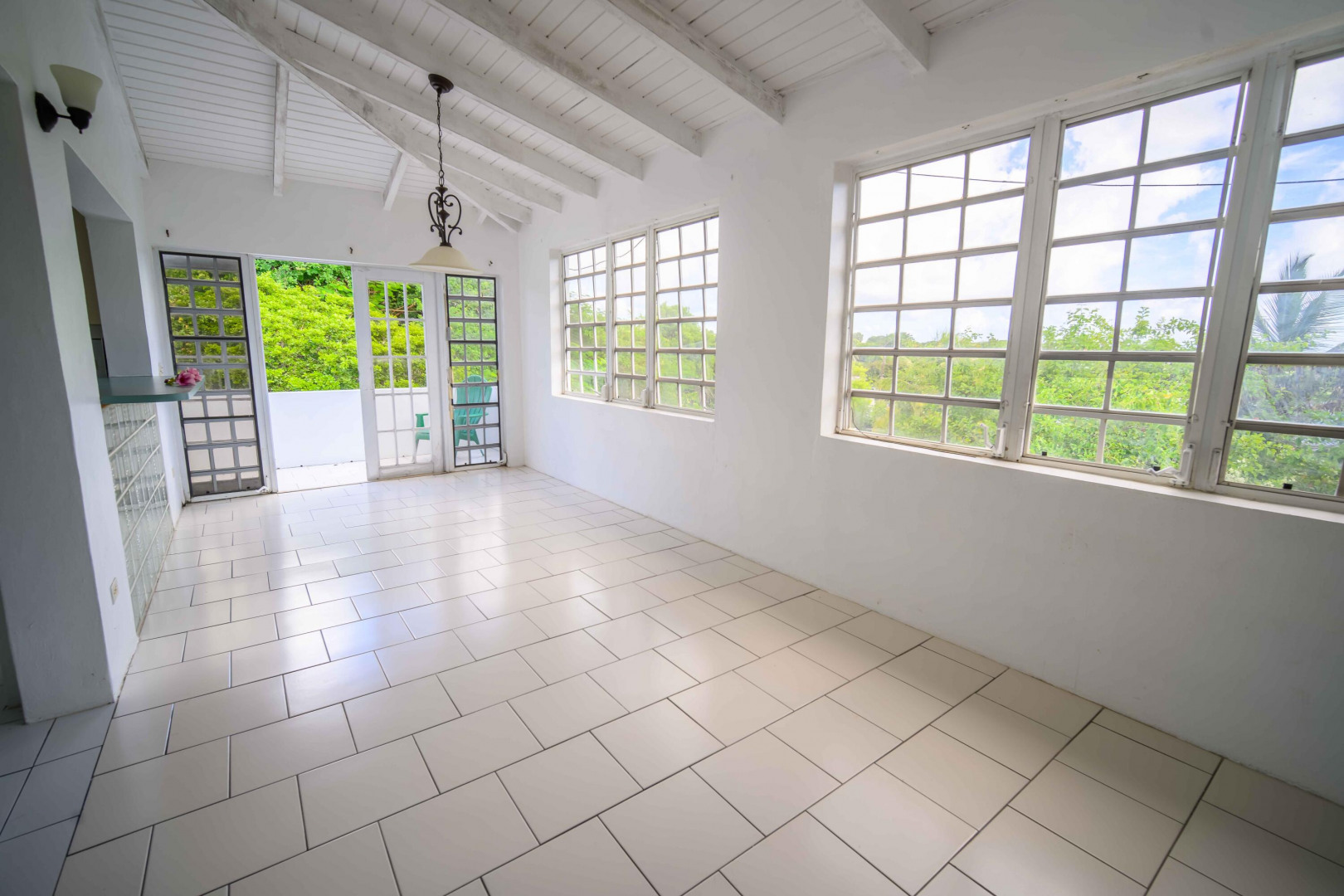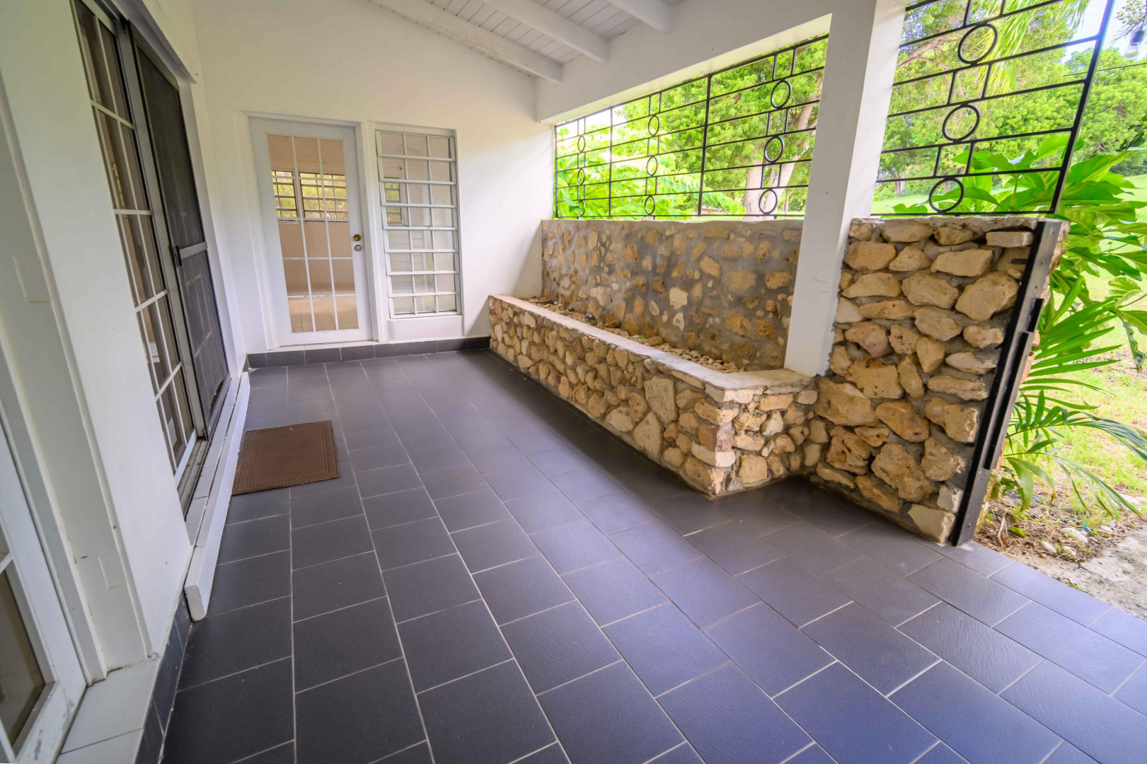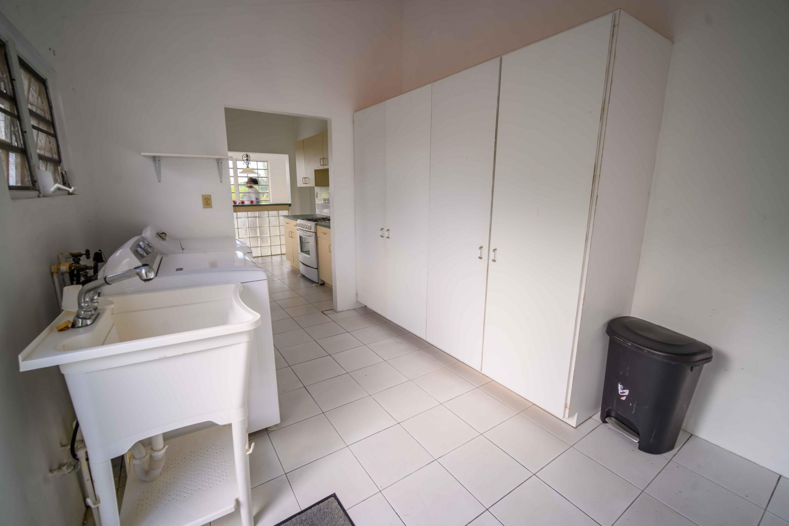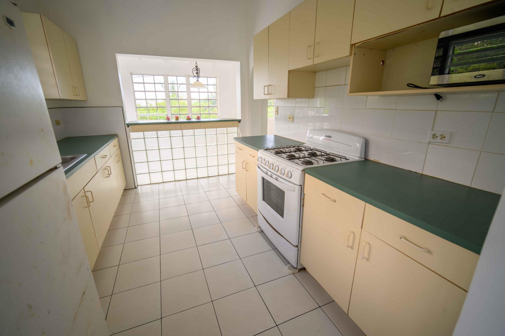 This well-positioned two-bedroom, two-bathroom home offers ample living space. Enjoy a nice large kitchen, living and dining room. A very spacious laundry room with lots of storage space. The expansive outdoor covered stone patio/terrace creates a welcoming foyer, perfect for greeting guests or relaxation. There is available space on the ground floor that can easily be transformed into additional living space. If utilize, It will be perfect for generating rental income or accommodating extended family. Cistern freshly cleaned and recoated. Conveniently located near shopping, hospitals, banks, and schools, it sits in a lovely community with charming neighboring homes, with a small glimpse of the sea. A great blend of comfort and accessibility!