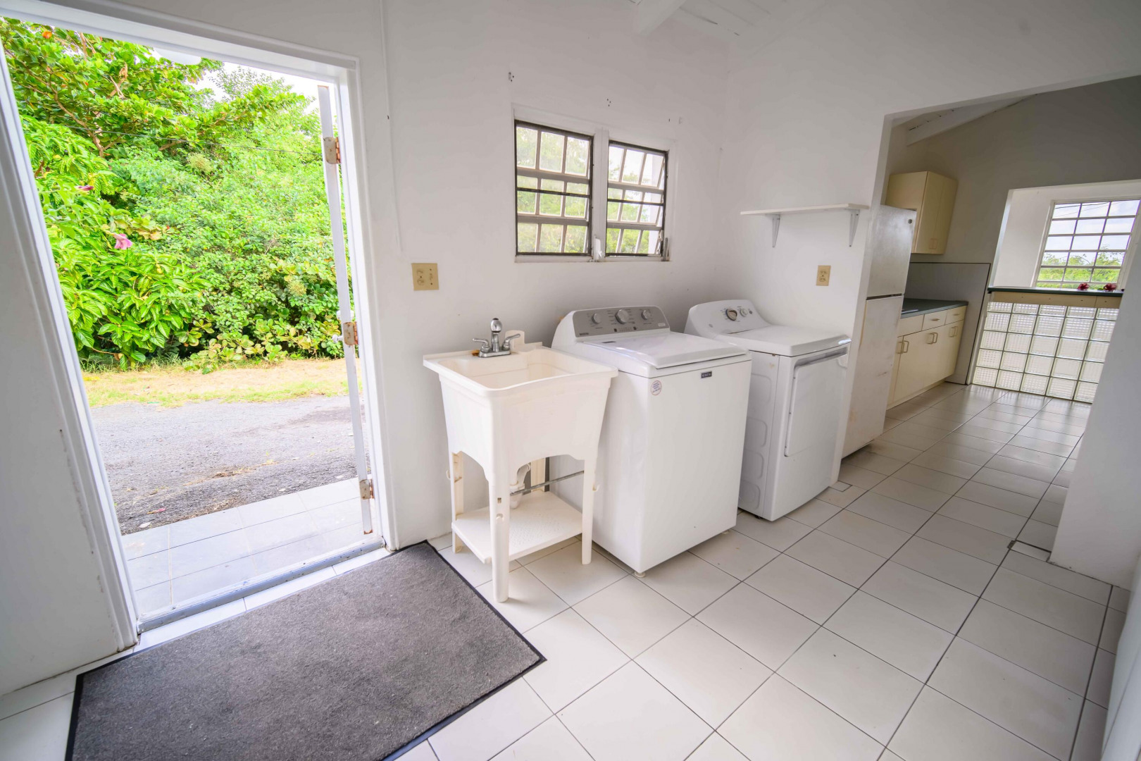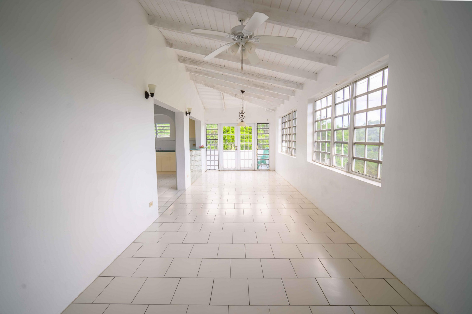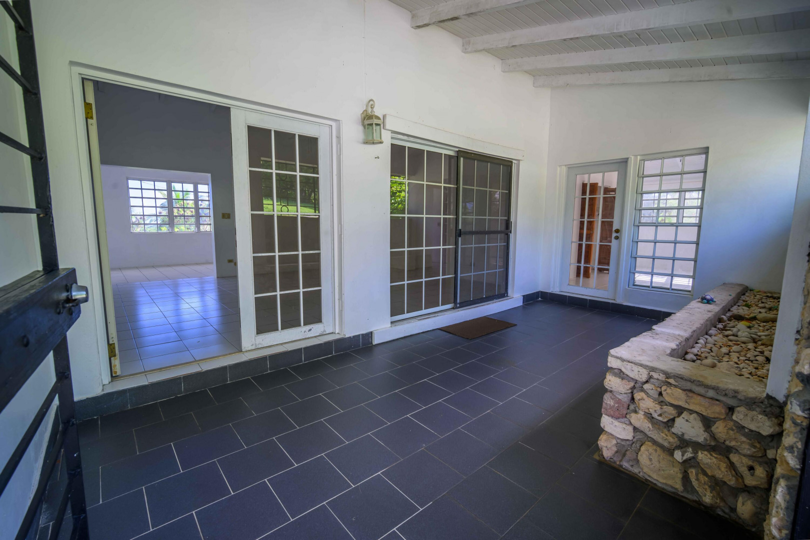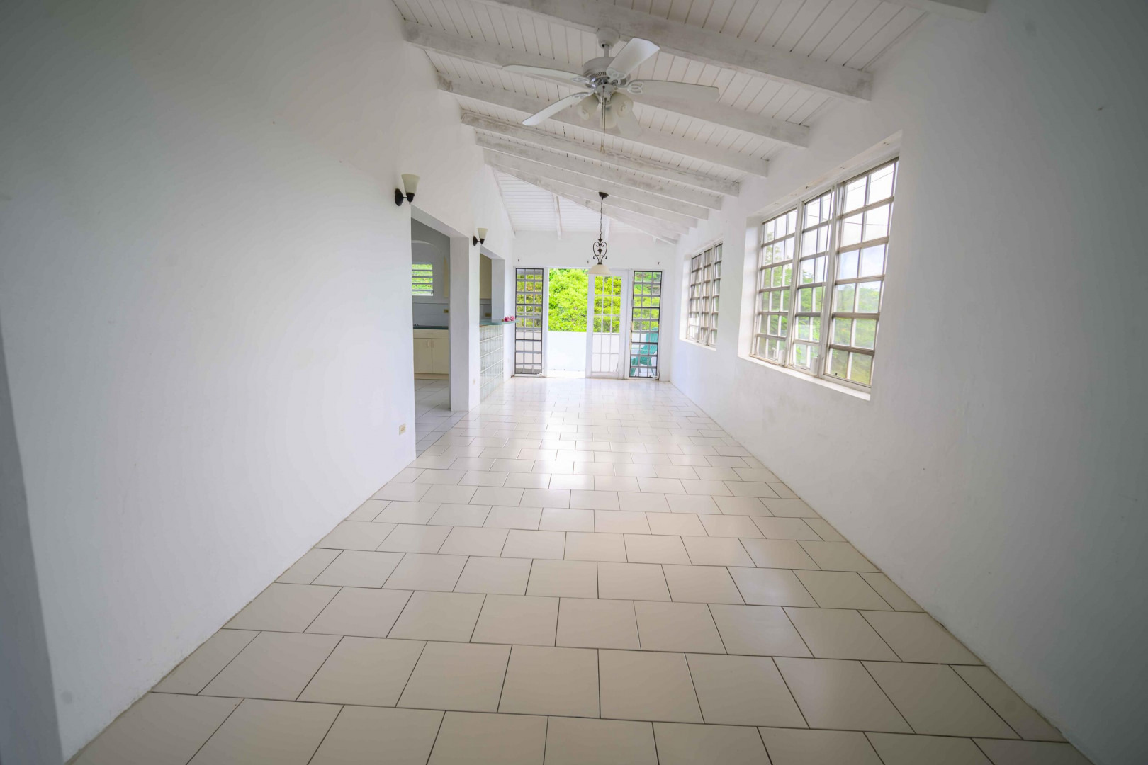 This well-positioned two-bedroom, two-bathroom home offers ample living space. Enjoy a nice large kitchen, living and dining room. A very spacious laundry room with lots of storage space. The expansive outdoor covered stone patio/terrace creates a welcoming foyer, perfect for greeting guests or relaxation. There is available space on the ground floor that can easily be transformed into additional living space. If utilize, It will be perfect for generating rental income or accommodating extended family. Cistern freshly cleaned and recoated. Conveniently located near shopping, hospitals, banks, and schools, it sits in a lovely community with charming neighboring homes, with a small glimpse of the sea. A great blend of comfort and accessibility!