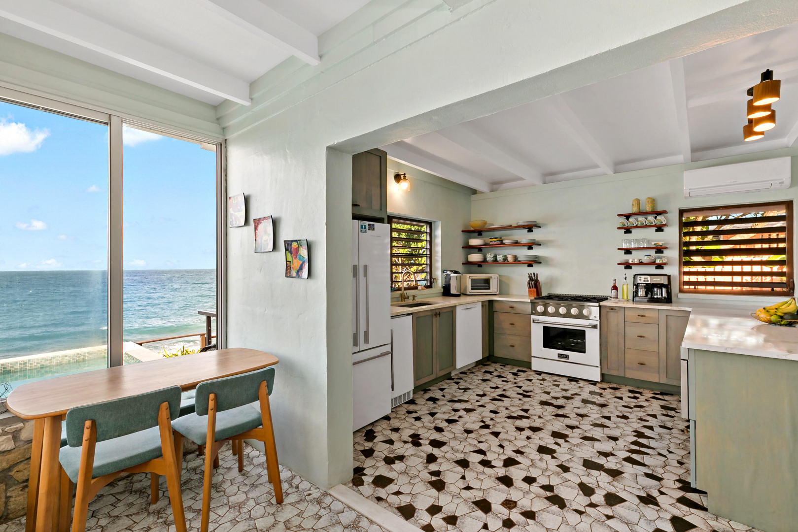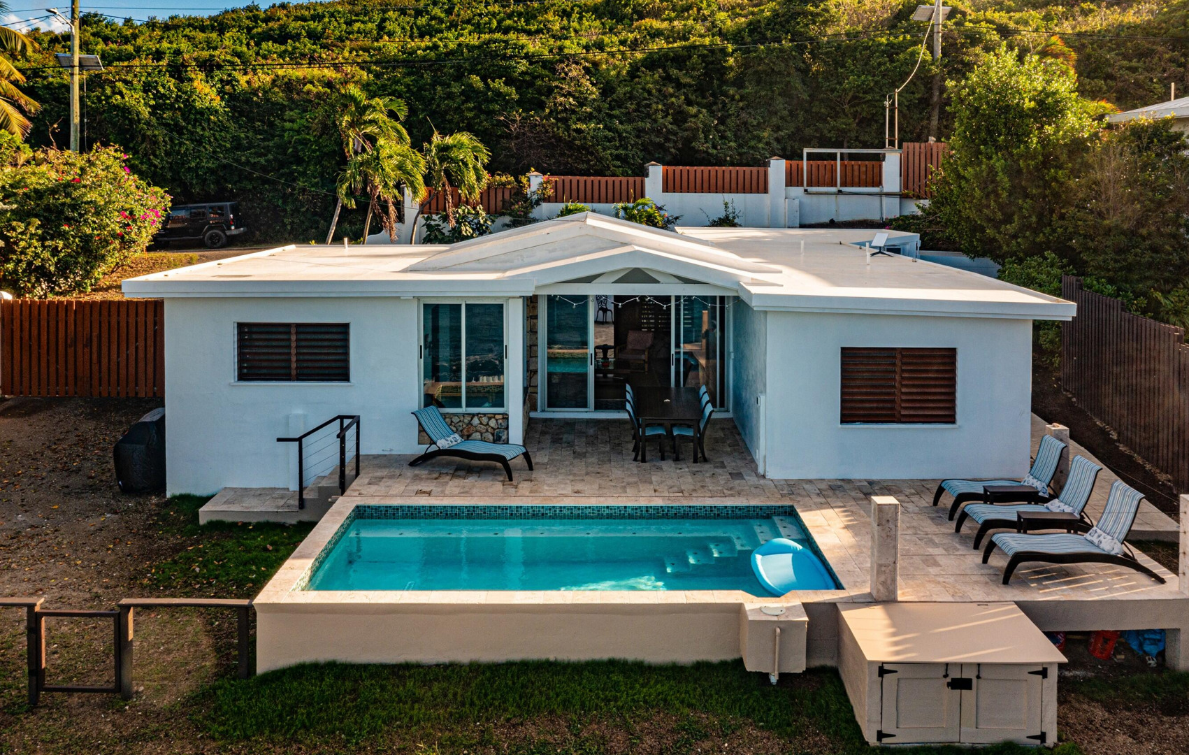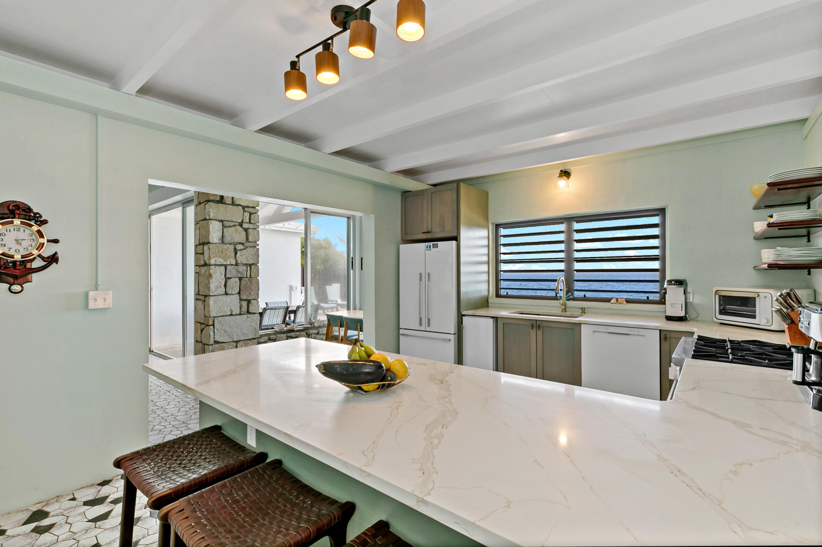 Escape to PARADISE at this CARIBBEAN CLASSIC, TURN-KEY, FULLY FURNISHED SEAFRONT retreat in the coveted North Shore/Cane Bay area. Potential rental income $120,000+ Imagine waking up to the INCREDIBLE sounds of the WAVES and the breathtaking TURQUOISE HUES of the SEA. Indulge in a PLETHORA of OUTDOOR AREAS designed for ultimate relaxation. Lounge POOLSIDE; gaze out to the sister islands while sipping your morning coffee on the LOWER observation DECK; watch hummingbirds flutter in the OPEN COURTYARD or spot whales during their migrating season. Find shade at 'PARADISE LANDING' and luxuriate on your semi-private BEACH with TIDAL POOLS. The property also includes permitted plans for a DETACHED GARAGE.Completely transformed! This recently RENOVATED, EXPANDED, and UPDATED property offers a rare opportunity to own a meticulously maintained island retreat. Enjoy peace of mind with NEW jalousie windows, a NEWLY re-coated cistern, and a NEWLY re-coated roof. A NEW 10KW, propane Generac generator ensures uninterrupted power, while 4 split A/C units provide optimal climate control. Step outside to discover a custom 10x20 SALTWATER POOL with beautiful coral decking, and convenient NEW steps leading down to your semi-private beach. The property also includes permitted plans for a GARAGE. ZONED R-3, this residence offers development potential. The kitchen is a chef's dream, featuring custom, open, MAHOGANY shelving, breathtaking sea views, custom cabinets, and new APPLIANCES including a stand-alone, UNDER-CABINET ICE-MAKER & MICROWAVE. Benefit from ALL NEW PLUMBING & WIRING throughout, including a new electric meter & panel. This property is a true standout, offering luxury, convenience, and incredible value. *seller is a USVI licensed Realtor