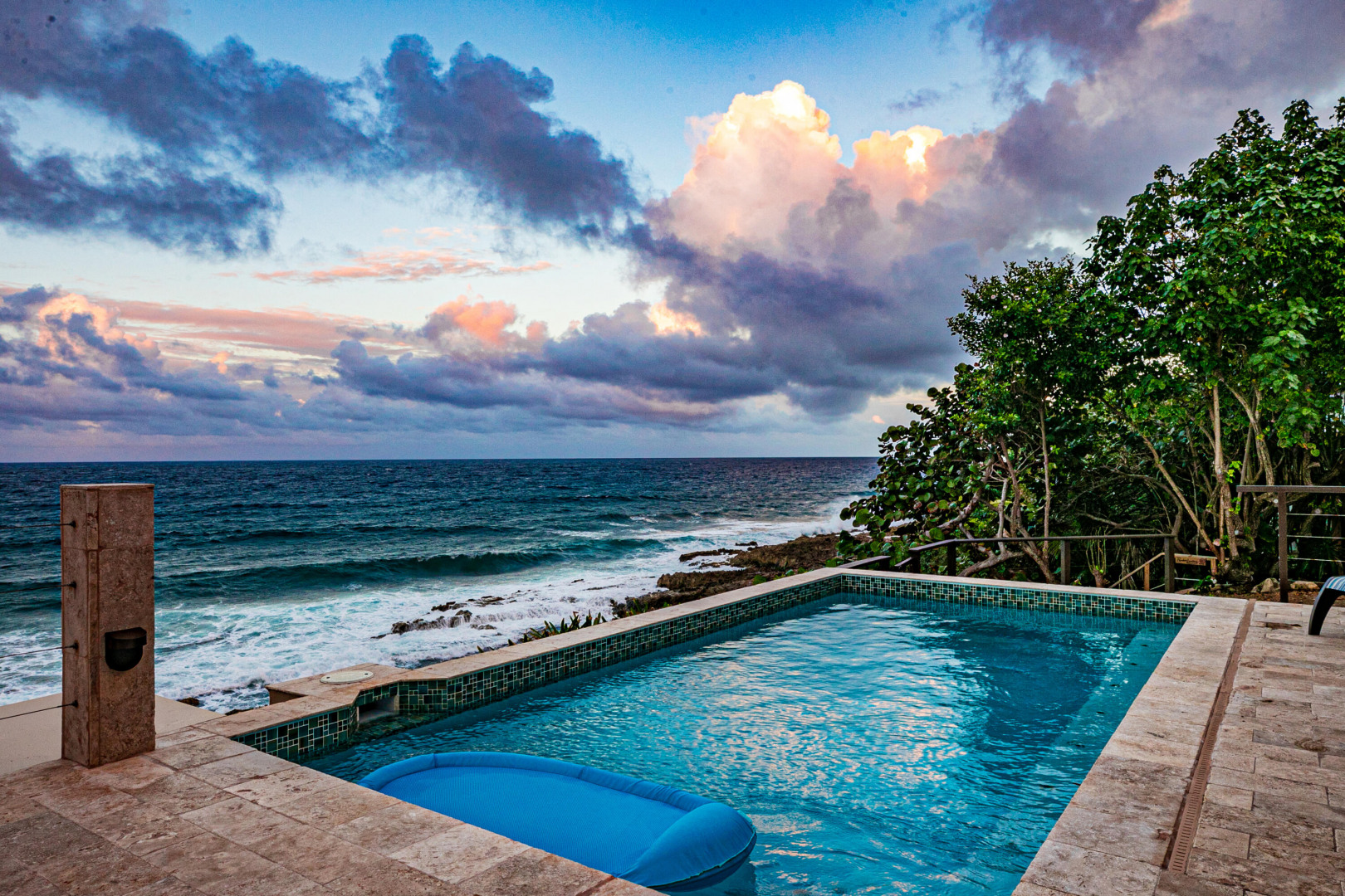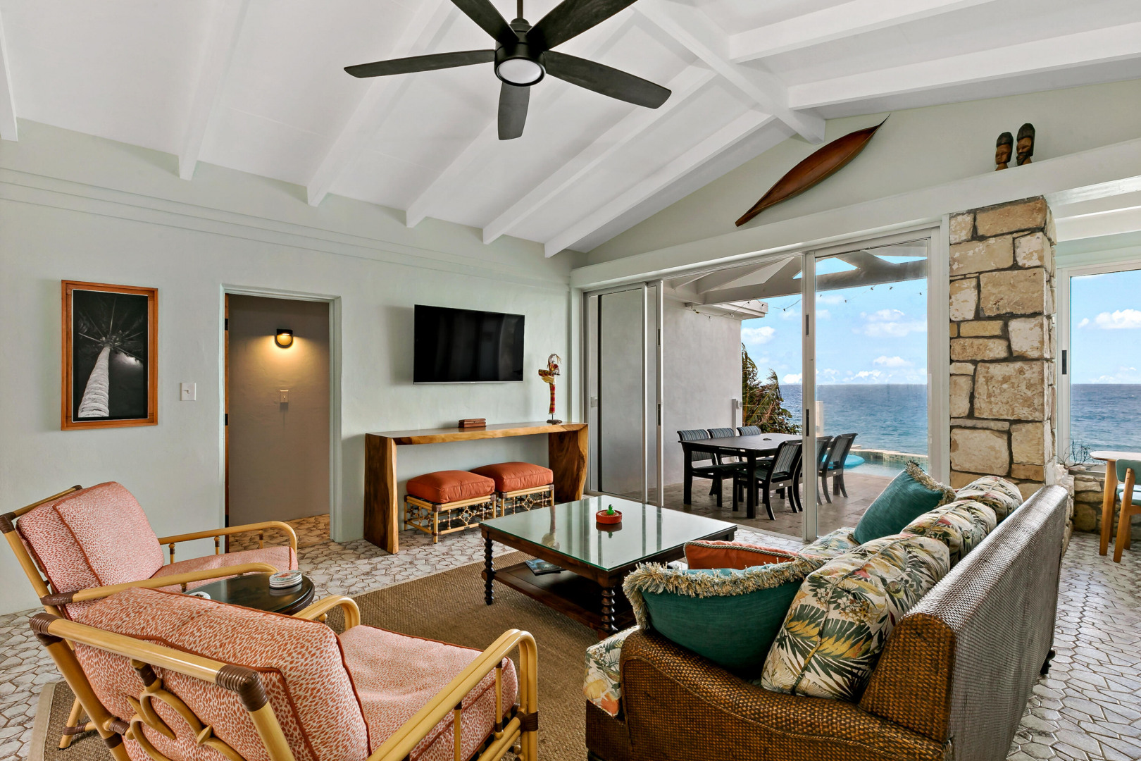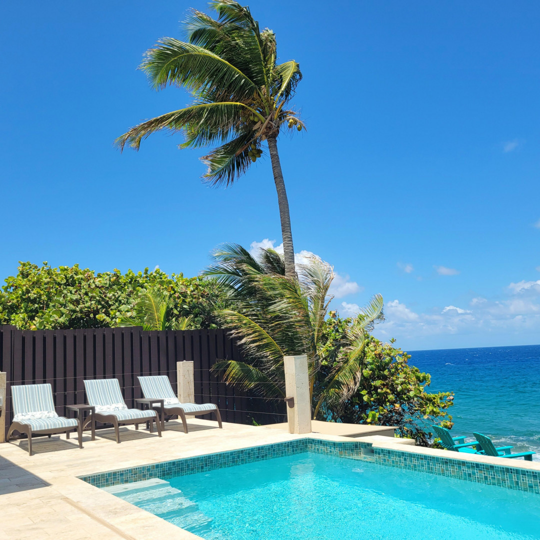 Escape to PARADISE at this CARIBBEAN CLASSIC, TURN-KEY, FULLY FURNISHED SEAFRONT retreat in the coveted North Shore/Cane Bay area. Potential rental income $120,000+ Imagine waking up to the INCREDIBLE sounds of the WAVES and the breathtaking TURQUOISE HUES of the SEA. Indulge in a PLETHORA of OUTDOOR AREAS designed for ultimate relaxation. Lounge POOLSIDE; gaze out to the sister islands while sipping your morning coffee on the LOWER observation DECK; watch hummingbirds flutter in the OPEN COURTYARD or spot whales during their migrating season. Find shade at 'PARADISE LANDING' and luxuriate on your semi-private BEACH with TIDAL POOLS. The property also includes permitted plans for a DETACHED GARAGE.Completely transformed! This recently RENOVATED, EXPANDED, and UPDATED property offers a rare opportunity to own a meticulously maintained island retreat. Enjoy peace of mind with NEW jalousie windows, a NEWLY re-coated cistern, and a NEWLY re-coated roof. A NEW 10KW, propane Generac generator ensures uninterrupted power, while 4 split A/C units provide optimal climate control. Step outside to discover a custom 10x20 SALTWATER POOL with beautiful coral decking, and convenient NEW steps leading down to your semi-private beach. The property also includes permitted plans for a GARAGE. ZONED R-3, this residence offers development potential. The kitchen is a chef's dream, featuring custom, open, MAHOGANY shelving, breathtaking sea views, custom cabinets, and new APPLIANCES including a stand-alone, UNDER-CABINET ICE-MAKER & MICROWAVE. Benefit from ALL NEW PLUMBING & WIRING throughout, including a new electric meter & panel. This property is a true standout, offering luxury, convenience, and incredible value. *seller is a USVI licensed Realtor