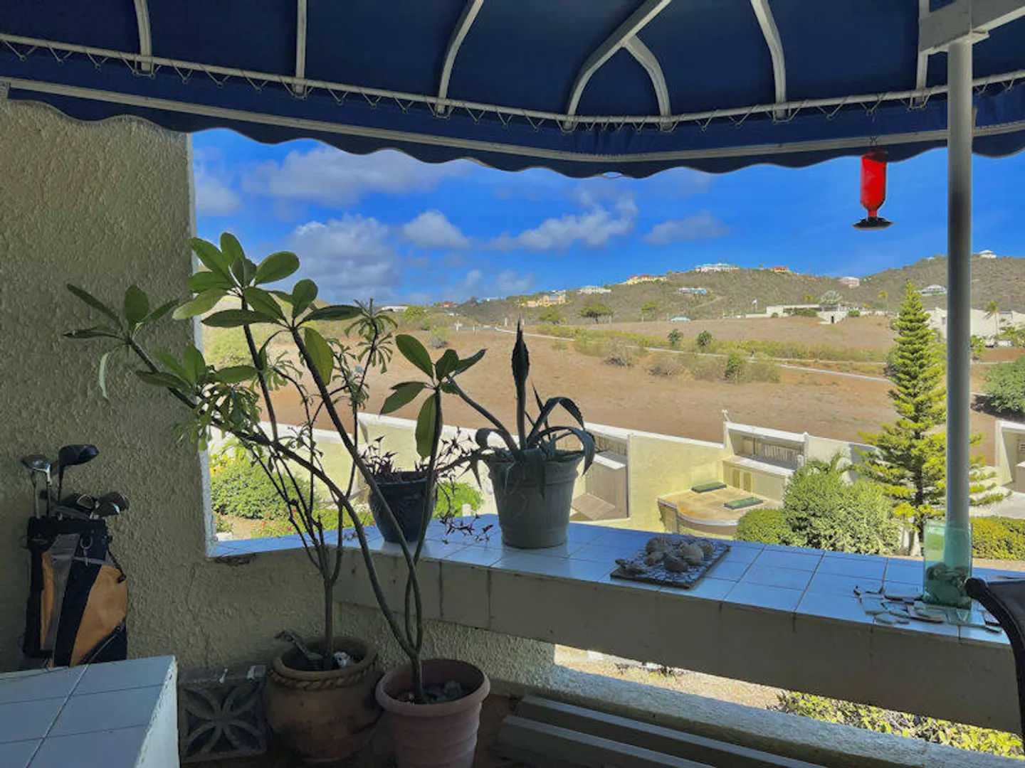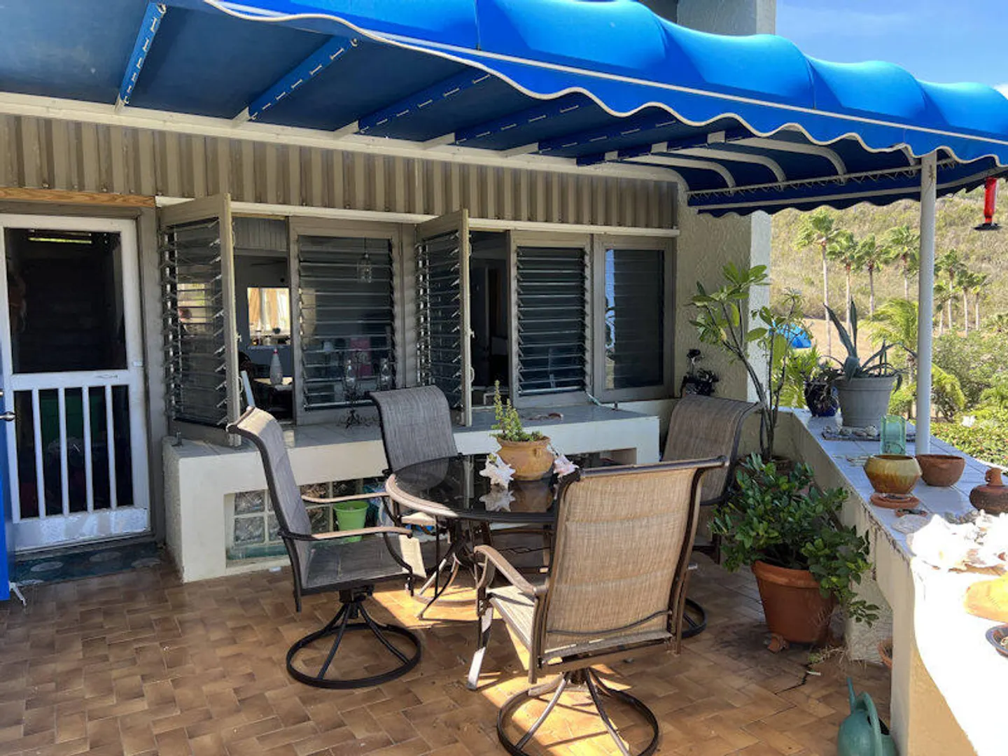 This 1 bed/1.5 bath condo in the sought-after community of The Reef has it all--a spectacular view of Buck Island, unparalleled privacy for a condominium, and two delightful outdoor areas (large patio in front and smaller atrium in back). The inside is a blank canvas, a diamond in the rough and an opportunity to create your perfect space. No amount of renovating can give you what this unit already has--the view, the privacy and the outdoor living area. The rest depends on your imagination and your vision.Upgrades include a full size stack W/D, split A/C, new refrigerator,R/O cold water filter and on-demand water heater.The Reef is gated with a pool,9 hole golf course and Pro Shop, tennis/pickle ball and disc golf.Just a short walk to Teague's Bay beach and Duggan's Reef restaurant.