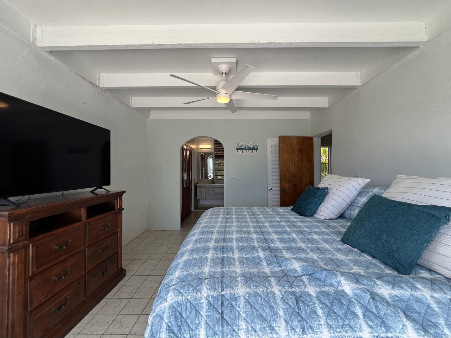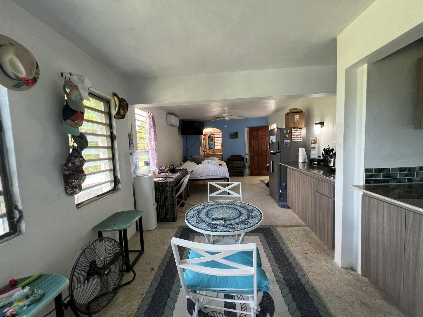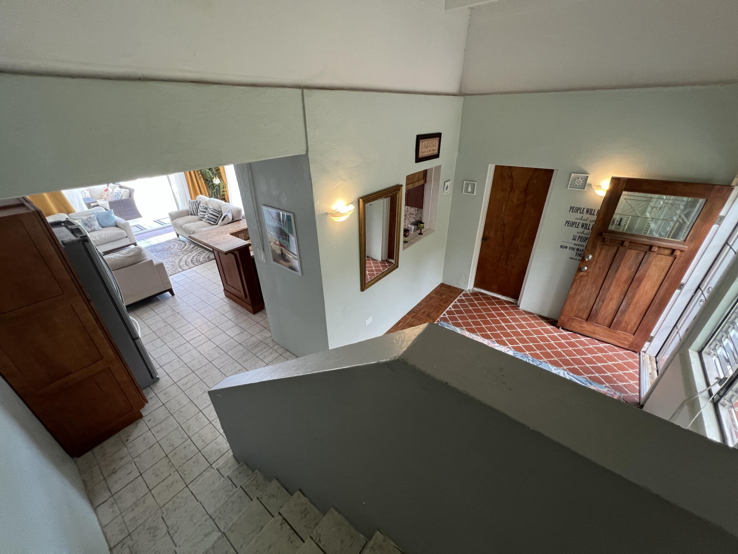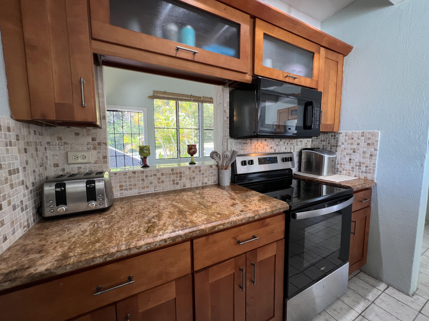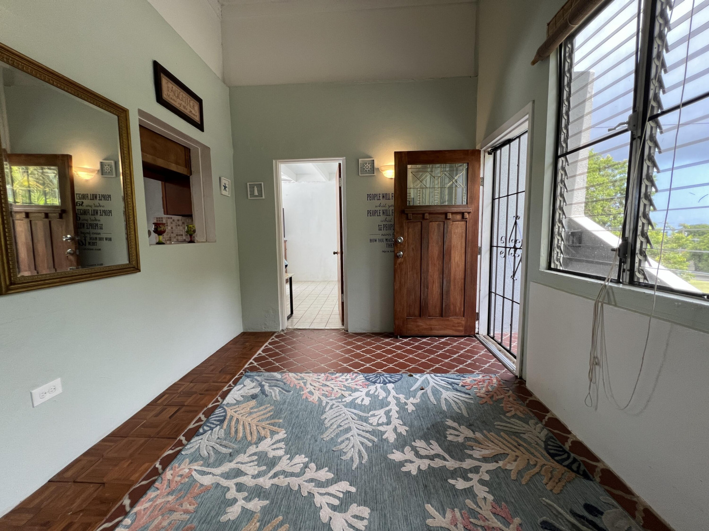 Tucked away at the end of a quiet lane in a friendly mid-island neighborhood, this multi-story home offers laid-back island living with gorgeous views of both the north and south shores. The main home features two spacious en suite bedrooms, an open kitchen that flows right into the living area, and a breezy covered gallery with tile flooring. Downstairs, you'll find a separate efficiency apartment, great for guests or rental income. There's also a workshop for your hobbies and a fenced-in backyard, ideal for kids or pets to play safely. A private, versatile home in a convenient location!