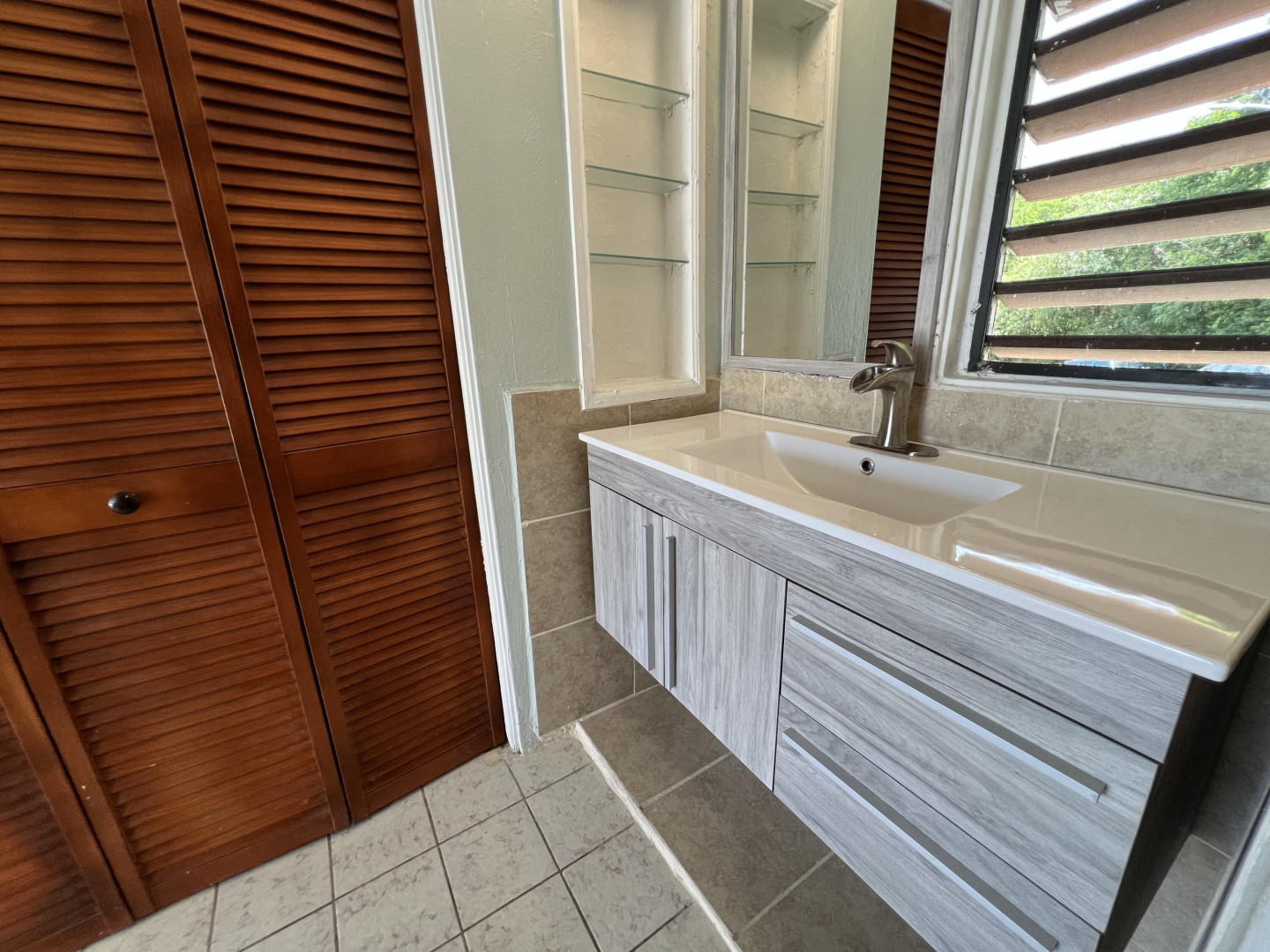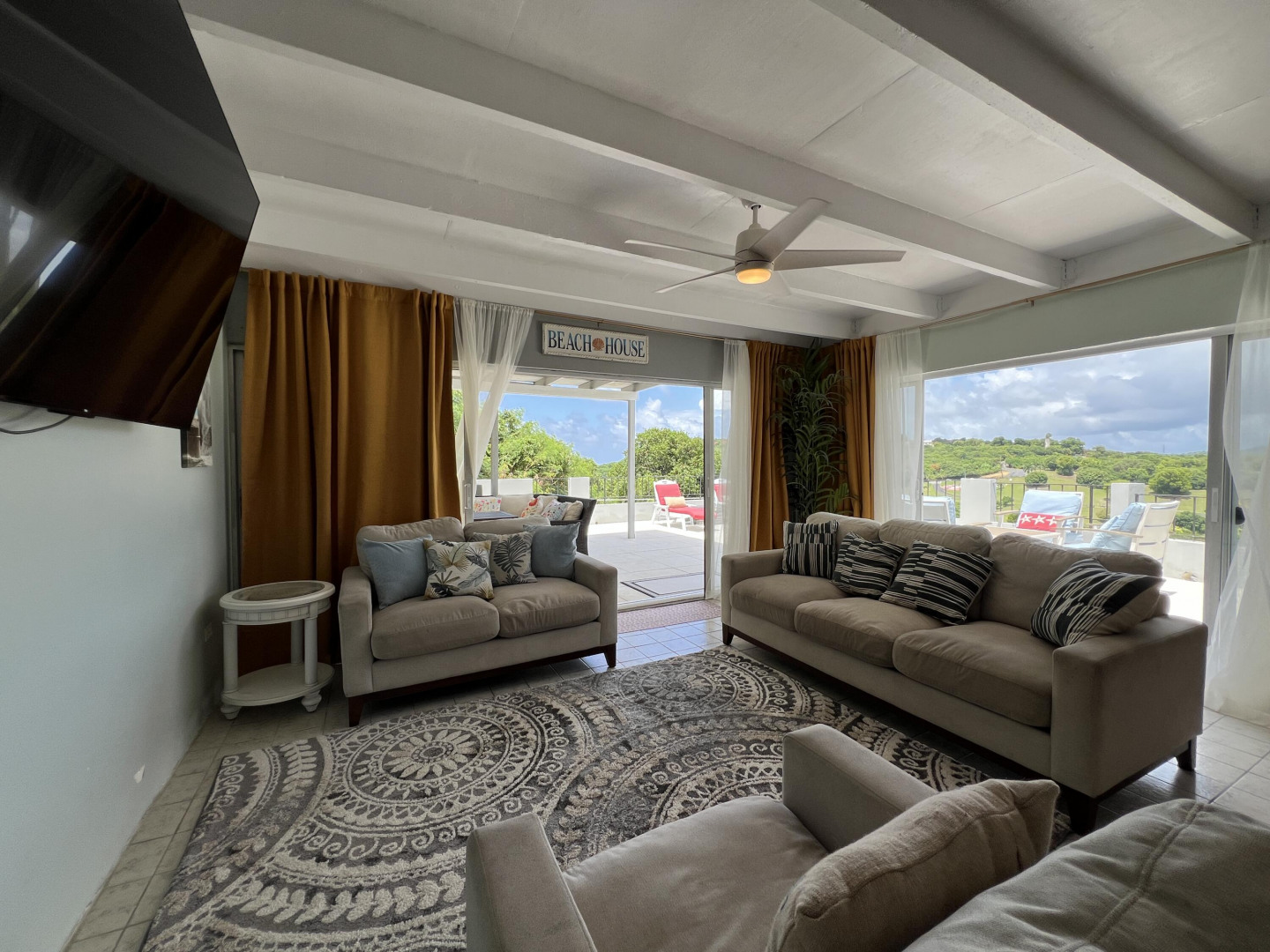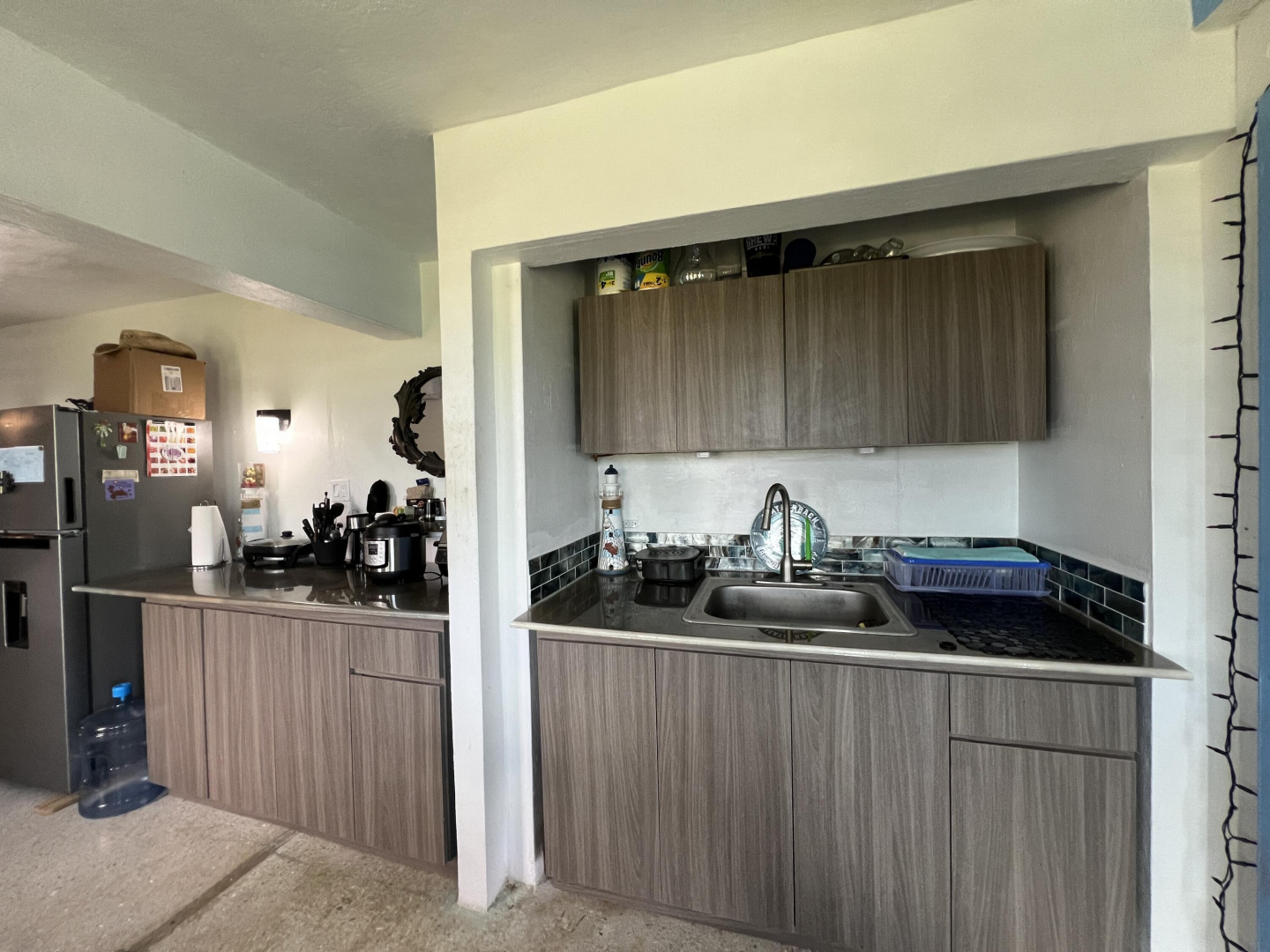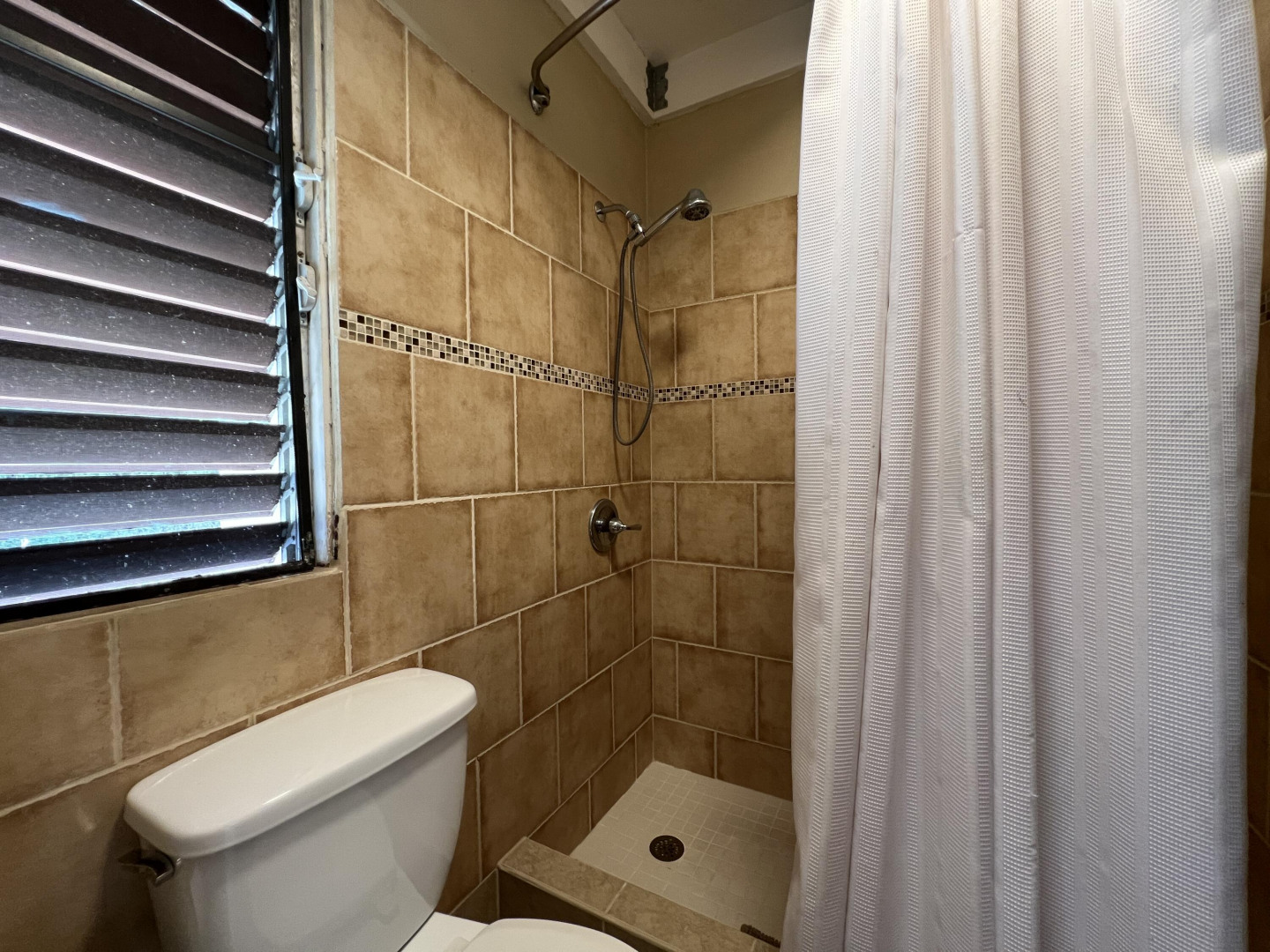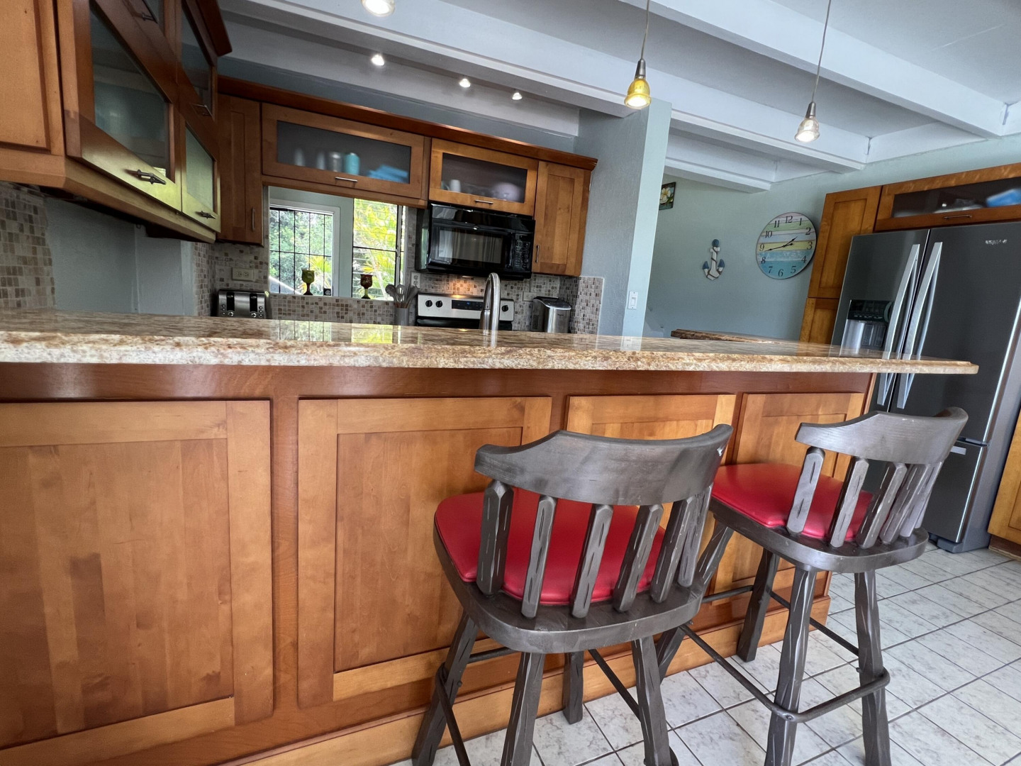Tucked away at the end of a quiet lane in a friendly mid-island neighborhood, this multi-story home offers laid-back island living with gorgeous views of both the north and south shores. The main home features two spacious en suite bedrooms, an open kitchen that flows right into the living area, and a breezy covered gallery with tile flooring. Downstairs, you'll find a separate efficiency apartment, great for guests or rental income. There's also a workshop for your hobbies and a fenced-in backyard, ideal for kids or pets to play safely. A private, versatile home in a convenient location!