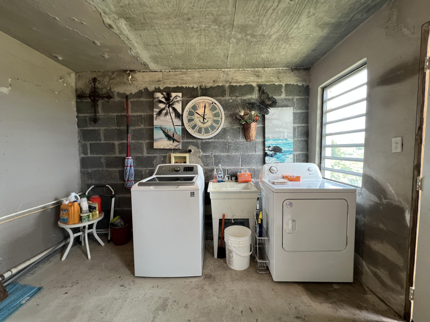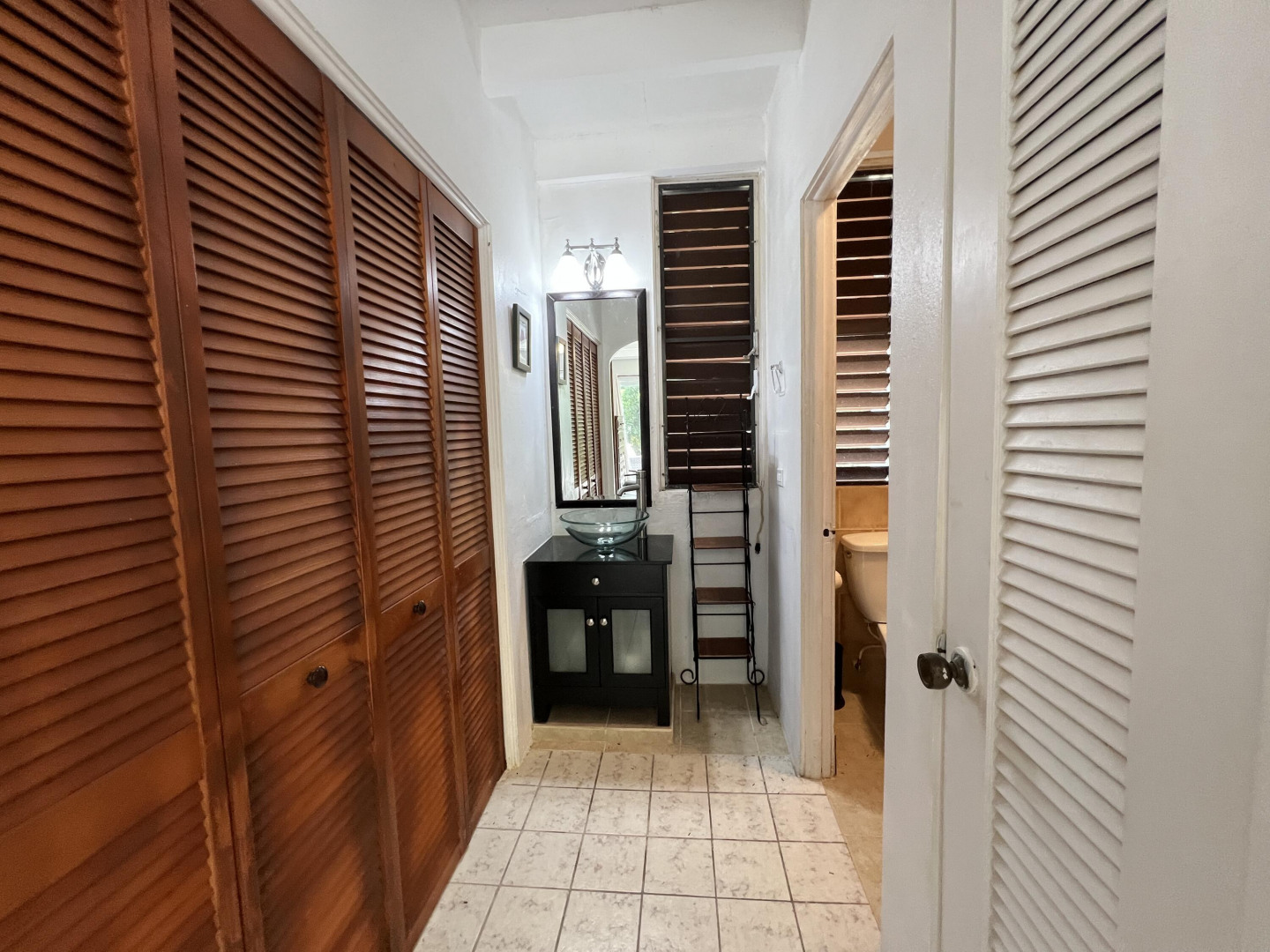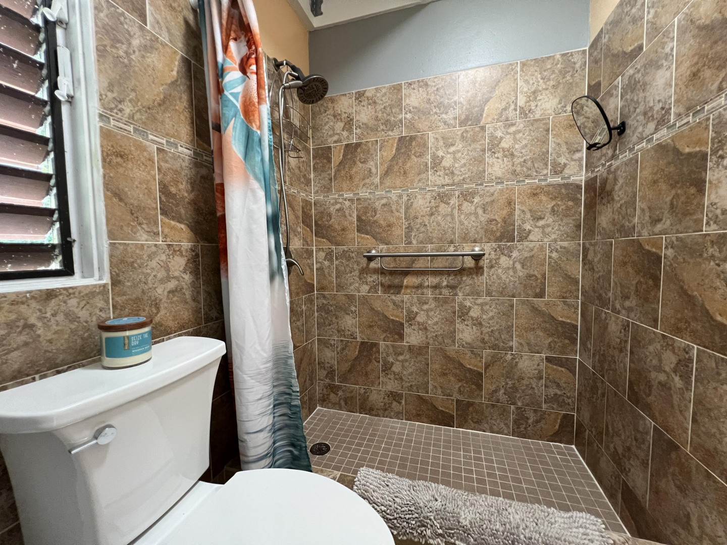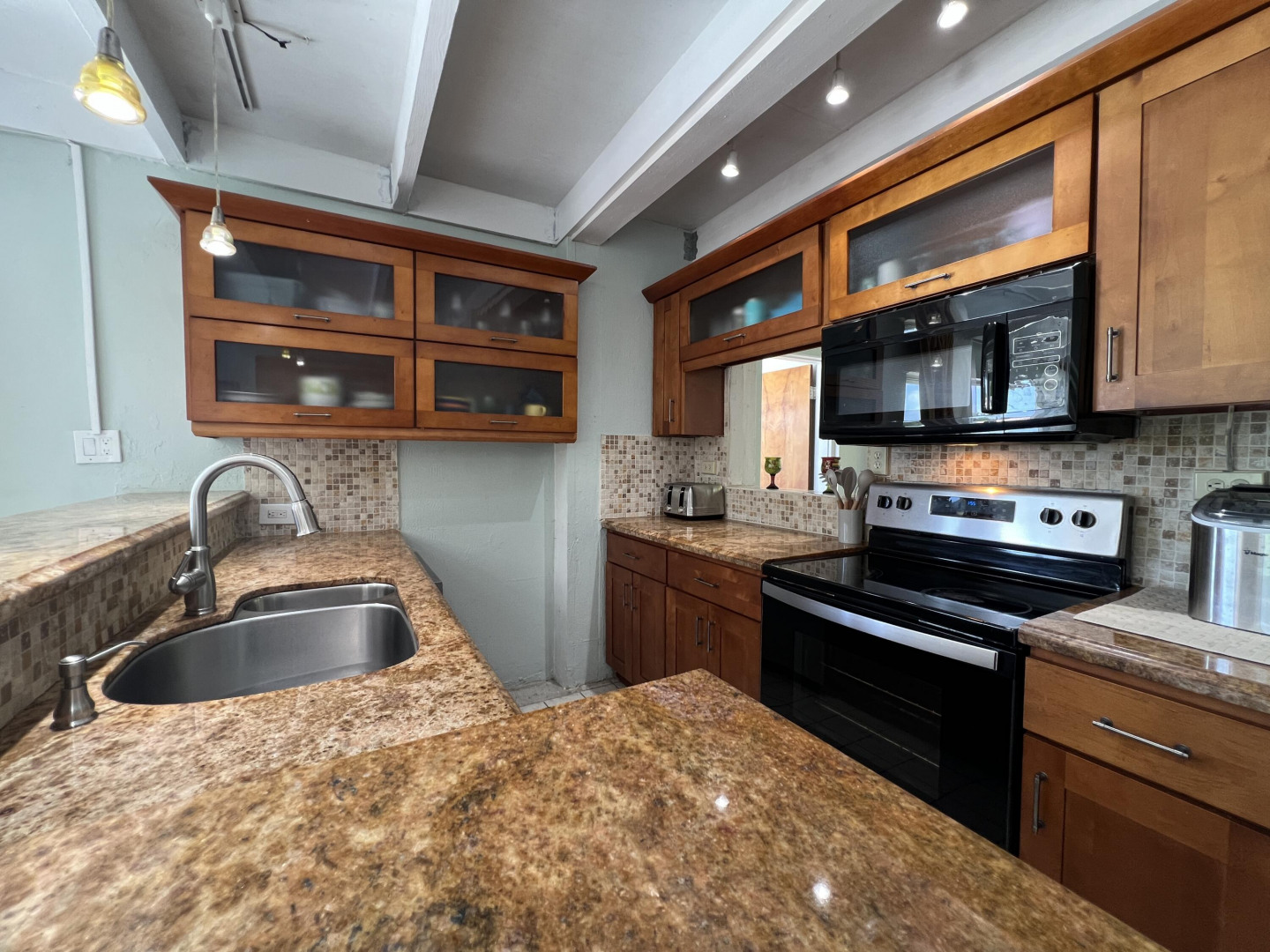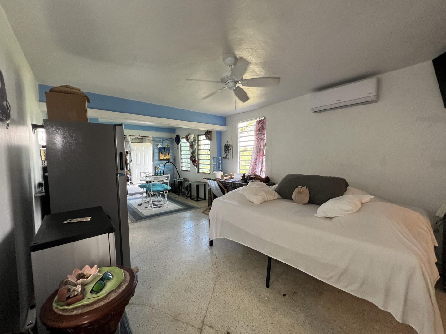 Tucked away at the end of a quiet lane in a friendly mid-island neighborhood, this multi-story home offers laid-back island living with gorgeous views of both the north and south shores. The main home features two spacious en suite bedrooms, an open kitchen that flows right into the living area, and a breezy covered gallery with tile flooring. Downstairs, you'll find a separate efficiency apartment, great for guests or rental income. There's also a workshop for your hobbies and a fenced-in backyard, ideal for kids or pets to play safely. A private, versatile home in a convenient location!