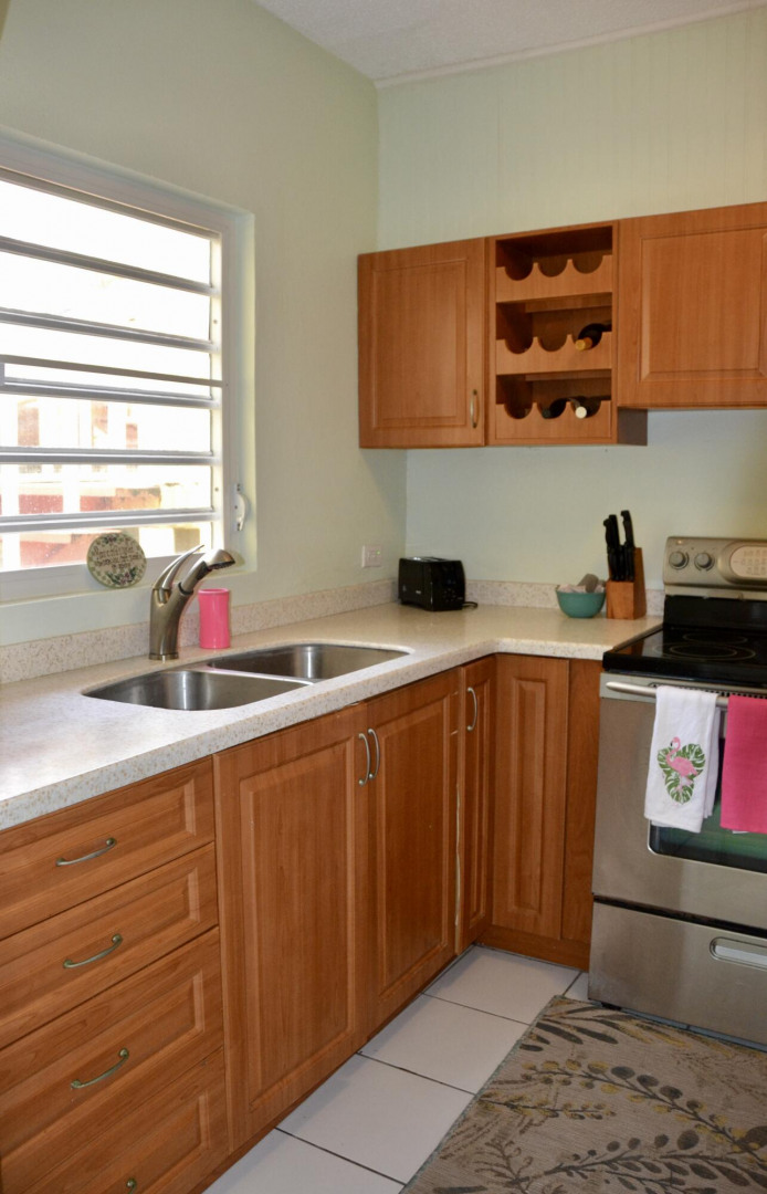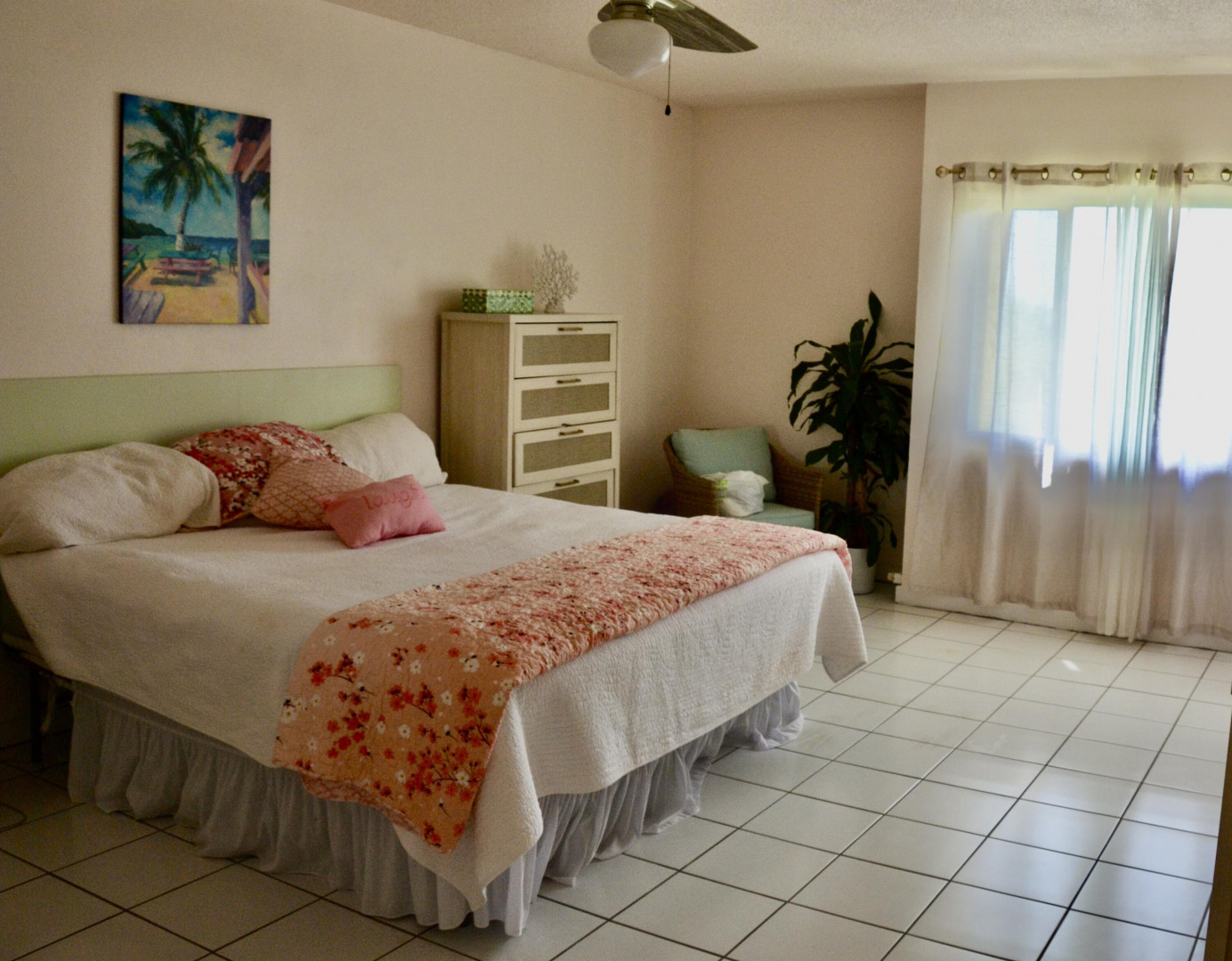 This darling 1 Bedroom end unit, ground level will make you smile it's so darn cute!Just about everything has been freshly painted and upgraded. There are new split AC's, new Light fixtures, brand new furnishings throughout, and really nice upgraded bathroom and dressing area. It has a very comfortable east facing porch that opens up to a nice lawn, great for a game of Bocce. With beautiful sunrises, cooling tradewinds,Buck Island views, and an abundance of privacy makes this an ideal place to settle into.