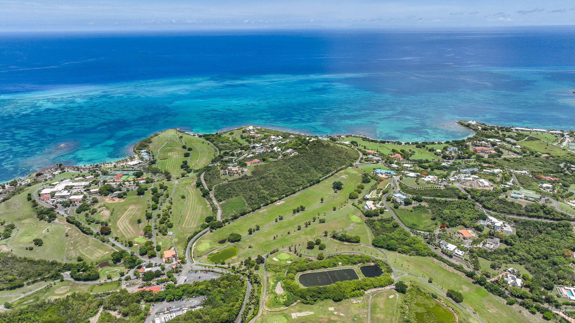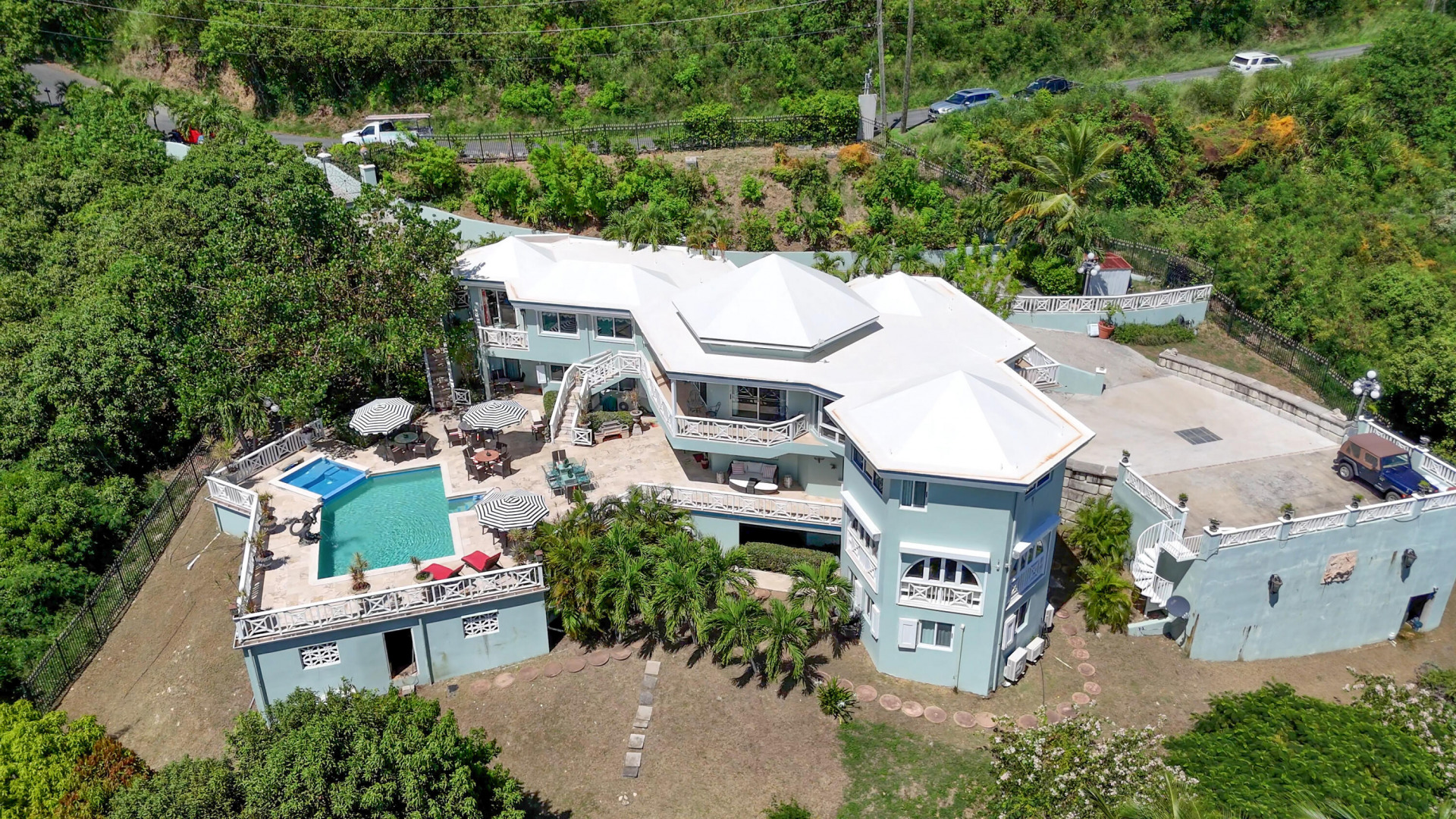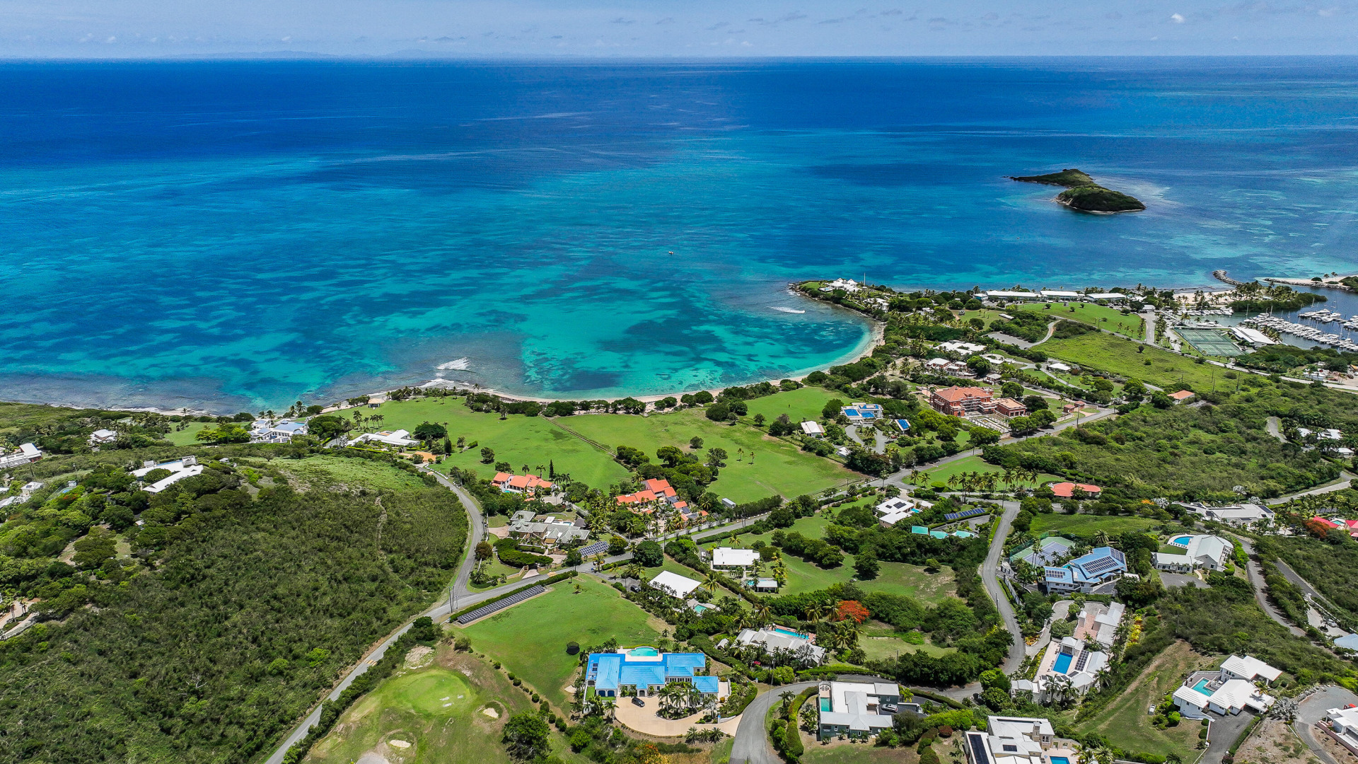 Discover Papaya Court, an iconic St. Croix estate featured in several of Carleton Varney's design books. Varney, also known as 'Mr. Color' and longtime president of Dorothy Draper & Co., was a close friend of the seller. This exquisite home is designed for grand entertaining, featuring a luxurious Chef's kitchen and dining area upstairs, complemented by a fully equipped bar with direct access to an expansive pool deck downstairs. The private and luxurious primary suite, along with three guest suites, ensures comfort for visiting guests. Nestled in the island's premier beach community, this masterpiece offers sweeping views of The Buccaneer Golf Course, Christiansted, and the Caribbean Sea. Beaches, restaurants, and shopping are just minutes away.Papaya Court is designed for grand entertaining and refined living. As you enter through a beautiful iron gate, sourced from a prestigious auction, you are welcomed by an expansive property where every detail has been thoughtfully curated. The home's layout offers multiple living areas, perfect for hosting gatherings and functions or enjoying quiet moments in the tropical breeze. The upstairs level features an open Chef's kitchen, recently updated with top-of-the-line appliances and gleaming granite countertops. The spacious island, sleek cabinetry, and high-end finishes make this kitchen an ideal space for preparing culinary delights. Adjacent to the kitchen is a formal dining room, where you can host elegant dinners while enjoying the beautiful view of the golf course and the lights of Christiansted at night. The downstairs area is equally impressive, with a fully equipped bar and lounge that opens directly onto the expansive pool deck with a large and inviting pool. The pool is set up with a pool heater to make sure the temperature stays comfortable even when the tradewinds cool it down in the winter months. Whether you're hosting large gatherings or intimate parties, this outdoor space offers the perfect venue, with ample room for sunbathing, dining, or relaxing by the pool. The poolside guest suite provides visitors with their own private living room and kitchen, allowing for extended stays in comfort and privacy.