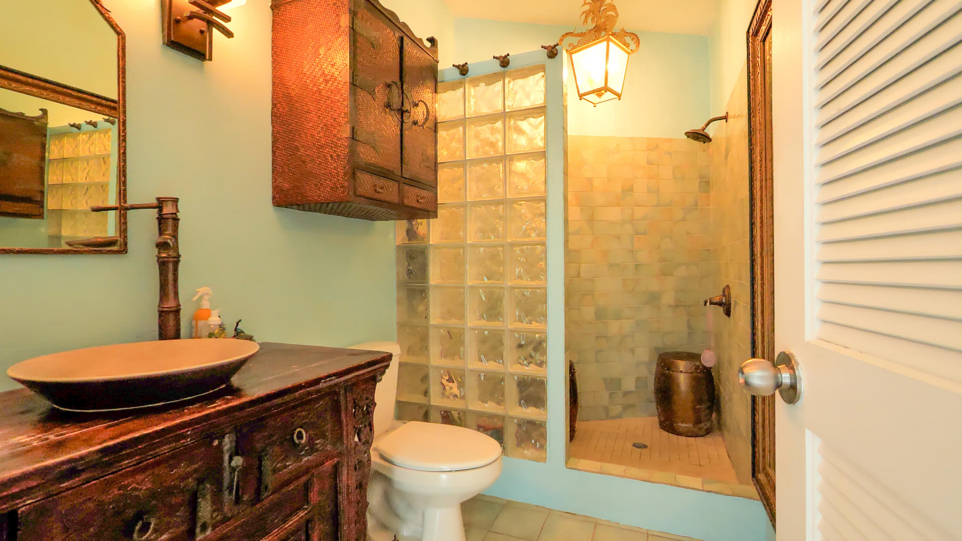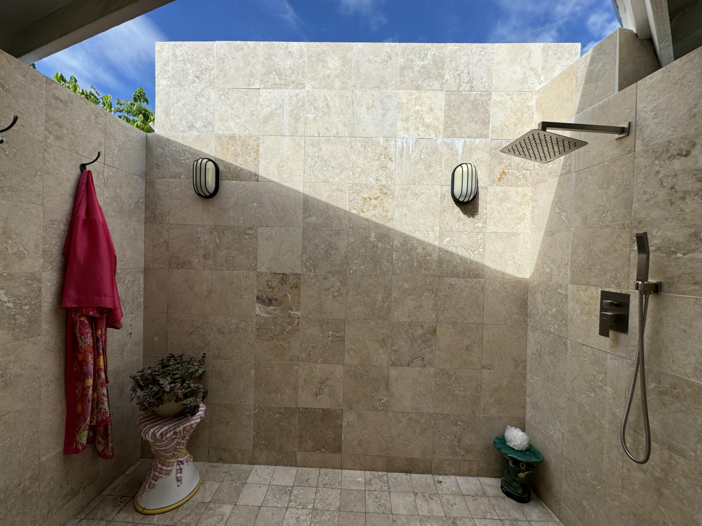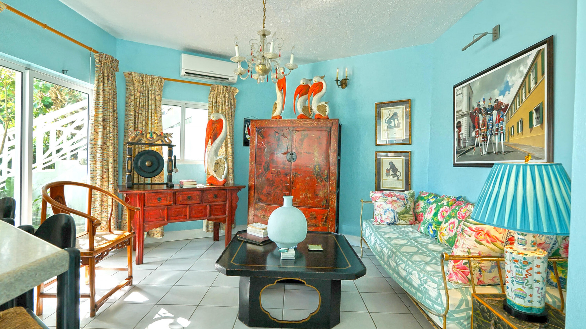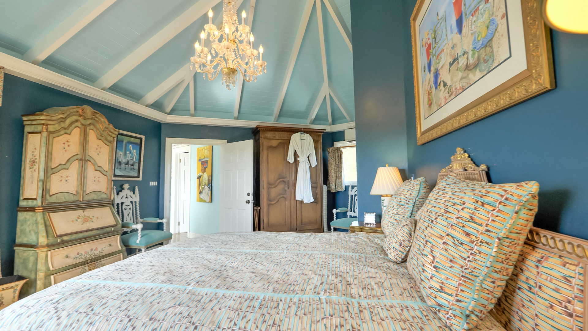 Discover Papaya Court, an iconic St. Croix estate featured in several of Carleton Varney's design books. Varney, also known as 'Mr. Color' and longtime president of Dorothy Draper & Co., was a close friend of the seller. This exquisite home is designed for grand entertaining, featuring a luxurious Chef's kitchen and dining area upstairs, complemented by a fully equipped bar with direct access to an expansive pool deck downstairs. The private and luxurious primary suite, along with three guest suites, ensures comfort for visiting guests. Nestled in the island's premier beach community, this masterpiece offers sweeping views of The Buccaneer Golf Course, Christiansted, and the Caribbean Sea. Beaches, restaurants, and shopping are just minutes away.Papaya Court is designed for grand entertaining and refined living. As you enter through a beautiful iron gate, sourced from a prestigious auction, you are welcomed by an expansive property where every detail has been thoughtfully curated. The home's layout offers multiple living areas, perfect for hosting gatherings and functions or enjoying quiet moments in the tropical breeze. The upstairs level features an open Chef's kitchen, recently updated with top-of-the-line appliances and gleaming granite countertops. The spacious island, sleek cabinetry, and high-end finishes make this kitchen an ideal space for preparing culinary delights. Adjacent to the kitchen is a formal dining room, where you can host elegant dinners while enjoying the beautiful view of the golf course and the lights of Christiansted at night. The downstairs area is equally impressive, with a fully equipped bar and lounge that opens directly onto the expansive pool deck with a large and inviting pool. The pool is set up with a pool heater to make sure the temperature stays comfortable even when the tradewinds cool it down in the winter months. Whether you're hosting large gatherings or intimate parties, this outdoor space offers the perfect venue, with ample room for sunbathing, dining, or relaxing by the pool. The poolside guest suite provides visitors with their own private living room and kitchen, allowing for extended stays in comfort and privacy.