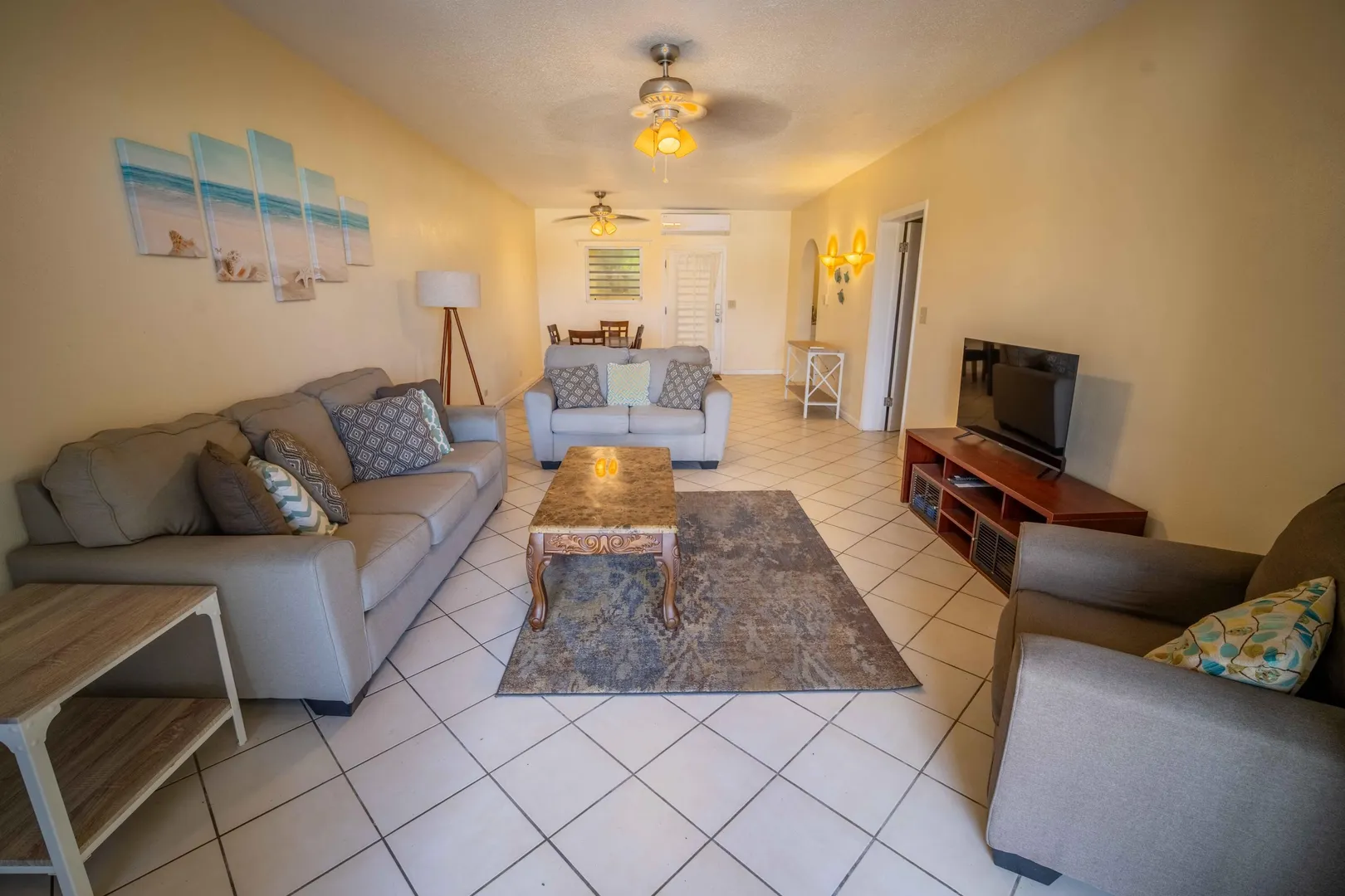 Discover the ultimate island lifestyle at 129 St. C, a charming 1,200 square foot, one-bedroom condo nestled in the heart of St. Croix. This exquisite lower-level unit offers an open floor plan that seamlessly blends the living and dining areas, creating a spacious and inviting atmosphere perfect for both relaxation and entertaining.As you step inside, you'll be greeted by the gentle ocean breeze and breathtaking ocean views that make this unit truly special. The private patio invites you to unwind with your morning coffee or evening cocktails while soaking in the serene beauty of the surrounding landscape.Designed with your convenience in mind, this condo features a laundry area and extra storage space just outside your front door to keep your home organized and clutter-free.The complex itself is a haven of amenities, boasting a secure guard gate for peace of mind, a sparkling pool for those sunny island days, and an on-site office and mail delivery service to simplify your daily routine.