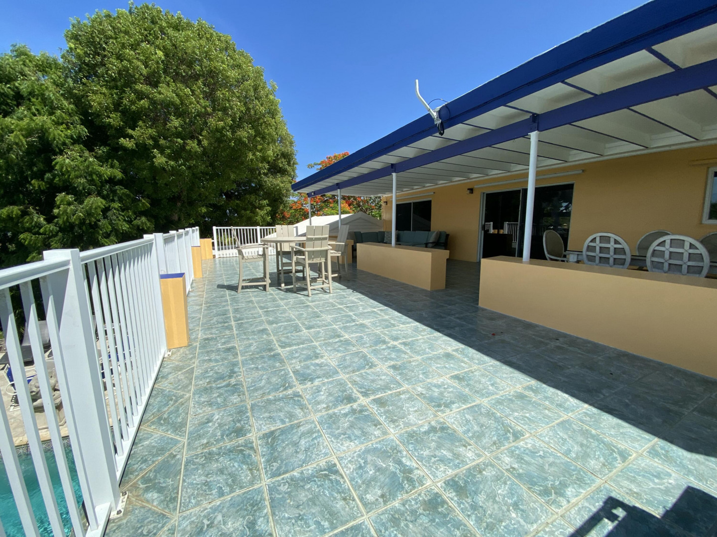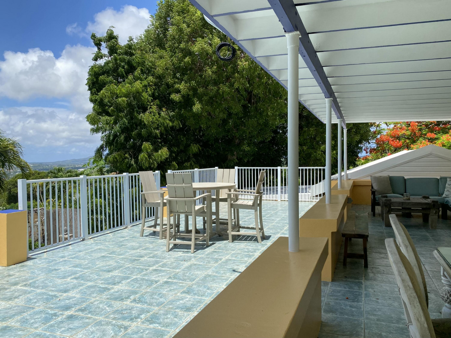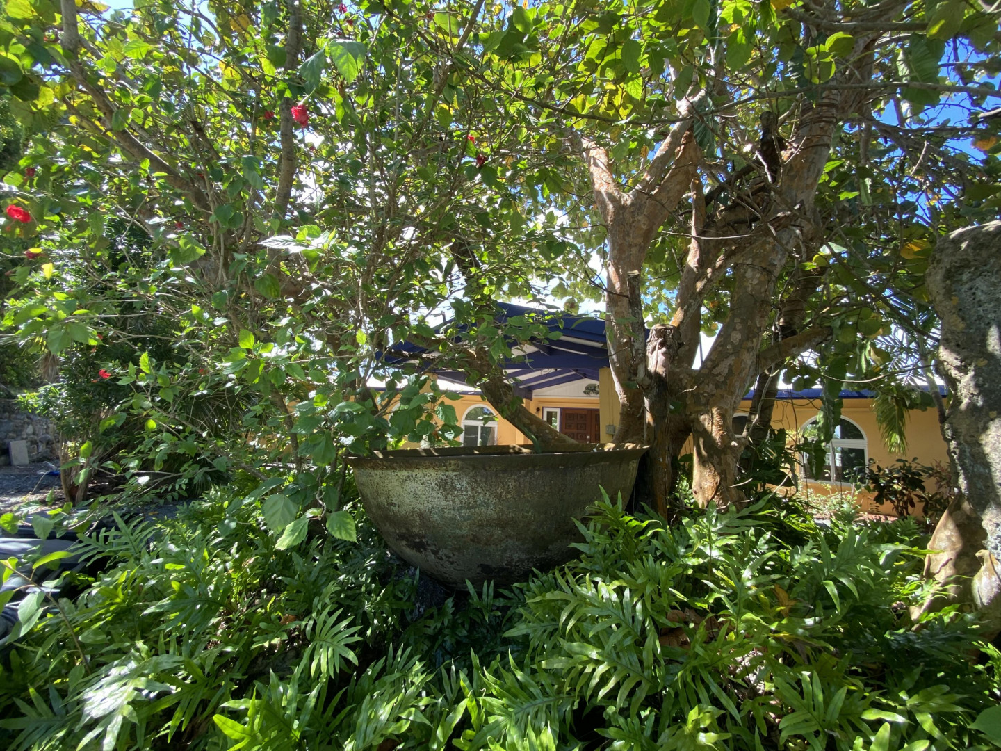 New to the market! This distinctive ranch-style home offers four bedrooms plus a large apartment, and an enchanting pool. Nestled in a private oasis and centrally located, with a South Shore view, the property is surrounded by beautifully landscaped gardens, with tropical pathways, stone walls, and fruit trees. An extensive gallery offers an exceptional setting for outdoor living and entertaining. Set on nearly one acre, the entire property is fully fenced and gated for privacy. There are also custom raised concrete beds, with irrigation ideal for vegetable /flower growing. This unique listing is offered furnished, with Split AC units, a 17KW diesel generator, and 3 sugar vats (coppers) from the 1750s. A must see.