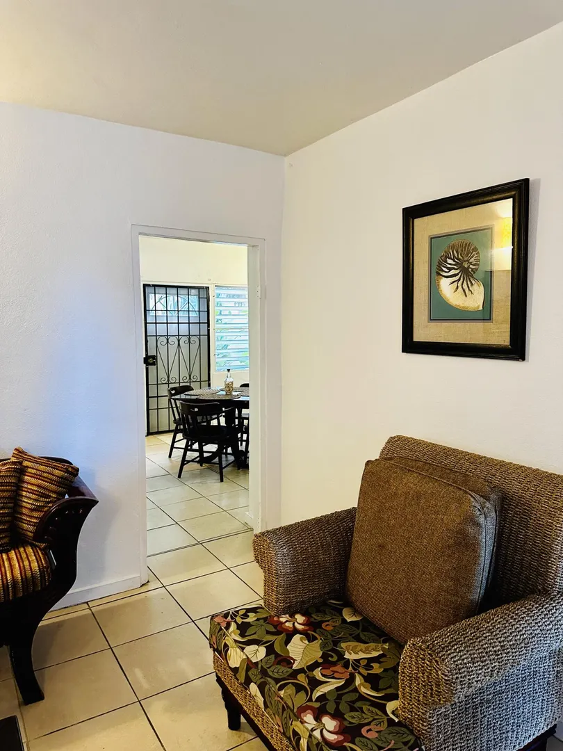 Very nice 2 -bedroom, one bath apartment in walk-able Christiansted town. Furnished, large kitchen with AC in bedrooms.