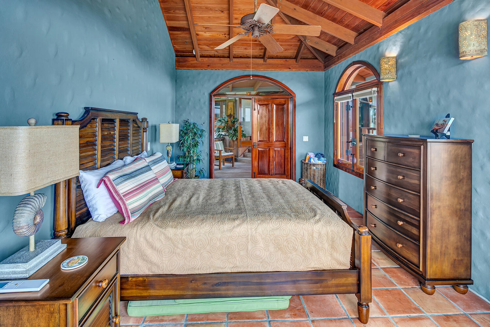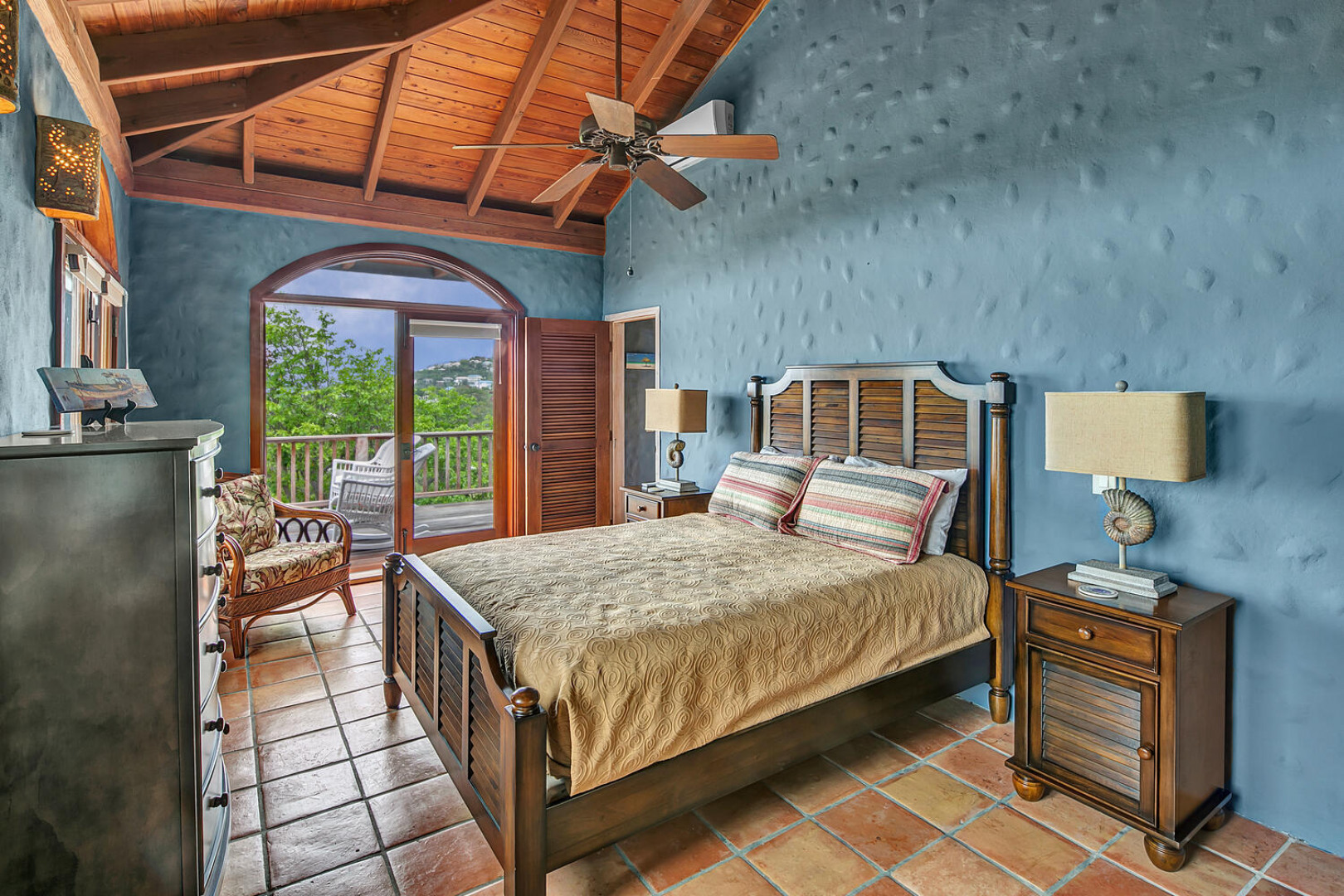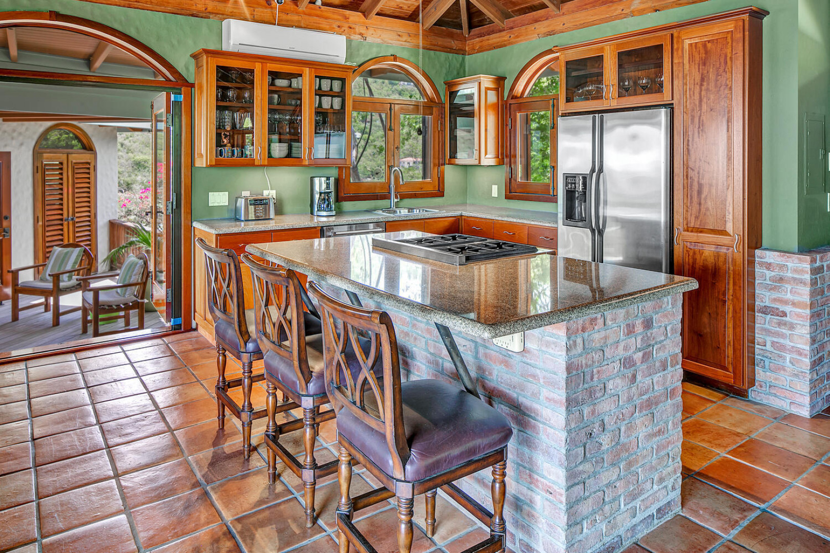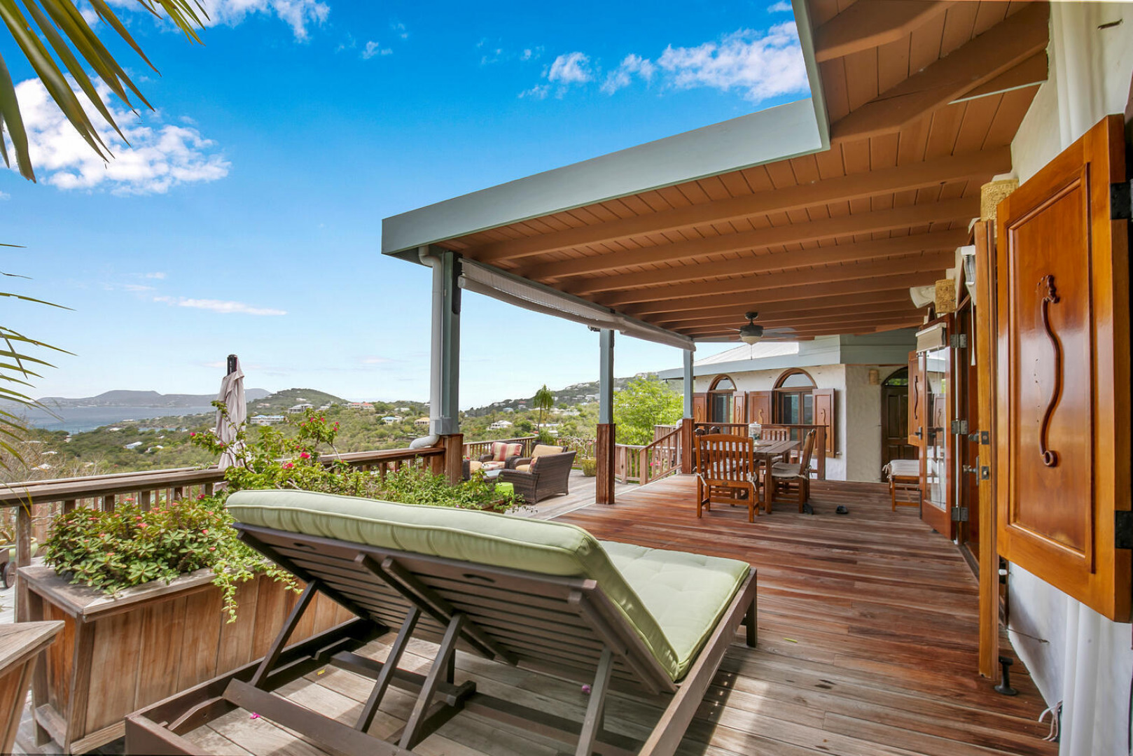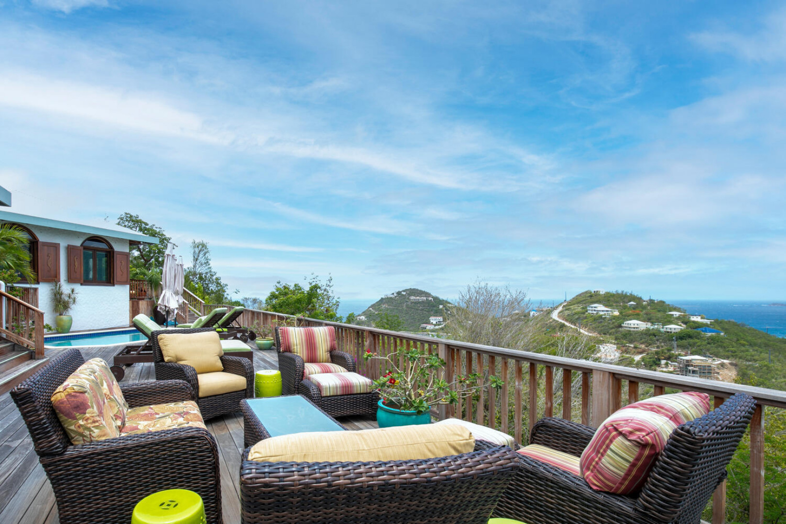 With the perfect blend of privacy, seamless indoor/outdoor living, and charming ocean views, it's easy to see how a budding young country singer may have been inspired to write some of his number one hits during times of respite at Villa De Vida, his first island home. This Chocolate Hole property is an entertainer's delight. A spacious kitchen and living room area opens to an expansive Ipe wood deck that overlooks the twinkling lights of St. Thomas. Take in the sunset from a deck lounger or enjoy a glass of wine while floating in the pool to the sounds of the waves rolling in gently to Hart Bay below. Each of the three bedroom suites is situated in its own private building, connected to the great room via covered walkways and picturesque arched entrance ways.Outdoor showers in each bedroom offer a unique island living experience. The master's shower is spacious, featuring its own garden and is enclosed with a skylight above, welcoming in the sunshine while protecting you from passing showers. The home is well-appointed and beautifully furnished, with Tommy Bahama furnishings in the master bedroom. Villa De Vida could serve as both a vacation rental home or an island residence, ideal retreat for whatever your heart desires.