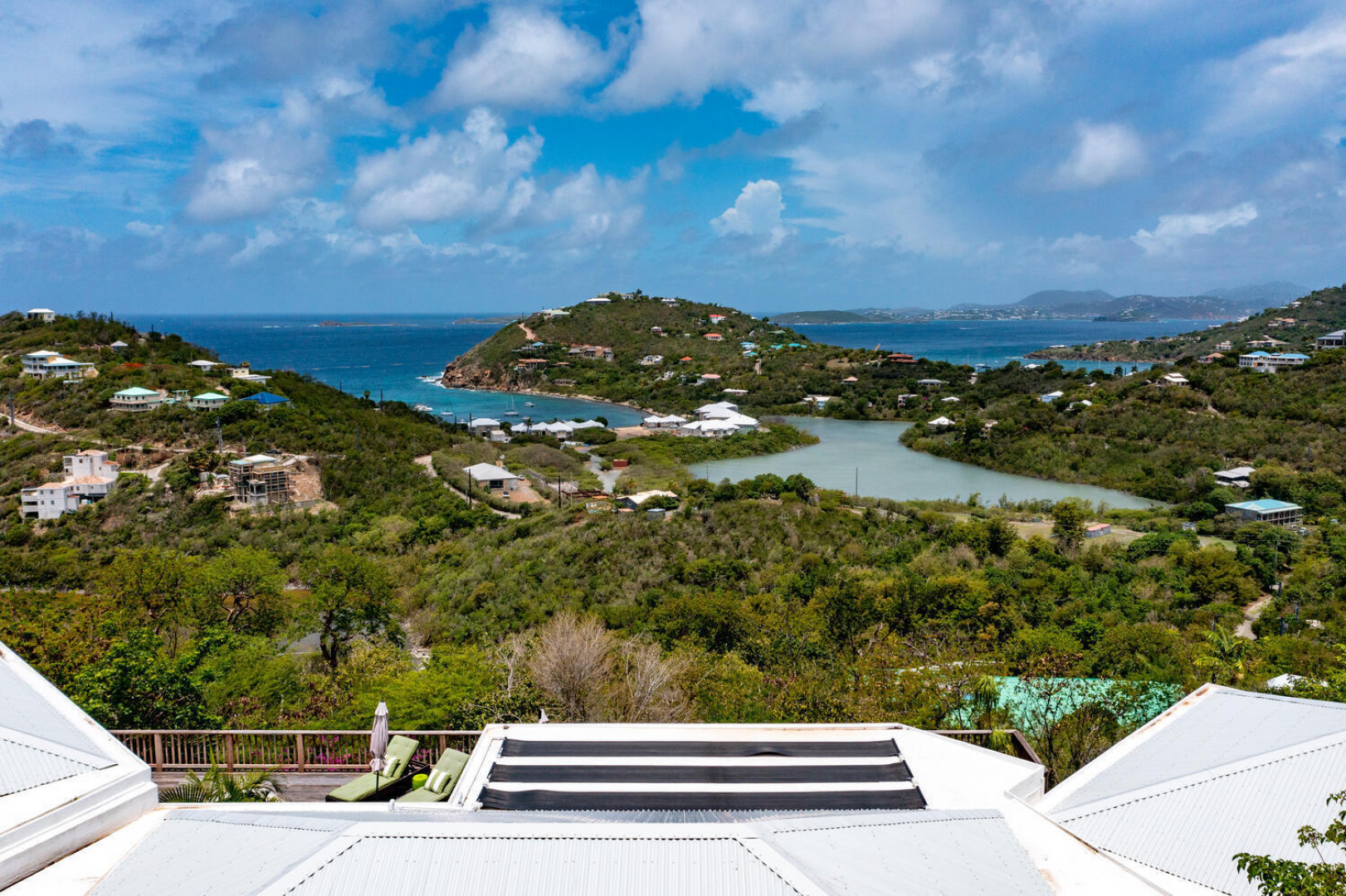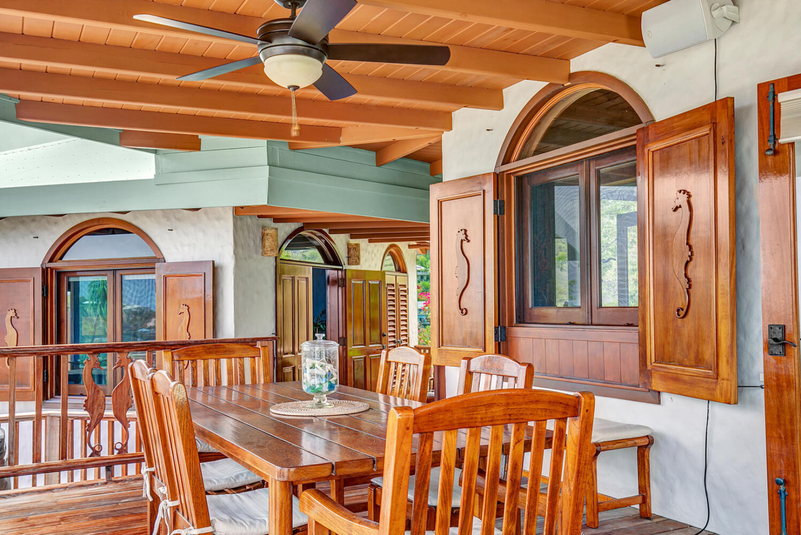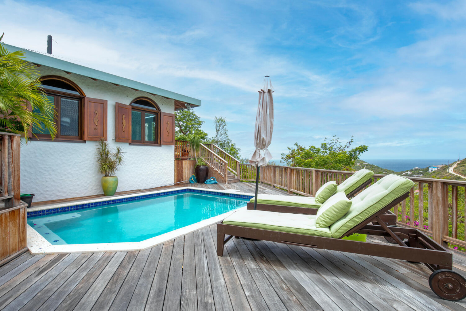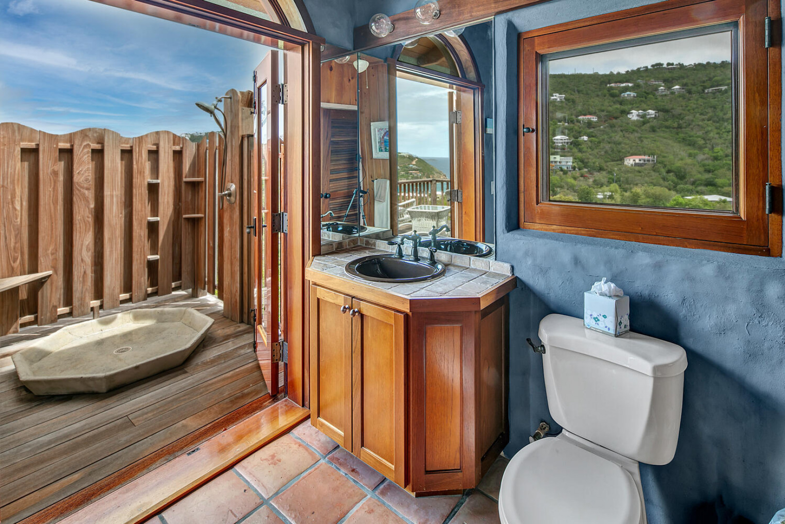 With the perfect blend of privacy, seamless indoor/outdoor living, and charming ocean views, it's easy to see how a budding young country singer may have been inspired to write some of his number one hits during times of respite at Villa De Vida, his first island home. This Chocolate Hole property is an entertainer's delight. A spacious kitchen and living room area opens to an expansive Ipe wood deck that overlooks the twinkling lights of St. Thomas. Take in the sunset from a deck lounger or enjoy a glass of wine while floating in the pool to the sounds of the waves rolling in gently to Hart Bay below. Each of the three bedroom suites is situated in its own private building, connected to the great room via covered walkways and picturesque arched entrance ways.Outdoor showers in each bedroom offer a unique island living experience. The master's shower is spacious, featuring its own garden and is enclosed with a skylight above, welcoming in the sunshine while protecting you from passing showers. The home is well-appointed and beautifully furnished, with Tommy Bahama furnishings in the master bedroom. Villa De Vida could serve as both a vacation rental home or an island residence, ideal retreat for whatever your heart desires.