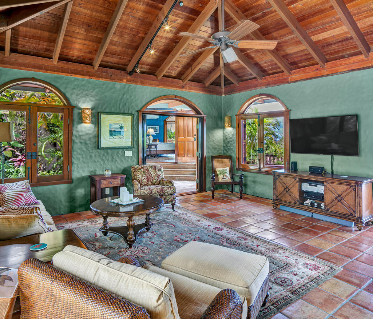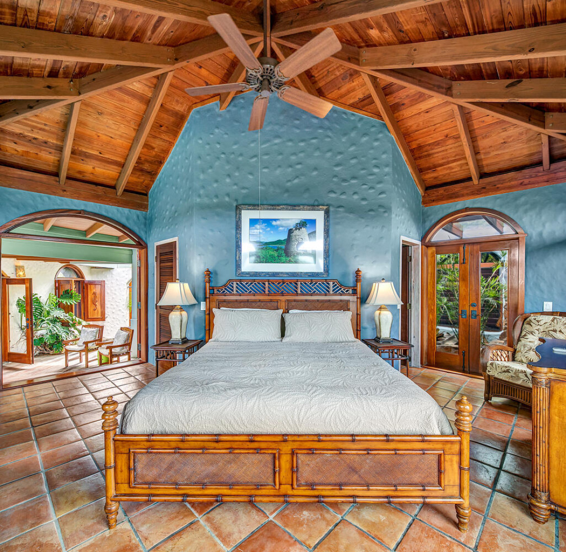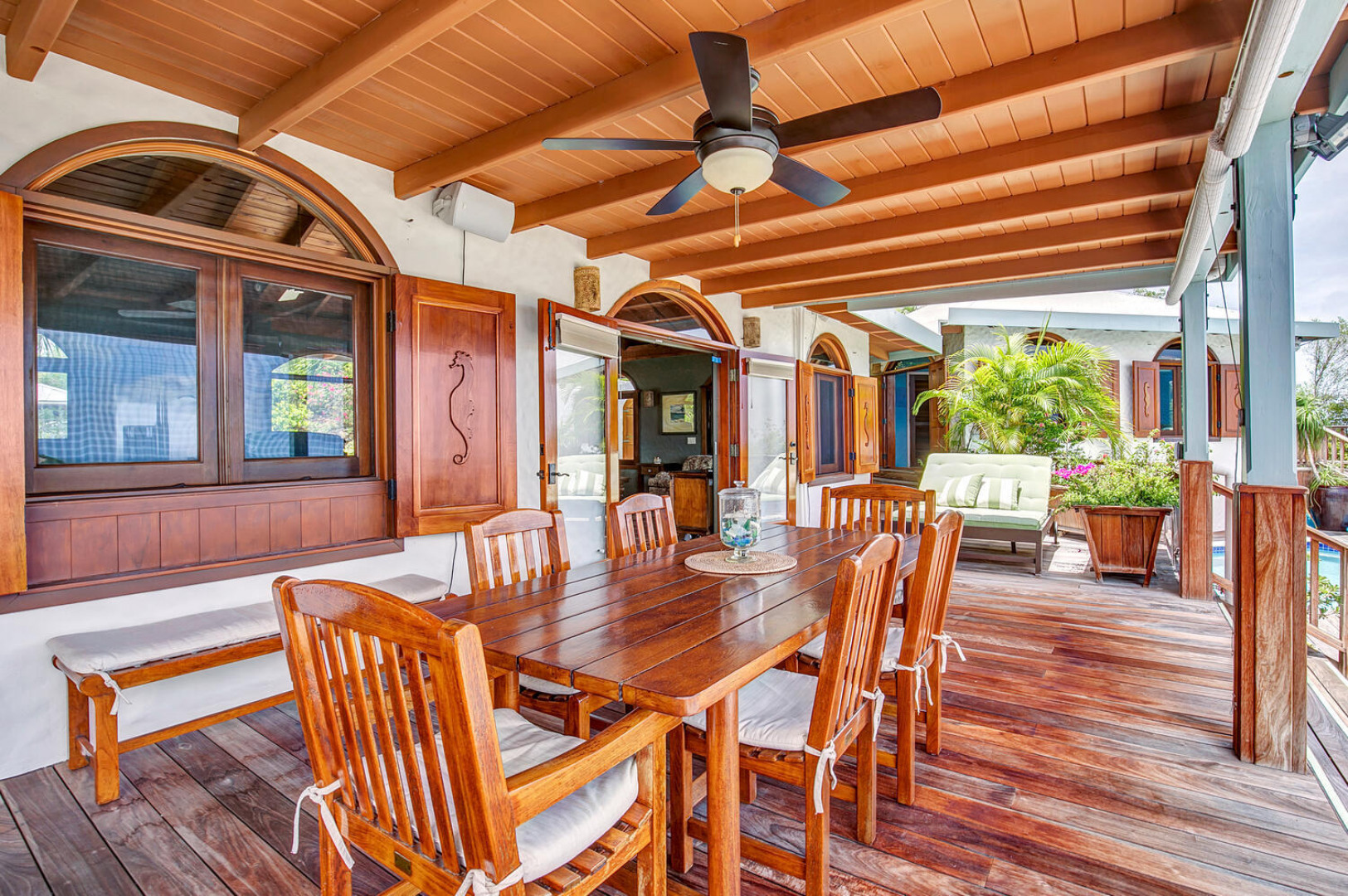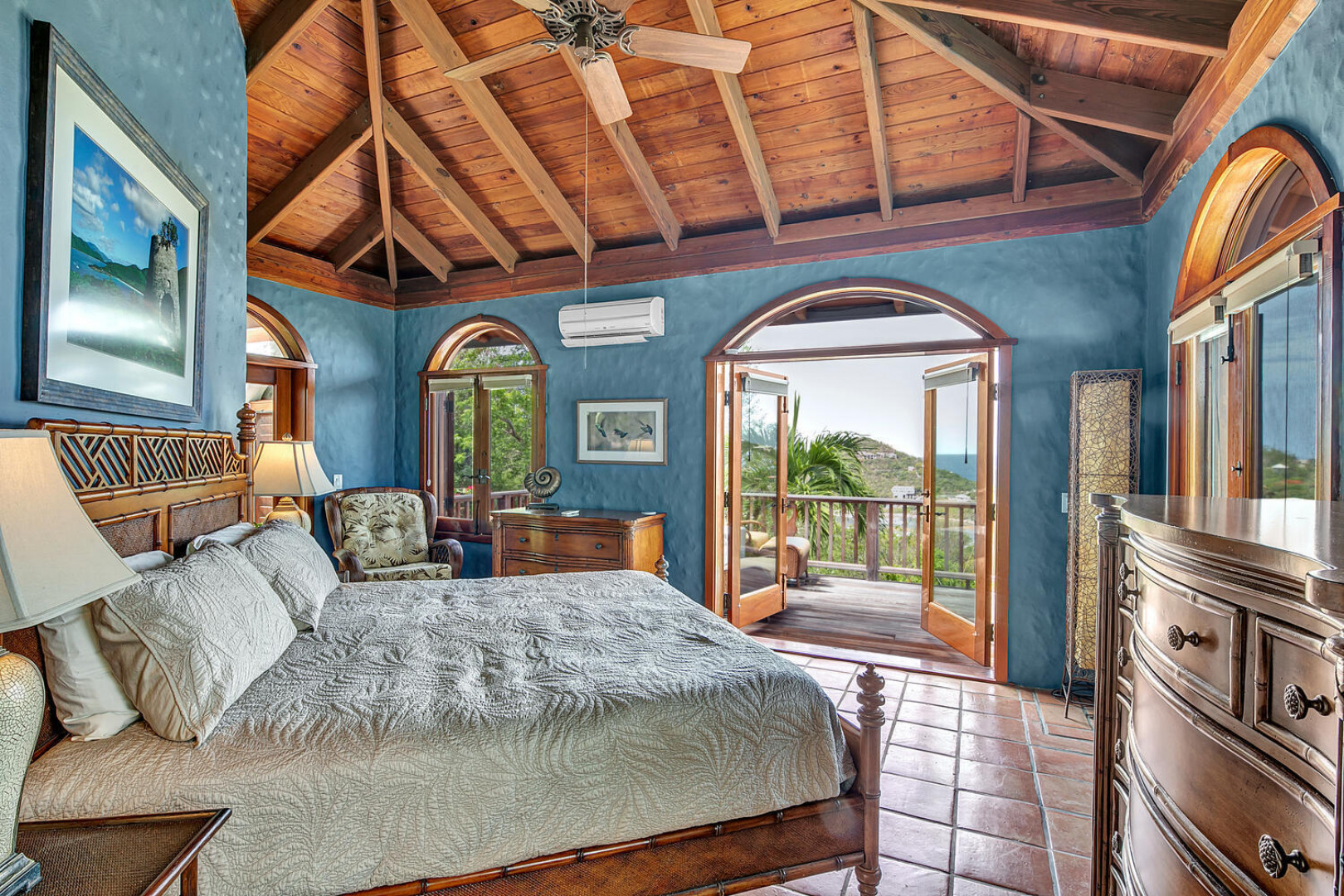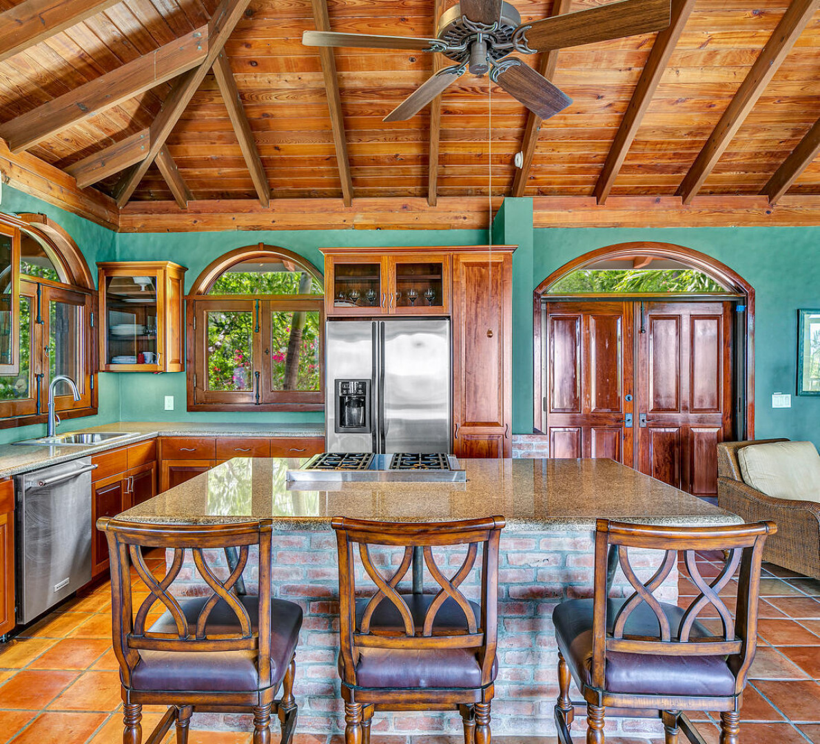 With the perfect blend of privacy, seamless indoor/outdoor living, and charming ocean views, it's easy to see how a budding young country singer may have been inspired to write some of his number one hits during times of respite at Villa De Vida, his first island home. This Chocolate Hole property is an entertainer's delight. A spacious kitchen and living room area opens to an expansive Ipe wood deck that overlooks the twinkling lights of St. Thomas. Take in the sunset from a deck lounger or enjoy a glass of wine while floating in the pool to the sounds of the waves rolling in gently to Hart Bay below. Each of the three bedroom suites is situated in its own private building, connected to the great room via covered walkways and picturesque arched entrance ways.Outdoor showers in each bedroom offer a unique island living experience. The master's shower is spacious, featuring its own garden and is enclosed with a skylight above, welcoming in the sunshine while protecting you from passing showers. The home is well-appointed and beautifully furnished, with Tommy Bahama furnishings in the master bedroom. Villa De Vida could serve as both a vacation rental home or an island residence, ideal retreat for whatever your heart desires.